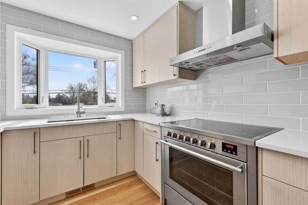 This beautifully renovated 4-bedroom bungalow offers over 2,000 sq. ft. of thoughtfully developed living space, blending modern style with unique character throughout. The well-designed floorplan features a bright, open-concept main level with a seamless connection between the kitchen, dining, and living areas, while the private primary bedroom is tucked away with its own spa-inspired ensuite. A second bedroom and full bath complete the main floor, offering comfortable and functional living. The fully developed lower level expands the home with a spacious family room, two additional bedrooms, a flex space, and a large laundry/utility area ideal for guests, growing families, or work-from-home flexibility. The exterior showcases bold siding and warm wood accents, while inside you’ll find wide plank hardwood floors and an abundance of natural light. The stylish kitchen is a true focal point, complete with sleek cabinetry, premium appliances, and an oversized island perfect for entertaining. Outside, the private yard with mature trees provides a peaceful setting, while the location offers easy access to downtown, seamless commuting across the city, and quick routes to the mountains for weekend getaways. A truly unique, fully renovated home with exceptional style and functionality.