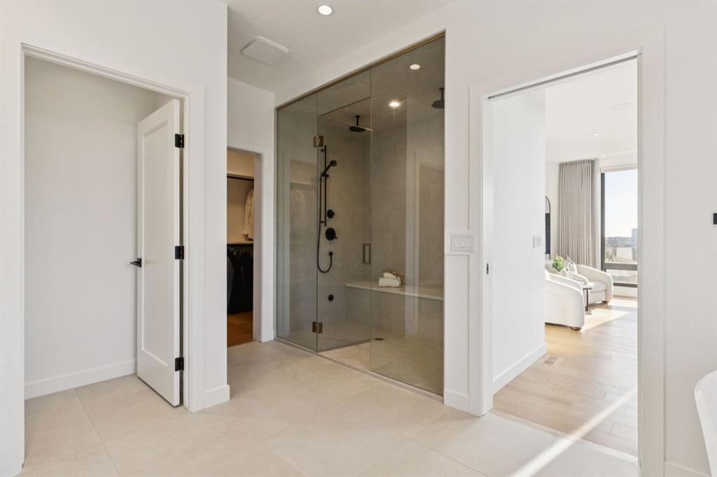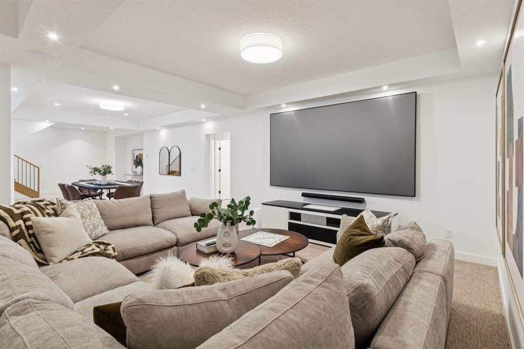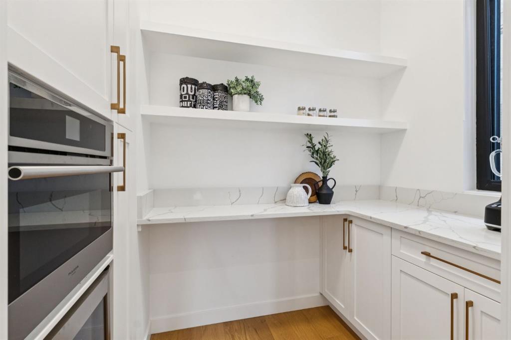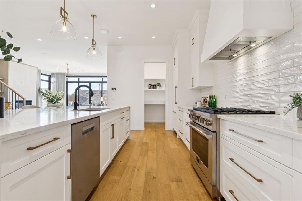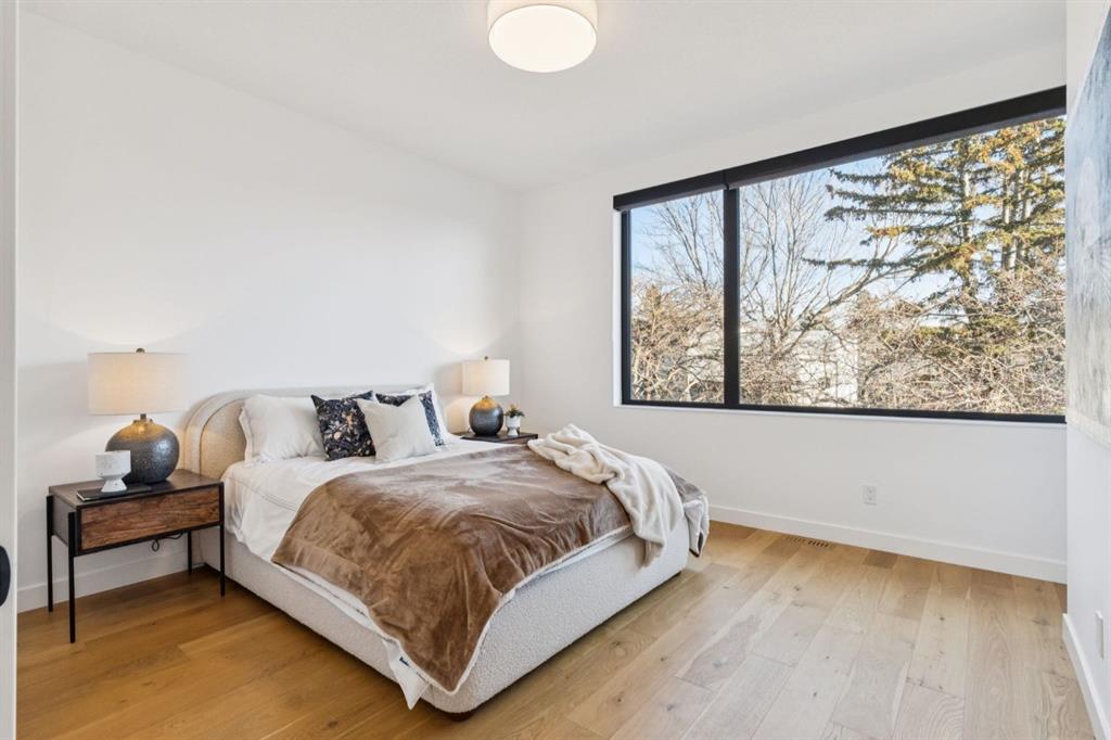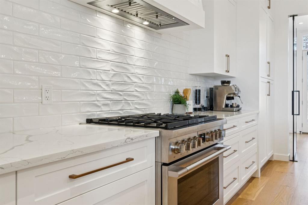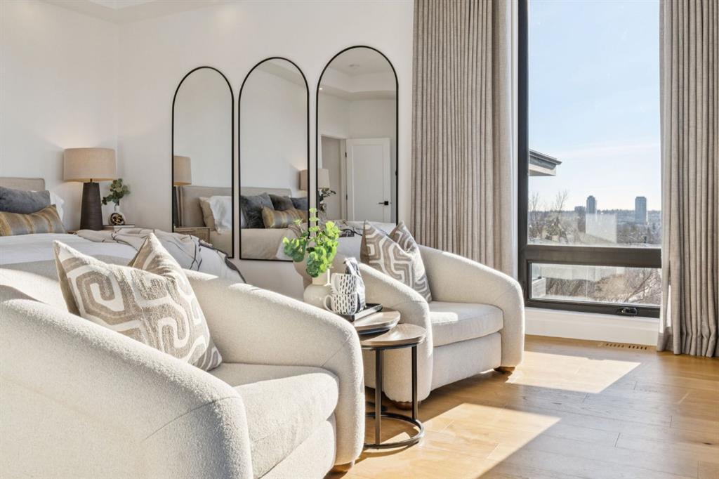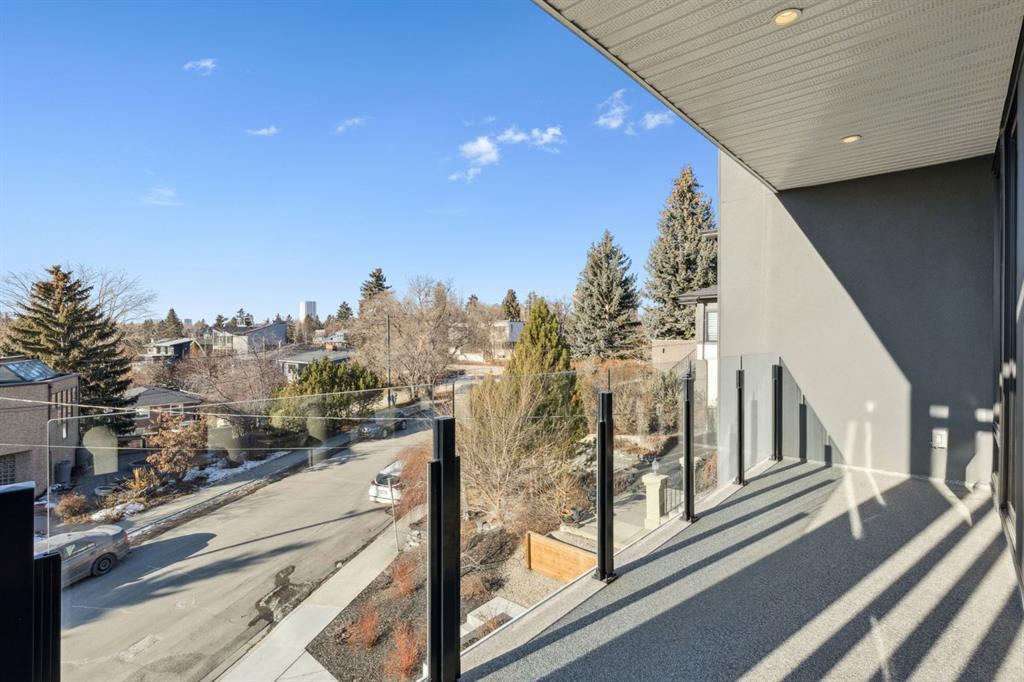 An extraordinary hillside sanctuary awaits in the exclusive inner-city community of Briar Hill. Ideally located on a peaceful street, this fabulous home offers over 4,600 square feet of contemporary living space and sweeping views of the city skyline and the Rocky Mountains. Sunlight streams through floor-to-ceiling windows, filling the open main floor all day with natural light. A heated porcelain-tiled foyer, 10 ft. ceilings, and wide-plank white oak floors throughout provide warmth and sophistication. Relax by the modern gas fireplace on quiet winter evenings with a book or connect with friends and family on the front deck. The chef’s dream kitchen features a large quartz-topped island with cabinetry on both sides, ideal for meal prep and casual dining. Premium Italian-designed Fulgor Milano appliances—including a professional 6-burner gas stove, an integrated warming drawer, and a combi speed oven—make entertaining seamless. The butler’s pantry adds functionality with an additional counter space, storage, and a wine/beverage fridge for extra convenience. Host memorable dinners in the expansive dining room, with sliding doors to a private back patio and backyard, which is perfect for BBQ's and al fresco dining in warmer months. The private office, accessible from the kitchen and backyard, is filled with morning light and offers a tranquil, creative workspace. Upstairs, the serene primary suite impresses with a 10-foot tray ceiling and a second balcony with west-facing mountain views. A cozy seating area is perfect for morning coffee, watching the city wake, and enjoying the incredible, vibrant Calgary sunsets. The luxurious ensuite has a massive double steam shower with a bench, heated floors, oversized soaker tub, dual vanities, and a large walk-in closet. Begin and end your day with relaxation and rejuvenation in the wellness room, featuring an authentic Finnish sauna with a Bluetooth sound system. Two additional bedrooms with oversized windows, spectacular city views, and walk-in closets provide comfort for family or guests. A convenient laundry room with sink and storage completes the upper level. The lower level includes a spacious rec room with a wet bar, a beverage fridge, and flex space for game tables or workouts. The entertainment area is ideal for movie nights or big game day parties. The fourth bedroom and full bath provide guests with privacy and ease. Two massive storage rooms and a large mudroom lead to the oversized 698 sq. ft. heated double garage, with even more storage or a spot for a workshop. Highlights include a Sonos home & audio system, Hunter Douglas electronic window coverings, Lutron integrative lighting, hydronic in-floor heating in the lower level and central air conditioning. Only 10 minutes from downtown, a 20-minute walk to shops and restaurants in Kensington, and steps from walking paths on the hillside. Experience luxury, comfort, and breathtaking surroundings—this is the quintessential urban lifestyle you’ve been waiting for!