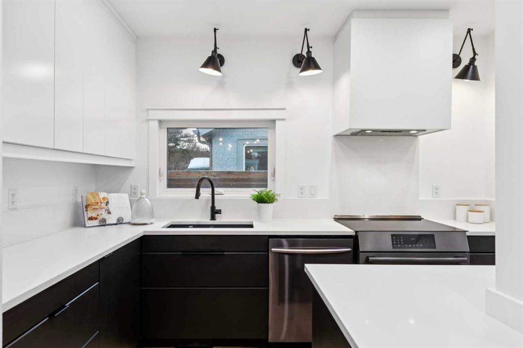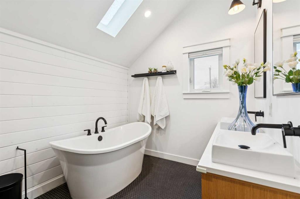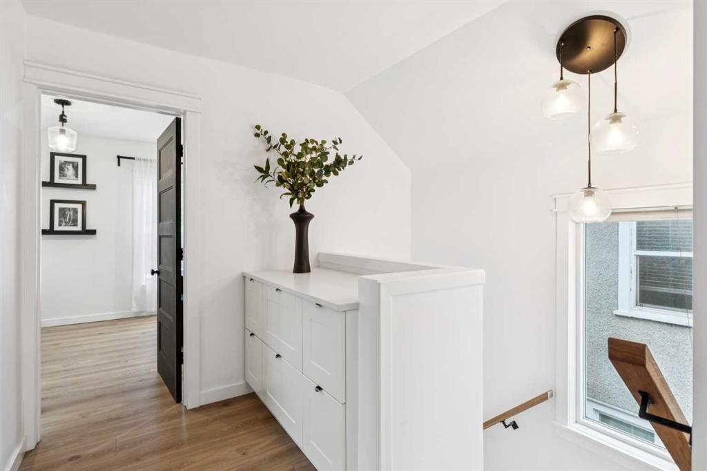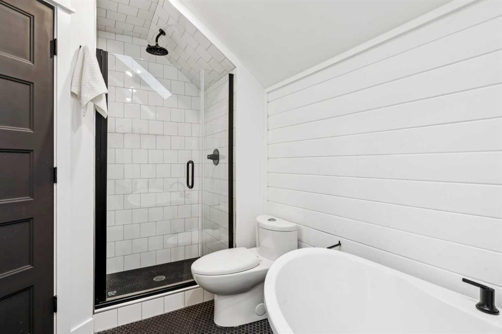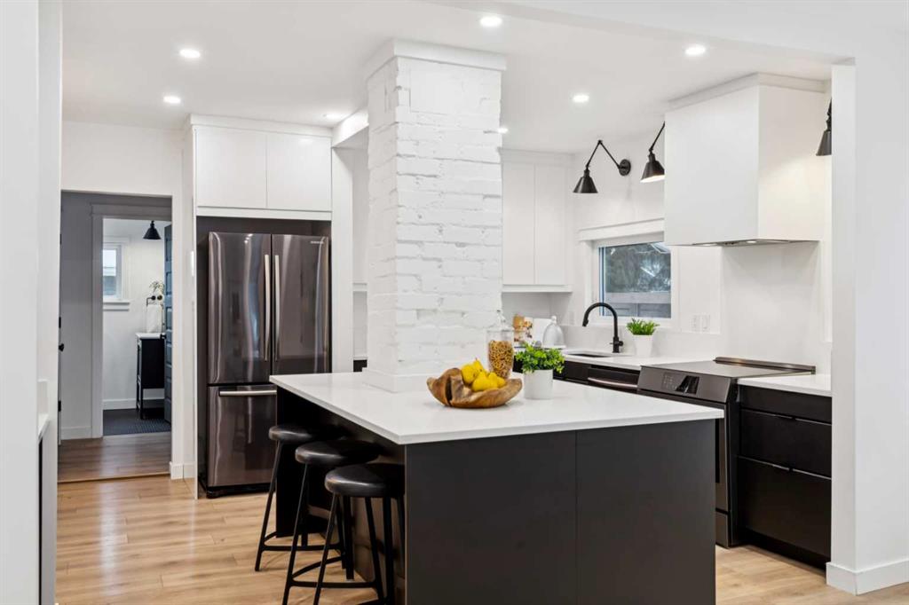 BEAUTIFULLY RENOVATED CHARACTER HOME in a cul-de-sac location across from a green space with tot lot and just steps from the Inglewood 9th Avenue Village. 33’ wide by ~123’ deep lot. Thoughtfully modernized, the home perfectly blends original charm with modern comfort, safety, and efficiency. Also features a TRIPLE GARAGE and a LEGAL SUITE. Major updates in recent years include new electrical, mechanical, and plumbing systems, a new roof and all new windows and doors in both the house and garage. The front foyer welcomes you with built-in seating, storage and a glass door to the main hall. Sunlight flows throughout the comfortable and easy-to-enjoy open-plan living spaces. The inviting living room encourages relaxation around the electric fireplace and TV with a custom media cabinet providing discreet storage for books, games, and toys. The gorgeous kitchen is designed for everyday living and entertaining family and friends. It showcases sparkling quartz counters and backsplash and black stainless-steel appliances with extensive cabinetry and workspace. The large island doubles as a breakfast bar and incorporates the home’s original brick chimney for a touch of history. Completing the main level are a luxurious bath with shower, a convenient laundry room with storage, and a charming under-stair nook—ideal for a kids’ play space or cozy pet corner. Upstairs, you'll find three bright and spacious bedrooms, including the primary retreat with room for a king bed, dual walk-in closets and peaceful park views. The stunning 5-piece bathroom includes heated floors, a skylight, a double vanity, a freestanding tub and a separate walk-in shower. Central AC. The legal basement suite offers flexibility—use it as additional family living space or for rental income. It features its own entrance, Roxul soundproofing insulation and a separate heating system. Note the large living room with TV, bright kitchen with stainless appliances (gas stove and “farmhouse” sink), bedroom and stylish bathroom with in-floor heating. An HRV unit together with the electric heat keeps the space fresh and comfortable. The private, fully fenced backyard is flat with mature landscaping. The insulated and heated triple garage offers ample workspace thanks to built-in shelving. Neighbourhood amenities include tennis courts, scenic river pathways, the bird sanctuary, and, of course, the unique collection of shops, restaurants, cafes, fitness and services of the 9th Avenue Village. Schools and transit are also close by.