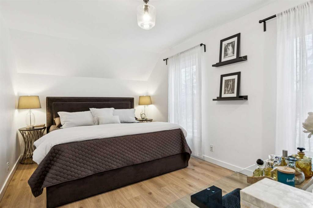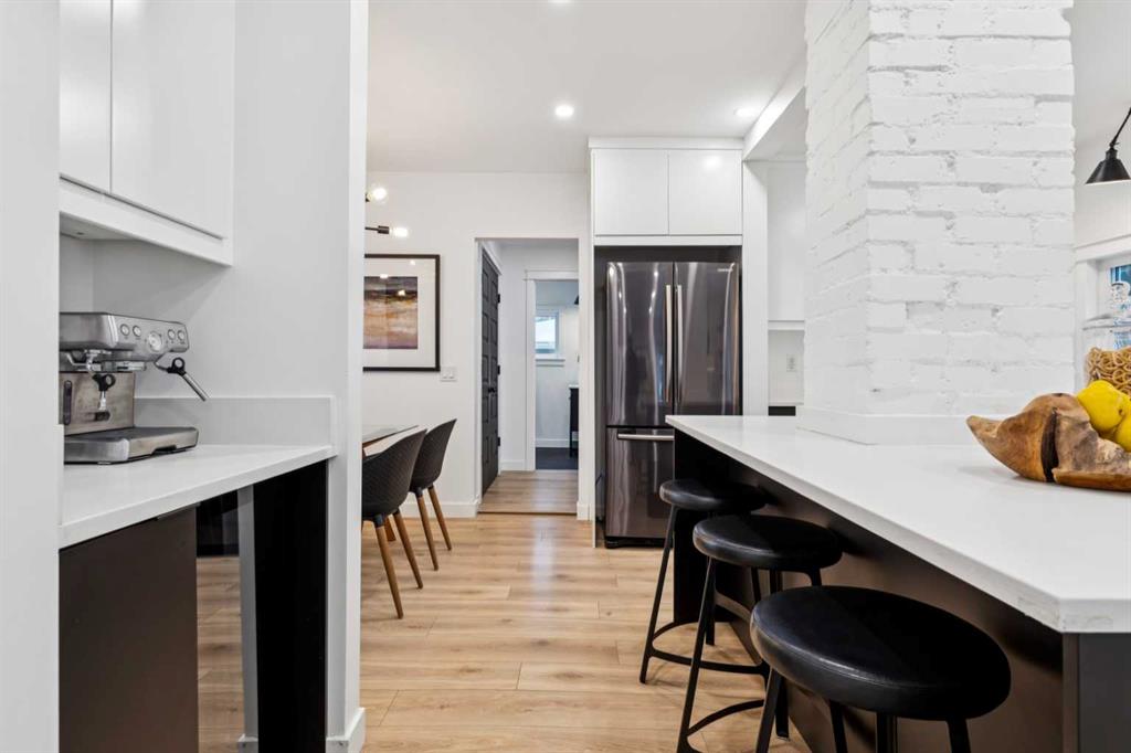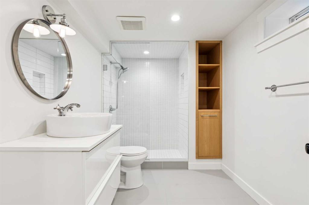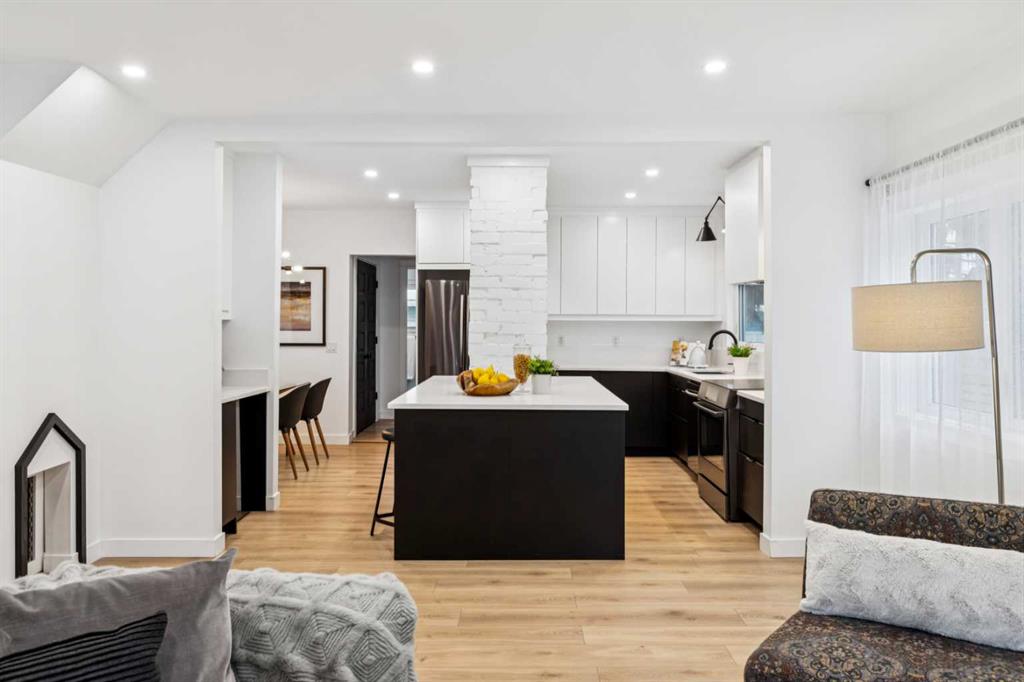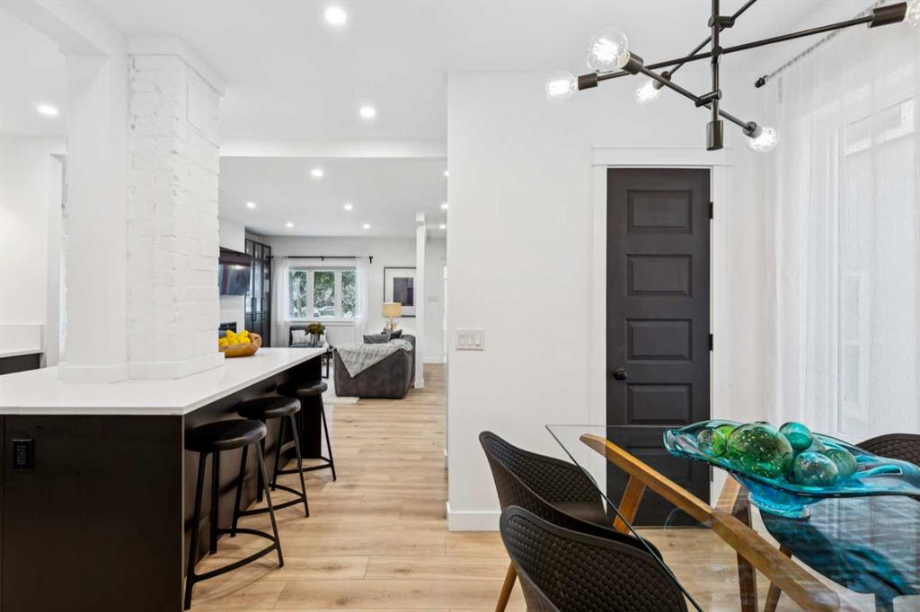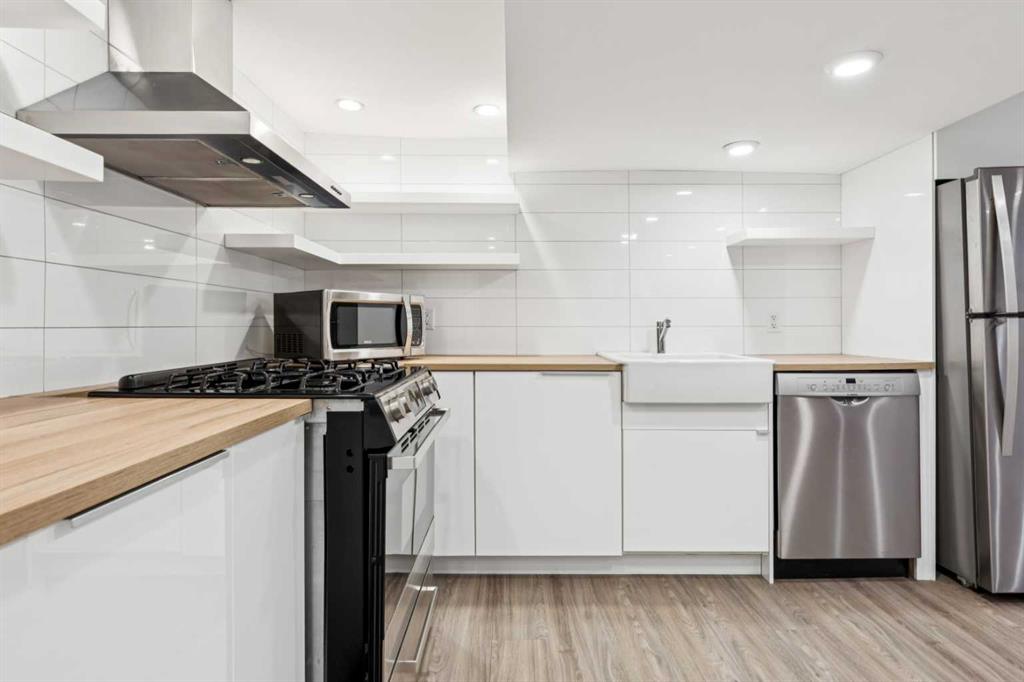 BEAUTIFULLY RENOVATED CHARACTER HOME in a cul-de-sac location across from a green space with tot lot and just steps from the Inglewood 9th Avenue Village. 33’ wide by ~123’ deep lot. Thoughtfully modernized, the home perfectly blends original charm with modern comfort, safety, and efficiency. Also features a TRIPLE GARAGE and a LEGAL SUITE. Major updates in recent years include new electrical, mechanical, and plumbing systems, a new roof and all new windows and doors in both the house and garage. The front foyer welcomes you with built-in seating, storage and a glass door to the main hall. Sunlight flows throughout the comfortable and easy-to-enjoy open-plan living spaces. The inviting living room encourages relaxation around the electric fireplace and TV with a custom media cabinet providing discreet storage for books, games, and toys. The gorgeous kitchen is designed for everyday living and entertaining family and friends. It showcases sparkling quartz counters and backsplash and black stainless-steel appliances with extensive cabinetry and workspace. The large island doubles as a breakfast bar and incorporates the home’s original brick chimney for a touch of history. Completing the main level are a luxurious bath with shower, a convenient laundry room with storage, and a charming under-stair nook—ideal for a kids’ play space or cozy pet corner. Upstairs, you'll find three bright and spacious bedrooms, including the primary retreat with room for a king bed, dual walk-in closets and peaceful park views. The stunning 5-piece bathroom includes heated floors, a skylight, a double vanity, a freestanding tub and a separate walk-in shower. Central AC. The legal basement suite offers flexibility—use it as additional family living space or for rental income. It features its own entrance, Roxul soundproofing insulation and a separate heating system. Note the large living room with TV, bright kitchen with stainless appliances (gas stove and “farmhouse” sink), bedroom and stylish bathroom with in-floor heating. An HRV unit together with the electric heat keeps the space fresh and comfortable. The private, fully fenced backyard is flat with mature landscaping. The insulated and heated triple garage offers ample workspace thanks to built-in shelving. Neighbourhood amenities include tennis courts, scenic river pathways, the bird sanctuary, and, of course, the unique collection of shops, restaurants, cafes, fitness and services of the 9th Avenue Village. Schools and transit are also close by.