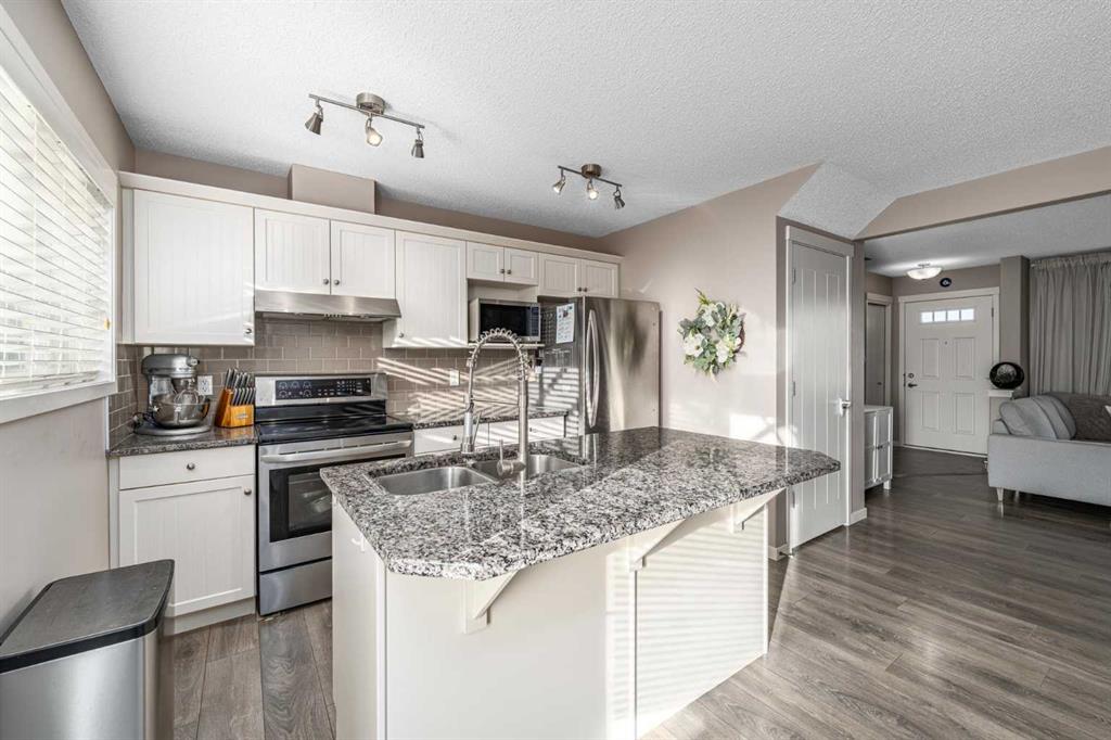 Well maintained, move-in ready home located on a quiet street in Evanston. The property benefits from a prime location within walking distance of Our Lady of Grace Elementary School and less than a block from a playground, and just steps away from access to the community’s extensive ravine pathway system, including impressive city views from Evanston West Lookout Point. Home features three bedrooms and two and a half bathrooms, providing ample space for families. The main level offers a welcoming, open and bright layout with lots of the west facing natural light flooding the space. The thoughtfully designed kitchen is equipped with stone countertops and newer stainless steel appliances. Upstairs, three bedrooms include a primary suite complete offers a four-piece en-suite bathroom and walk-in closet. Outside, a sunny east-facing fenced backyard boasts a deck, pergola, and sprinkler system—ideal for summer enjoyment. The double detached garage is insulated and offers a paved, wide back alley. Both the garage and home received new roofing in 2025, and almost all the siding was replaced that same year for added peace of mind and curb appeal. The unfinished basement includes laundry with newly replaced machines, roughed-in plumbing for a bathroom, and an egress window, allowing for optimal future customization. This property offers an excellent opportunity for first-time buyers, families, and anyone seeking a high-quality starter home.
