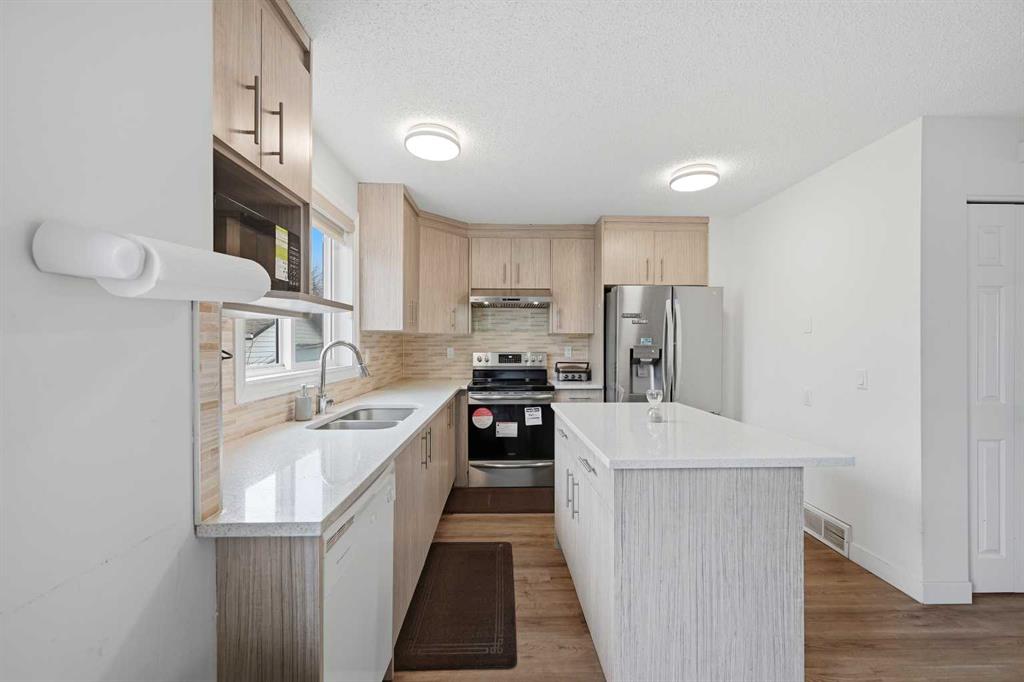 Welcome to this fully renovated home in the highly desirable community of Castle Ridge, offering over 1,884+ sq. ft. of total living space on an exceptional 45 ft wide lot (4,000+ sq. ft.) — perfect for first-time buyers and savvy investors alike. 5 BED 2.5 BATH, attached garage. This well-maintained property features 5 bedrooms and 2.5 bathrooms, including a fully developed basement with a separate side entrance, offering 2 bedrooms, 1 bathroom, and a kitchen space — ideal for extended family, is 2 bed illegal basement suite. The main floor welcomes you with a bright and spacious layout, showcasing a large living room, generous dining area, and a fully updated modern kitchen. Renovations throughout the home include new flooring, new countertops, upgraded appliances, modern fixtures, and LED lighting, while the upper level features new carpet and 3 well-sized bedrooms, including a primary bedroom with double closets, along with a full 4-piece bathroom. A convenient main floor bathroom adds extra functionality. The driveway is new concrete making it ideal for guest parking. Outside, enjoy a fully fenced backyard with back alley access, offering future development potential or additional parking options. The large wraparound deck is perfect for entertaining and relaxing. The home also includes a single attached garage and a large driveway accommodating up to 3 additional vehicles, for a total of 4 parking spaces. Location is unbeatable — just minutes from Westwinds plazas, shopping plazas, Superstore, schools, and transit. A high school is within walking distance, and elementary schools are just a short drive away. Situated in a high-demand rental area in NE Calgary, this property offers excellent long-term value and affordability. Whether you're a first-time homebuyer looking for a move-in-ready home or an investor seeking strong potential, this property checks all the boxes.