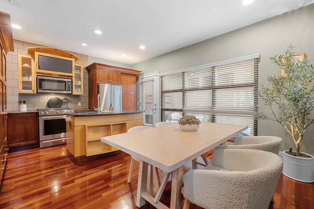 Welcome to the vibrant and highly sought-after community of Killarney! Rarely do you find a prime location like this that’s just steps away from the 17th Avenue’s incredible variety of restaurants, cafes, pubs and shops. Commuting and transit options are ideal with easy access to major roads like Crowchild and Glenmore Trail, a bus route one block away that takes you straight to the downtown core, and two LRT stations within walking distance! Great schools, greenspaces, parks, off leash areas, Killarney Aquatic and Rec Centre, the public library, local favourites like Newcastle Pub, and so much more! This location delivers the perfect balance of quiet charm and city accessibility. Tucked among mature trees, this 4-bedroom, semi-detached home reaps the benefits that come with townhouse ownership. Part of an exclusive, custom built development consisting of two separate semi-detached residences, this property offers privacy and a sense of space that’s hard to find at this price point. From the moment you step into the home from the sheltered front porch, you’re welcomed into a bright and inviting interior with soaring ceilings and site-finished Cherry hardwood flooring that flows throughout the main level. The spacious living room shows off architectural details and masterfully finished millwork that you'll discover throughout the rest of the living spaces. The kitchen is truly the heart of the home, offering a warm, timeless feel with custom cabinetry, a quartz covered island, and high-end stainless-steel appliances accentuated by an incredible gas range. This space connects with the dining area, where a natural stone fireplace with a wood beam mantle creates a cozy and inviting atmosphere for everyday living or entertaining. Large windows flood the space with natural light. Outside, enjoy your own private patio that's equipped with a gas line, ideal for BBQs, sipping on your morning coffee, and making the most of warm evenings and outdoor gatherings. Upstairs, a skylight draws sunlight through the stairwell, leading to a peaceful primary retreat. This bedroom is complete with a huge walk-in closet and generously sized 5-piece ensuite featuring dual sinks, a tiled shower, and a soaker tub. Two additional bedrooms offer flexibility with a unique sliding door design, allowing the space to adapt to your needs. The 5-piece main bathroom is also equipped with dual sinks, a feature that isn't common for the area, but can be appreciated by families of all sizes. The fully developed basement is incredibly designed for flexibility. With high ceilings, a massive rec room is perfect for a home theatre and media setup, hobby area, gym, playroom, etc. The large bedroom provides great accommodations for guests, family and friends. Also included is a single detached garage, & upgrades like central A/C, & a tankless hot water system. This is more than just a home — it’s a lifestyle! One that combines comfort, character, and location in a way that’s rarely available.