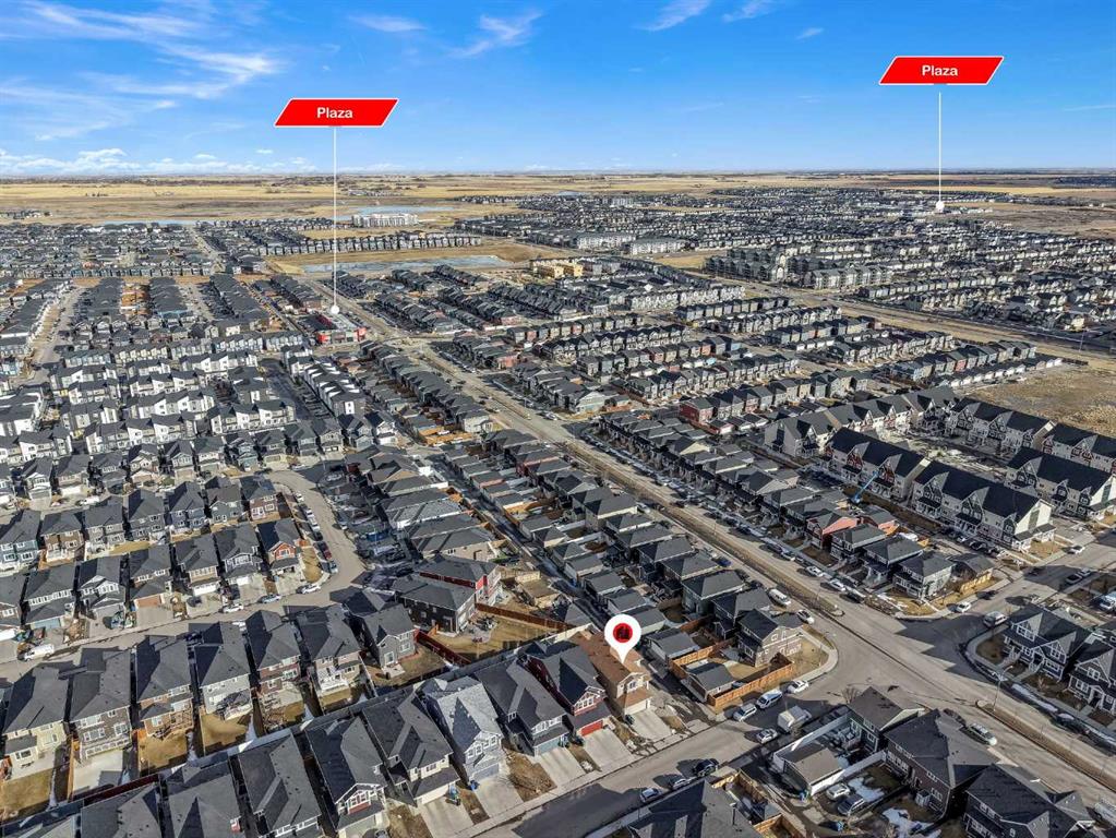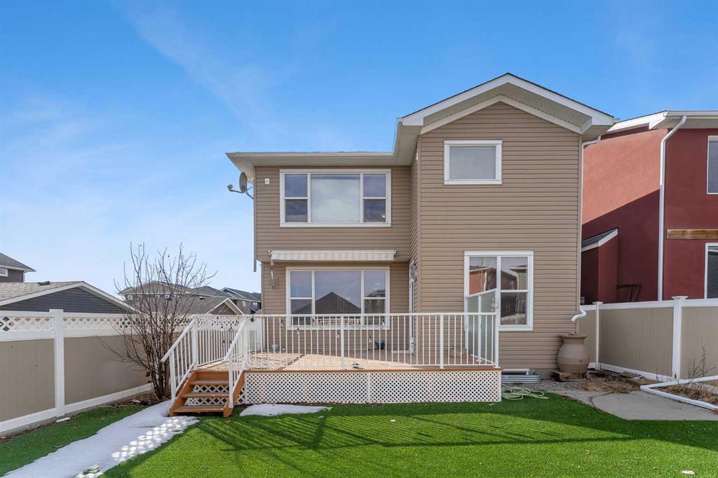 CORNER LOT | 2,427 SQFT | MAIN FLOOR OFFICE | BONUS ROOM | FULLY FENCED & LANDSCAPED | DECK | GAS FIREPLACE | CLOSE TO MAJOR ROUTES Welcome to this BEAUTIFULLY MAINTAINED 2,427 SQFT HOME SITUATED ON A DESIRABLE CORNER LOT in the vibrant community of Redstone. With EXTRA WINDOWS FOR ABUNDANT NATURAL LIGHT, A FULLY LANDSCAPED AND FENCED BACKYARD, AND A THOUGHTFULLY DESIGNED LAYOUT, this home offers the perfect blend of COMFORT, FUNCTIONALITY, AND STYLE. The moment you step inside, you are greeted by a SPACIOUS FOYER that opens into a bright and welcoming main floor. This level features a GENEROUS LIVING ROOM WITH A COZY GAS FIREPLACE, creating the perfect atmosphere for relaxing evenings. The main floor also includes a DEDICATED DINING SPACE, a VERSATILE OFFICE/DEN IDEAL FOR WORKING FROM HOME, and a CONVENIENTLY LOCATED 2-PIECE BATHROOM. The UPGRADED KITCHEN is designed to impress, featuring QUARTZ COUNTERTOPS, STAINLESS STEEL APPLIANCES, A GAS RANGE, STYLISH BACKSPLASH, CEILING-HEIGHT CABINETRY, A LARGE KITCHEN ISLAND, AND A SPACIOUS PANTRY—perfect for both everyday living and entertaining. Thanks to the CORNER LOT PLACEMENT, the home enjoys EXTRA WINDOWS THROUGHOUT, filling the space with AMPLE NATURAL SUNLIGHT ALL DAY LONG. Heading upstairs, BEAUTIFUL SPINDLE RAILINGS lead you to a thoughtfully designed upper level. The SPACIOUS PRIMARY BEDROOM offers a true retreat, complete with a LUXURIOUS 5-PIECE ENSUITE FEATURING DUAL SINKS, A STANDING SHOWER, AND A RELAXING SOAKER TUB, along with a WALK-IN CLOSET. This floor also includes a HUGE BONUS ROOM WITH VAULTED CEILINGS, perfect for family movie nights or a kids’ play area. Two additional WELL-SIZED BEDROOMS SHARE ANOTHER FULL BATHROOM, and the STRATEGICALLY PLACED UPPER-FLOOR LAUNDRY ROOM adds extra convenience. The home also comes equipped with CEILING FANS for added comfort. Step outside to enjoy the FULLY FENCED AND LANDSCAPED BACKYARD, complete with a HUGE DECK—PERFECT FOR SUMMER BBQS, GATHERINGS, OR SIMPLY RELAXING OUTDOORS. The property also offers BACK ALLEY ACCESS, adding flexibility and convenience. Ideally located with excellent connectivity, this home is just MINUTES FROM PARKS, SHOPPING PLAZAS, AND MAJOR ROADWAYS—including **3 MINUTES TO Stoney Trail, 5 MINUTES TO Deerfoot Trail, 10 MINUTES TO Calgary International Airport, AND ONLY 20 MINUTES TO DOWNTOWN Calgary. DON’T MISS THIS INCREDIBLE OPPORTUNITY TO OWN A SPACIOUS FAMILY HOME IN A PRIME LOCATION. BOOK YOUR PRIVATE SHOWING TODAY — HAPPY SHOWINGS!