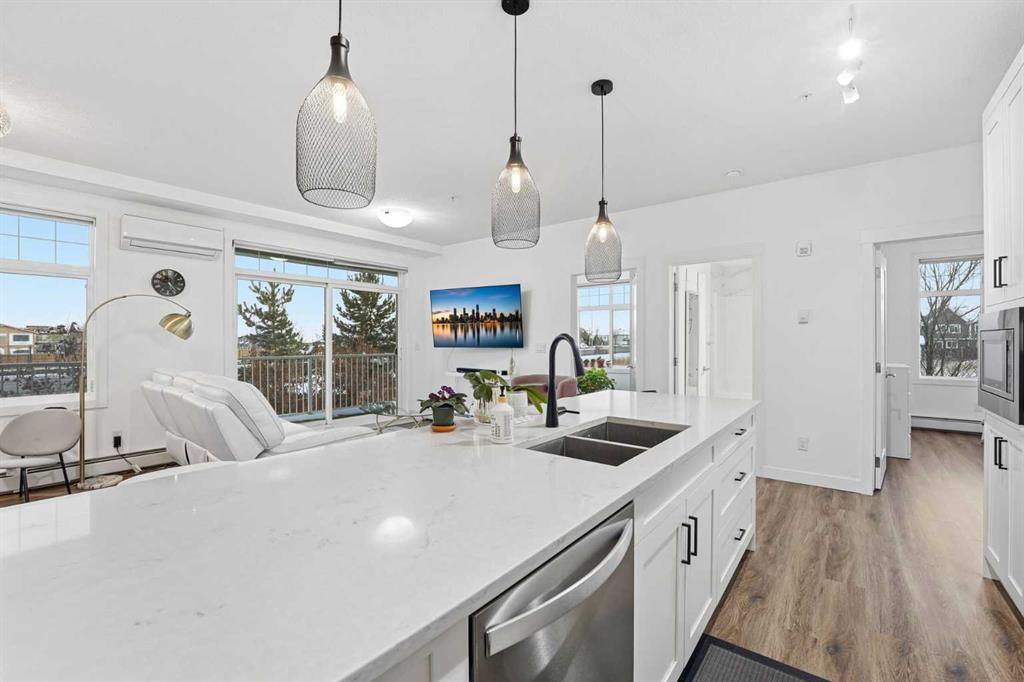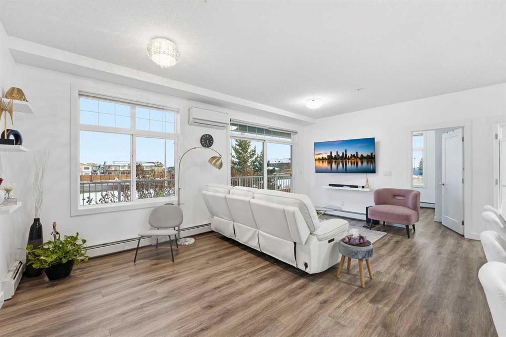 Step into one of Calgary’s most coveted communities and claim this stunning corner unit before it’s gone! Recently built and perfectly positioned to soak up South & East sunlight, this condo is packed with features that scream lifestyle upgrade: 2 spacious bedrooms & 2 full bathrooms 9-foot ceilings and massive windows flooding the space with natural light In-suite laundry + wall-mounted A/C for ultimate comfort Tandem underground parking stall (#427) + private storage locker (#3206) The primary suite boasts a walk-through closet leading to a luxurious 4-piece ensuite with double vanity, while the second bedroom offers its own cheater ensuite for convenience. The sleek kitchen shines with quartz countertops, stainless steel appliances, and a large island—perfect for entertaining! And let’s talk about the balcony: at 29' x 6', it’s practically an outdoor living room where you can relax, host, or simply enjoy fresh air with friends. All of this is just steps away from shops, restaurants, schools, playgrounds, Auburn Bay lake access, South Health Campus, and more. Opportunities like this don’t last—schedule your showing TODAY before someone else snatches it up! ??