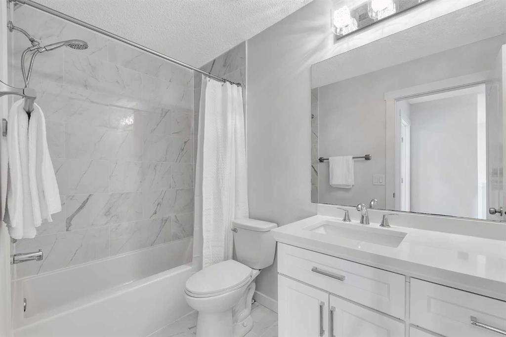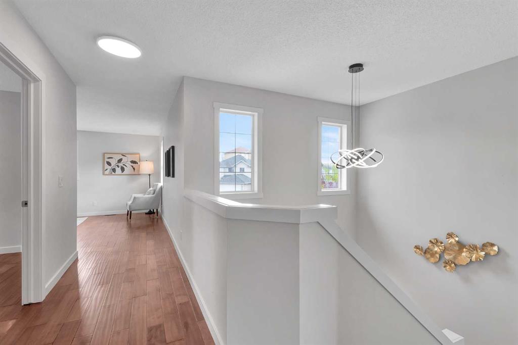 Welcome to this RENOVATED WALKOUT home, tucked away on a quiet CUL-DE-SAC in the sought-after community of Royal Oak. Offering over 2800 square feet of total living space, this home perfectly blends modern design with everyday functionality. The impressive open-concept main floor features a spacious office, a warm and inviting living room, a sunlit dining area, a gourmet kitchen, and a 2-piece powder room. Wide luxury vinyl plank flooring extends throughout the main level, creating a seamless and elegant flow. The chef-inspired kitchen is equipped with stainless steel appliances, a gas stove, chimney hood fan, quartz countertops, and a convenient walk-in pantry, an ideal setup for both daily living and entertaining. Brand new deck and south-facing backyard, making indoor-outdoor hosting a breeze. Upstairs, the luxurious primary suite serves as a private retreat, bathed in natural light from large windows. Two additional generously sized bedrooms share a well-appointed main bathroom. A versatile bonus room provides additional space for playroom, or media area, while the upper-level laundry room adds everyday convenience. The FULLY FINISHED WALKOUT basement adds tremendous value, offering a fourth bedroom, a full bathroom, and a spacious recreation room, perfect for entertaining guests or enjoying family activities. The fully fenced backyard offers privacy and security, ideal for children and pets. Located close to schools, parks, walking paths, and open green spaces, this home also enjoys proximity to a wide array of shops, restaurants, and convenient access to major routes such as Stoney Trail and Crowchild Trail, ensuring effortless commuting. This is a rare opportunity to own a thoughtfully renovated home in one of Calgary’s most family-friendly neighborhoods. Upgrades completed in 2025 include new cabinets, countertops, flooring, deck, lighting, refrigerator, dishwasher, chimney hood fan, fresh paint, and fully renovated washrooms