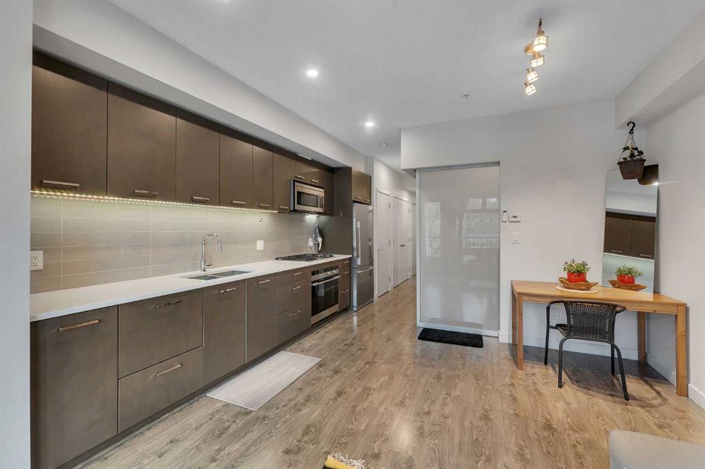 Live in the heart of Mission, one of Calgary’s most walkable and vibrant neighbourhoods. This modern one bedroom at Tribeca offers the perfect blend of style, functionality, and urban lifestyle. Featuring a sleek kitchen with premium Fisher, Paykel and Bosch appliances, quartz countertops, gas cooktop, and ample STORAGE. The smart layout includes a versatile bedroom space with sliding panels for added privacy, a contemporary 4 piece bathroom, and IN SUITE LAUNDRY. Enjoy a north facing patio with gas BBQ hookup, titled UNDERGROUND PARKING, and assigned STORAGE. Building amenities include visitor parking, bike storage, community gardens, and a car wash bay. Perfect for first time buyers, professionals, or investors looking for a PRIME INNER CITY opportunity