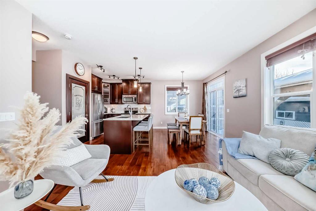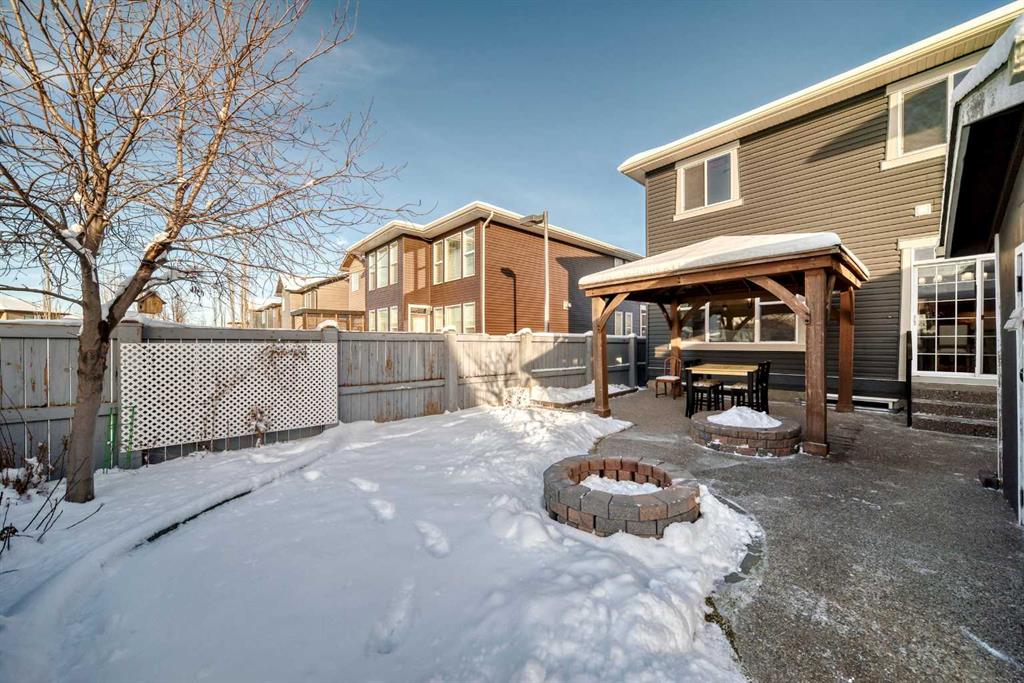 Welcome to this charming and well maintained home located in the heart of Evanston! This property features a front-attached double garage, a west-facing backyard, and a warm, inviting atmosphere perfect for families. Positioned next to a walking pathway, the home enjoys additional privacy with no direct neighbor on one side. The main floor boasts a functional layout with a 2-piece bathroom, a convenient laundry room, and an open-concept kitchen, dining area, and living room. Large west-facing windows flood the main living spaces with natural light, creating a bright and welcoming setting throughout the day. Upstairs, you’ll find three spacious bedrooms and two full bathrooms, including a comfortable primary suite with its own private ensuite. The beautifully designed low-maintenance backyard is a true highlight—complete with a large storage shed, an expansive poured concrete patio, a fire pit, and a charming garden area, offering the perfect outdoor retreat for family gatherings. A detached gazebo is also included and can stay or be removed at the buyer’s preference. The front and back gardens have been lovingly cared for by the owner, with abundant seasonal flowers that create a stunning display when they bloom in the summer—adding color, character, and charm to the property. New roof, gutters, and siding—have been completed following hail damage, providing peace of mind for the next owner. The unfinished basement offers a blank canvas to create the perfect additional living space to suit your needs. This exceptional location is hard to beat: 1.5 km to Kenneth D. Taylor School (K–4), walking distance to the new Evanston Heights Middle School (Grades 4–9), opening Fall 2026, 800 meters to Evanston’s commercial hub with FreshCo, restaurants, gas station, banks, and more. With easy access to Stoney Trail offering effortless commuting around the city. A wonderful opportunity to own a bright, cozy home in one of Calgary’s most desirable family-friendly communities. Don’t miss it!