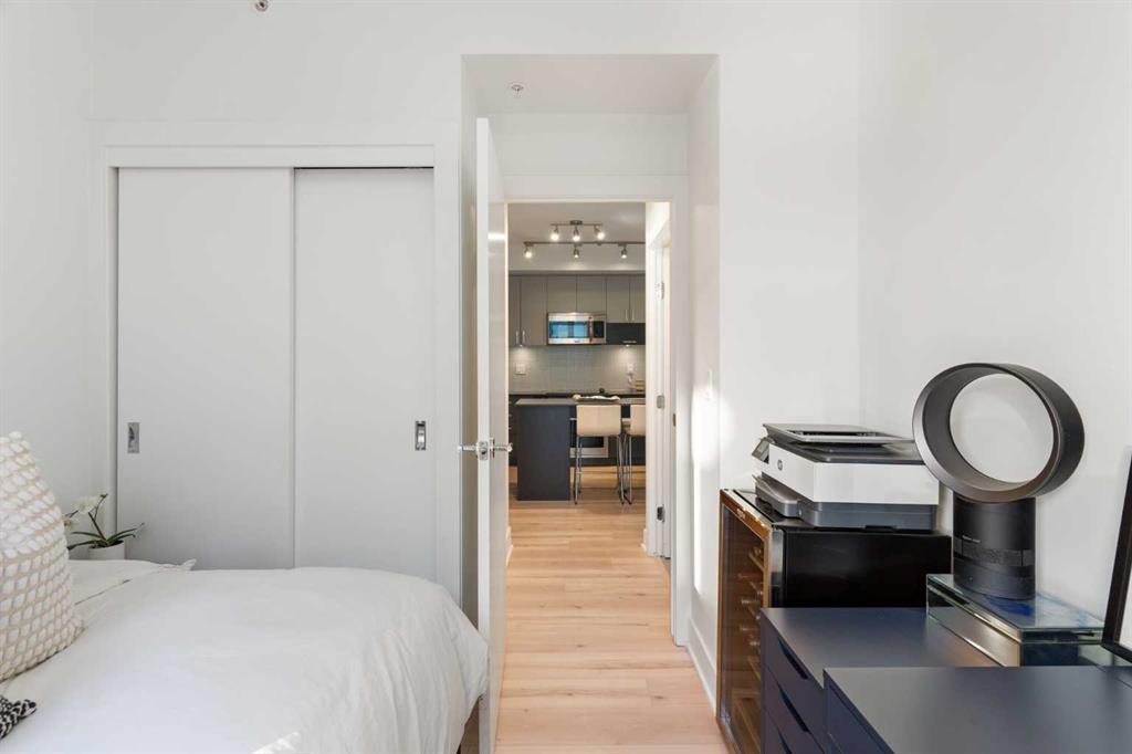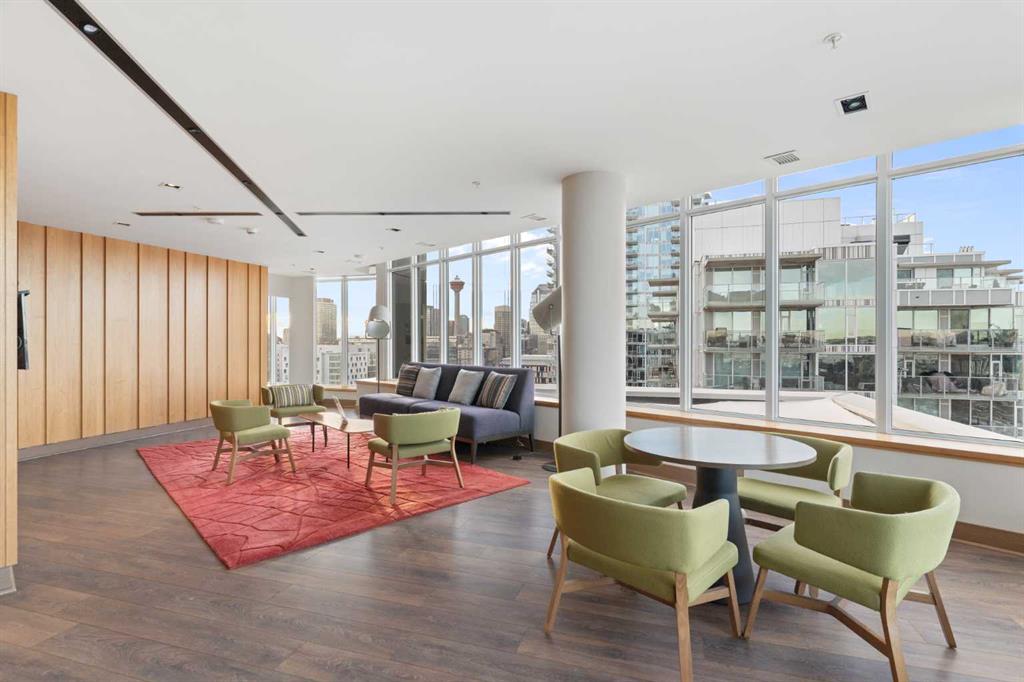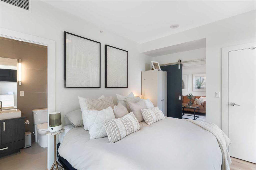 Welcome to #303 in the First East Village — one of the most unique units in the building. This exceptional condo features nearly 300 sq. ft. of private outdoor space with a natural gas line, offering a true backyard-in-the-sky experience — a rare find in downtown living. Inside, you’ll find a bright, modern floor plan enhanced by new light laminate flooring, sleek quartz countertops, and floor-to-ceiling windows that flood the space with natural light. The chef-inspired kitchen offers ample prep and dining space with a dual-purpose island and upgraded stainless steel appliances — perfect for cooking or entertaining. This functional 2-bedroom, 2-bathroom layout is designed for flexibility and comfort. The primary suite easily accommodates a king or queen-sized bed (as shown in photos), while the second bedroom offers versatile space for guests, children, or a home office. Enjoy air conditioning for year-round comfort and seamless indoor/outdoor living through direct access to your private terrace. Residents enjoy access to premium building amenities, including a rooftop patio with BBQ area, party room, guest suite, billiards room, and conference lounge — all available for private booking. This unit also includes one underground parking stall and a dedicated storage locker. Located in the heart of Calgary’s East Village, you’re steps from the RiverWalk, bike paths, Calgary Zoo, dog parks, community gardens, and the upcoming pickleball courts. Walk to nearby grocery stores, cafés, bistros, and local amenities, with quick access in and out of downtown via 6th Avenue or Memorial Drive. A truly rare downtown condo combining modern design, functional living, and exceptional private outdoor space.