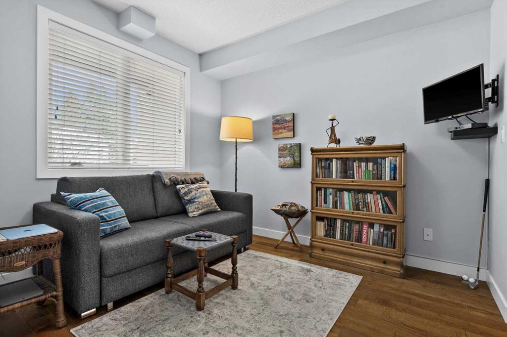 Welcome to refined inner-city living at UNO Condos, ideally positioned in the heart of Lower Mount Royal, one of Calgary’s most established and sought-after neighborhoods. Here, the charm of tree-lined streets and stately homes blends seamlessly with the vibrancy of urban life, just moments from the energy of 17th Avenue SW and the boutique appeal of 4th Street SW in Mission, this location offers both lifestyle and convenience in equal measure. This beautifully curated south-facing residence presents a thoughtful balance of comfort and sophistication, offering one of the largest unit layouts available within this complex. Recently refreshed with a modern palette of paint, the home is elevated by quartz countertops, engineered hardwood flooring, ceramic tile, and a sleek suite of stainless-steel appliances complemented by a wine fridge, built-in workspace, and in-suite laundry. The covered south-facing balcony invites year-round enjoyment, complete with a gas line and intimate balcony seating. In-floor heating ensures warmth through Calgary’s winters, while the addition of air conditioning provides welcome relief in the summer months. UNO is a well-managed, boutique building supported by a proactive and engaged board, with condo fees kept at a reasonable level and backed by a strong, 2025 Reserve Fund Study. Residents also enjoy access to a serene, shared courtyard deck and garden; an unexpected retreat tucked quietly behind the property. Inside, this home is both inviting and functional, ideal for relaxing or entertaining. The spacious primary suite comfortably accommodates a king-sized bed and features a walk-through closet leading to a luxurious five-piece ensuite with dual vanities, a soaker tub, and an upgraded glass shower. Thoughtfully separated for privacy, the second bedroom or optional den, includes its own walk-through closet and direct access to a stylish three-piece cheater ensuite. An oversized titled underground parking stall, secure assigned storage locker, bike room, and an exceptional Royal Avenue SW address. A home that effortlessly combines comfort, style, and location; this is Lower Mount Royal living at its finest.