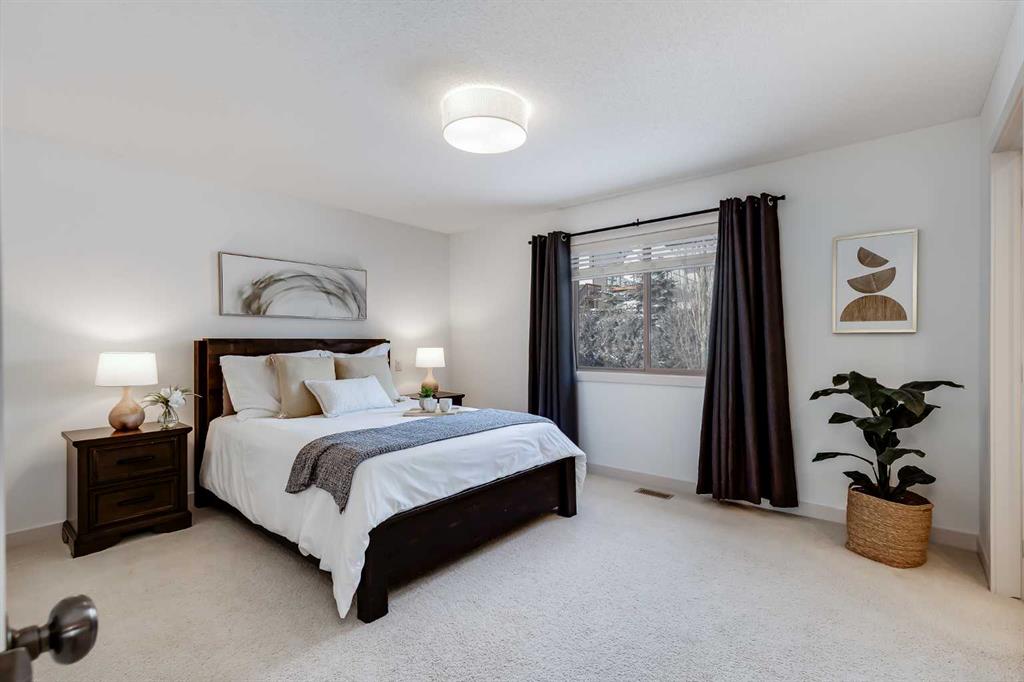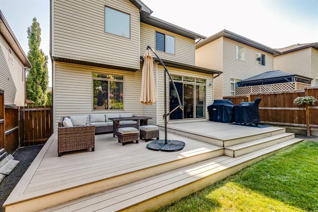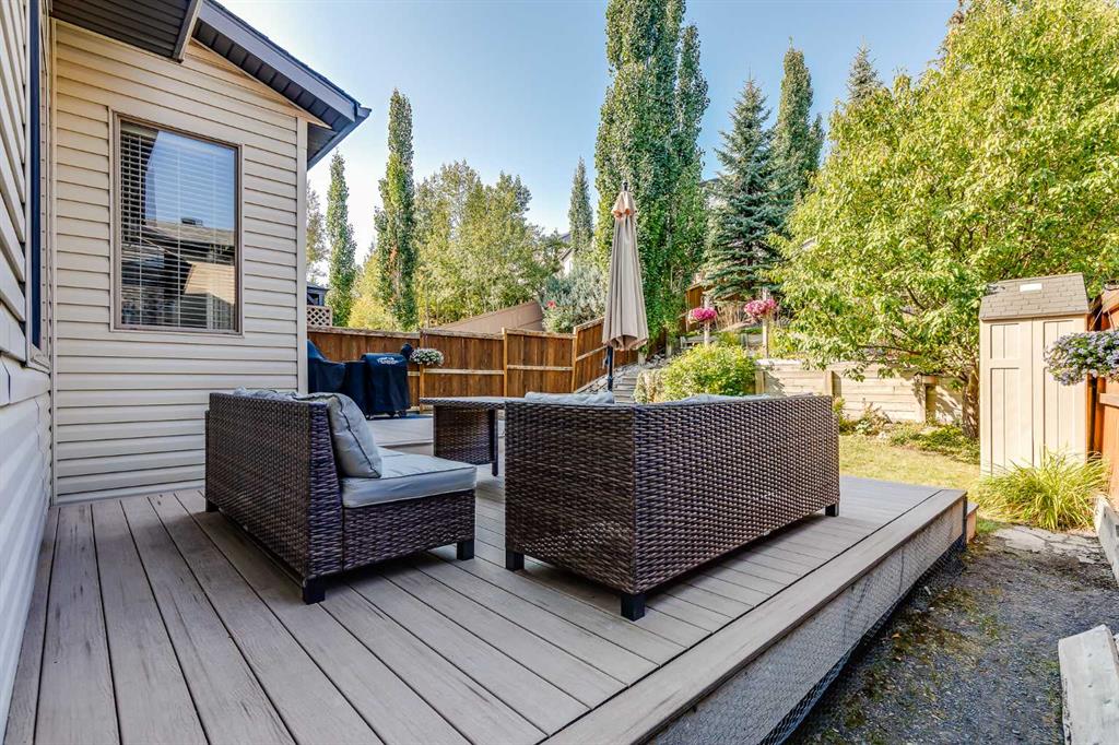 Located on a quiet crescent in the desirable community of Springbank Hill, this two-storey home offers over 2,800 square feet of thoughtfully developed living space, a double attached garage, and a private west-facing yard. With four bedrooms and three-and-a-half bathrooms, the layout is well suited for both everyday living and entertaining. The main floor is defined by rich hardwood flooring, nine-foot ceilings, and large windows that fill the space with natural light. A spacious entryway welcomes you inside, where a graceful archway connects the foyer to the open-concept living, dining, and kitchen areas. The kitchen is both functional and refined, featuring granite countertops, stainless steel appliances including a gas range, a corner pantry, generous cabinetry, and a central island with seating. The living room is anchored by a cozy gas fireplace, while the dining area offers easy access to the back deck through sliding doors. Completing this level are a two-piece powder room and a combined mudroom and laundry area conveniently located off the garage. Upstairs, plush carpet leads to a large bonus room with a vaulted ceiling, creating a comfortable space for relaxation or play. The primary bedroom is set apart as a true retreat, accessed through double doors and offering a walk-in closet along with a well-appointed four-piece ensuite that includes a soaker tub and a standalone shower. Two additional bedrooms are generously sized, one with its own walk-in closet, and are served by a four-piece bathroom. The fully developed basement adds valuable versatility, enhanced with upgraded soundproofing. A massive recreation room provides ample space for media, games, or gatherings. An additional bedroom with French doors and a walk-in closet can also function as a fitness room or home office. A four-piece bathroom and a separate storage room complete the lower level. Additional features include air conditioning for warm summer nights, a radon mitigation system, and a garage that comfortably accommodates a standard truck. The private backyard is a standout feature, thoughtfully designed for enjoyment throughout the seasons. Facing west and surrounded by mature trees, it offers a sense of seclusion rarely found. A large composite deck leads to tiered terraces that create multiple outdoor living areas. The yard is home to an abundance of flowers, berry bushes and hops. Aspen Landing, with its shops, restaurants, and services, is just a ten-minute walk away. The home is minutes from Guardian Angel School, Calgary Academy, Rundle College, Ernest Manning, and Ambrose University, as well as the West Side Rec Centre, WinSport, and Pinebrook Golf Club. Parks, playgrounds, pathways, and convenient access to 17th Avenue, Stoney Trail, and the 69th Street LRT station make commuting easy, with downtown Calgary reachable in approx 20 minutes. Book your showing today and take time to explore the floor plans and 3D tour for a closer look ahead of your visit.