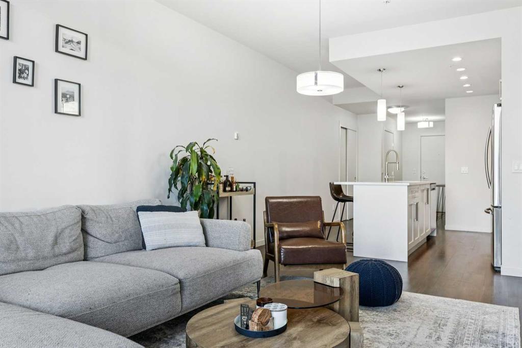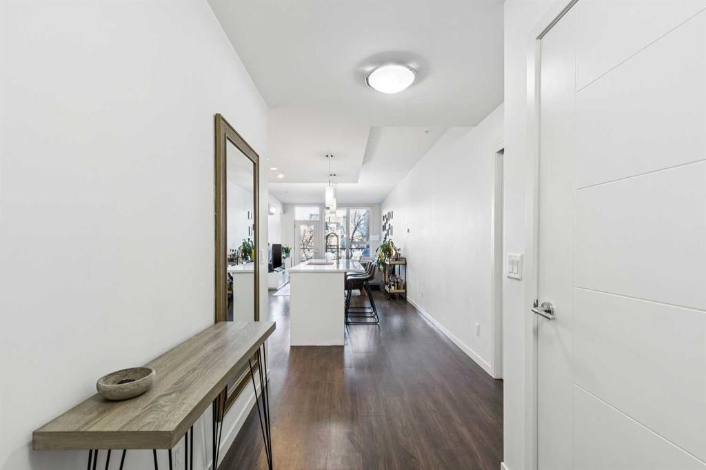 Welcome to this exceptional 2 bedroom, 2 bathroom corner unit in the sought-after Tela Building, ideally located on arguably Mission’s best street 22nd Avenue SW. Just steps from the area’s top inner-city amenities, this street-facing condo is tucked on a quiet, tree-lined block and offers the perfect blend of privacy, light, and location. Situated in the northwest corner of the third floor, this bright and airy home features 9-foot ceilings, central air-conditioning, a thoughtfully designed 870 sq ft floorplan, and two titled underground parking stalls plus a storage locker. Large windows throughout flood the space with natural light, while downtown views can be enjoyed from both the primary bedroom and the private balcony. The open-concept kitchen is designed for both everyday living and entertaining, complete with a central island with quartz countertops, stainless steel appliances, and seamless flow into the dining and living areas. Step outside to the balcony overlooking mature trees, with sightlines north to downtown and west toward 4th Street, and a gas line for BBQ. The spacious primary bedroom offers a peaceful retreat, overlooking a beautiful mature tree that creates a canopy of greenery in the spring. The attached ensuite features double quartz vanities, tile flooring, and a large walk-in shower. The second bedroom is generously sized with west-facing windows for warm afternoon light and is conveniently located near the full second bathroom ideal for guests. Additional highlights include pet-friendly living, secure underground parking with side by side stalls, secure bike storage and unbeatable access to Mission’s vibrant shops, restaurants, grocery stores, banks, transit, and professional services along 4th Street. Enjoy walking or cycling the Elbow River pathways, located less than five minutes from your door. This is a fantastic opportunity to enjoy quiet, inner-city living in one of Calgary’s most desirable neighbourhoods.