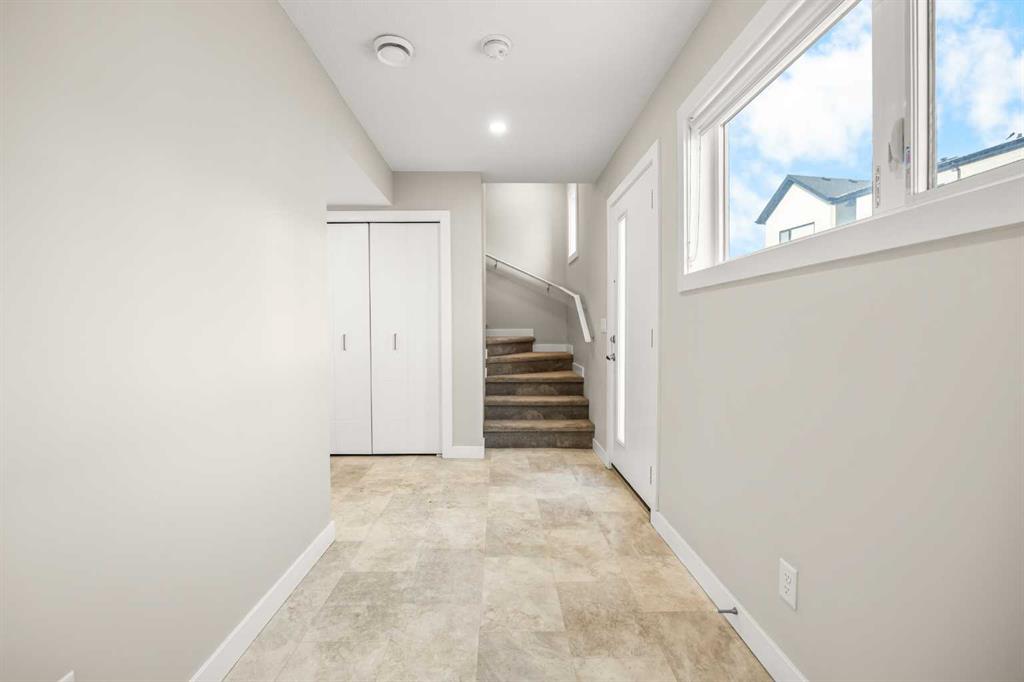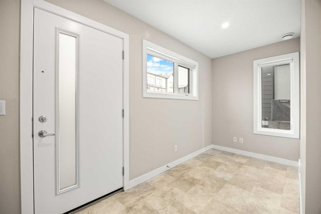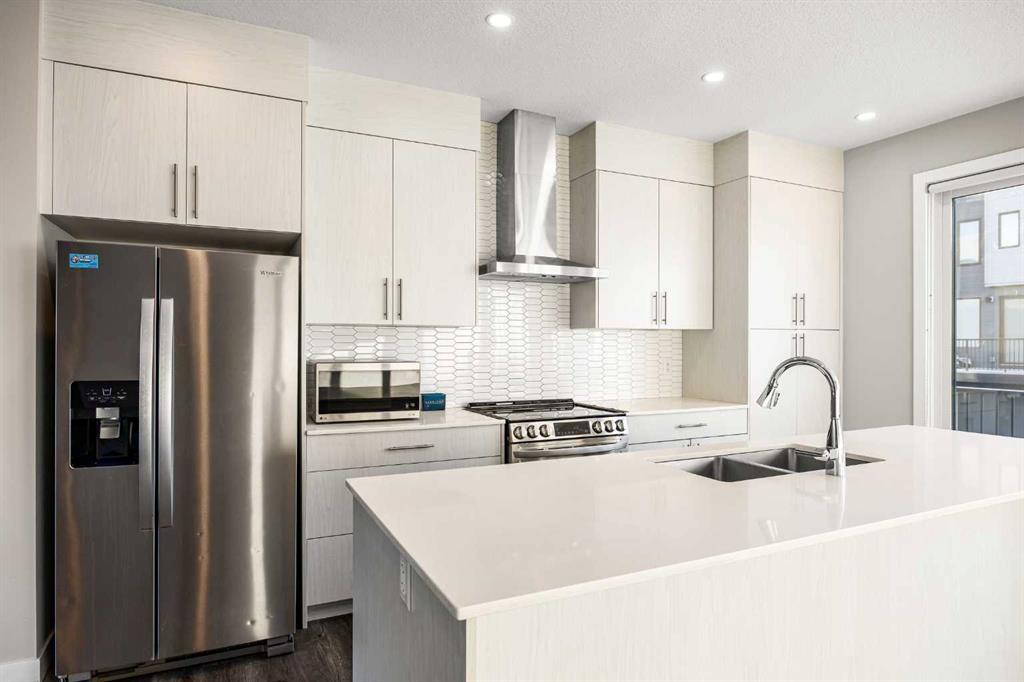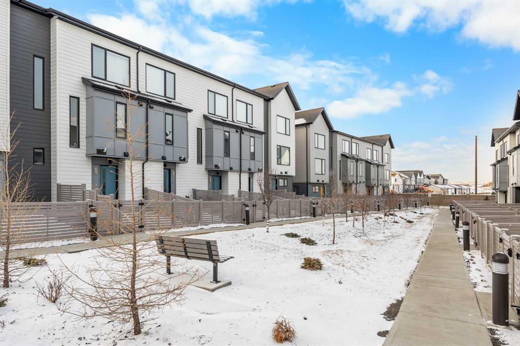 **OPEN HOUSE this SUN, Feb 1st at 2-4PM** Located in the family-friendly community of Evanston, just minutes from schools, parks, shopping, and dining, this 3-Bedroom, 2.5-Bath, 1,500 sq.ft. End unit townhouse offers a perfect blend of space, function, and modern living. The main floor features a spacious open-concept layout with 9-ft ceilings, starting with a bright east-facing Living Room that fills the space with natural light. The Kitchen is highlighted by a large center island, quartz countertops, and stainless-steel appliances including a new stove, flowing seamlessly into the Dining area, which leads to the expansive balcony with gas hookup, perfect for BBQs and outdoor entertaining. A convenient 2-Piece Bath completes this level. On the upper level, the Primary Bedroom provides privacy and a 3-Piece Ensuite, with two additional Bedrooms sharing a 4-Piece Bathroom, plus upper-level Laundry with storage for added convenience. The Entrance Level includes a versatile Den which can be used as a sitting area or home office, perfect for work, hobbies, or storage. The side-by-side double attached Garage provides secure parking and extra storage, plus more parking space on the driveway for your visitors. Outside, the fenced front yard adds extra outdoor space, while the landscaped central courtyard enhances the community feel. Ideally located, this end-unit townhouse is just steps from nearby playgrounds and parks, and minutes from schools, grocery stores, shopping, and dining options, including the Carrington complex. Commuting is quick and easy with Stoney Trail nearby, providing convenient access across the city. With its well-maintained condition and move-in ready status, this home combines community, convenience, and modern living in one highly desirable package.