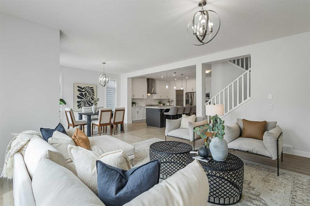 An exceptional luxury residence offering 2,580 sq. ft. of refined living in the prestigious community of Crestmont, perfectly positioned on a sun-drenched south-facing lot. The grand entry introduces a sophisticated den/office, elevated by designer wallpaper and an elegant ambiance. The gourmet kitchen is a true showpiece, featuring crown-moulded cabinetry, an expansive quartz island, premium built-in appliances including a wall oven and microwave, a striking chimney hood fan, and a gas cooktop—crafted for both everyday living and upscale entertaining. The main living area is anchored by a stunning full-height tiled fireplace, creating a warm yet dramatic focal point. Step outside to a beautifully curated backyard retreat, complete with a massive deck designed for seamless indoor-outdoor living and private relaxation. Upstairs, the home continues to impress with four generously sized bedrooms, including an oversized primary suite offering a luxurious escape, along with a spacious bonus room ideal for elevated family living or entertainment. Set against a breathtaking mountain backdrop, Crestmont offers unparalleled access to scenic pathways, nature, and panoramic views. Ideally located just minutes from WinSport Olympic Park and the Calgary Farmers’ Market West, less than 20 minutes to downtown Calgary, and approximately one hour to the iconic Banff National Park—this is elevated living at its finest.