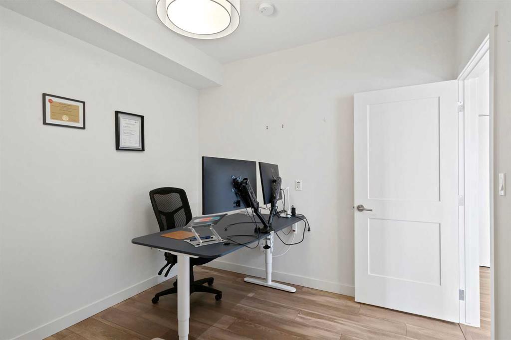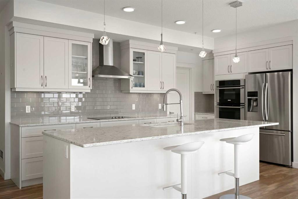 See the virtual tour! Welcome to 332, 20 Seton Park SE – a spacious and stylish third-floor unit in a modern four-story complex, ideally located within a 5 minute walk from the South Health Campus and close to the Seton YMCA. With over 1,100 sq. ft. of beautifully designed living space, this bright and open apartment is filled with natural light, thanks to large windows throughout, including in both bedrooms. The sleek kitchen is a chef’s dream, featuring white quartz countertops, a large undermount sink, stainless steel appliances, and a striking stainless steel range hood over a smooth induction cooktop. You'll love the wall-mounted oven and microwave, plus a walk-in pantry that provides ample storage. This home includes two spacious bedrooms, with a flexible den that could easily serve as a third bedroom or home office. The primary suite boasts a generous walk-in closet and a private 4-piece ensuite, while a second full bath is conveniently located near the entrance. Enjoy the convenience of a dedicated laundry room with stacked washer/dryer and built-in shelving, as well as a titled parking stall in the secure underground parkade—no more scraping snow off your car in the winter! Step out onto your private balcony to take in unobstructed views of green space, with gorgeous west-facing views of the Rocky Mountains. Whether you're a fitness enthusiast, medical professional, or someone seeking upscale urban living in south Calgary, this contemporary unit delivers on comfort, style, and location. Don’t miss out on this bright and beautiful Seton gem!