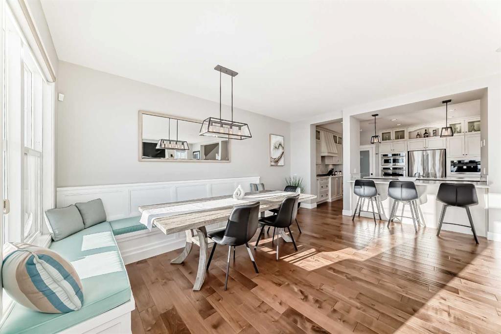Welcome to 35 Mahogany Crescent SE, a meticulously maintained home in one of Calgary’s most desirable lake communities. Offering over 3,500 sq. ft. of fully finished living space, this residence features 5 bedrooms, 3.5 bathrooms, a fully finished basement, and no side or rear neighbours for exceptional privacy. The open-concept main floor showcases a stunning feature fireplace, coffered ceilings, in-ceiling speakers, and a chef-inspired kitchen with quartz countertops, custom cabinetry, gas range, premium built-in appliances, and a Miele coffee machine. Upstairs, the primary retreat includes a coffered ceiling, spa-like ensuite with heated floors, freestanding tub, glass and tile shower, and a walk-in closet with custom cabinetry. A spacious bonus room and additional bedrooms complete the upper level. The finished basement offers a large recreation area, additional bedroom(s), and ample storage. Enjoy year-round comfort with dual A/C units, water softener, and heated ensuite floors. Outside, relax on the custom concrete patio with built-in fireplace, gas BBQ line, hot tub rough-in, and a beautifully landscaped, low-maintenance backyard backing onto green space. The heated double garage features epoxy floors, overhead storage, and a garage heater. Ideally located steps from Mahogany Lake and close to parks, pathways, schools, and shopping. Move-in ready and offering an exceptional lifestyle in Mahogany.