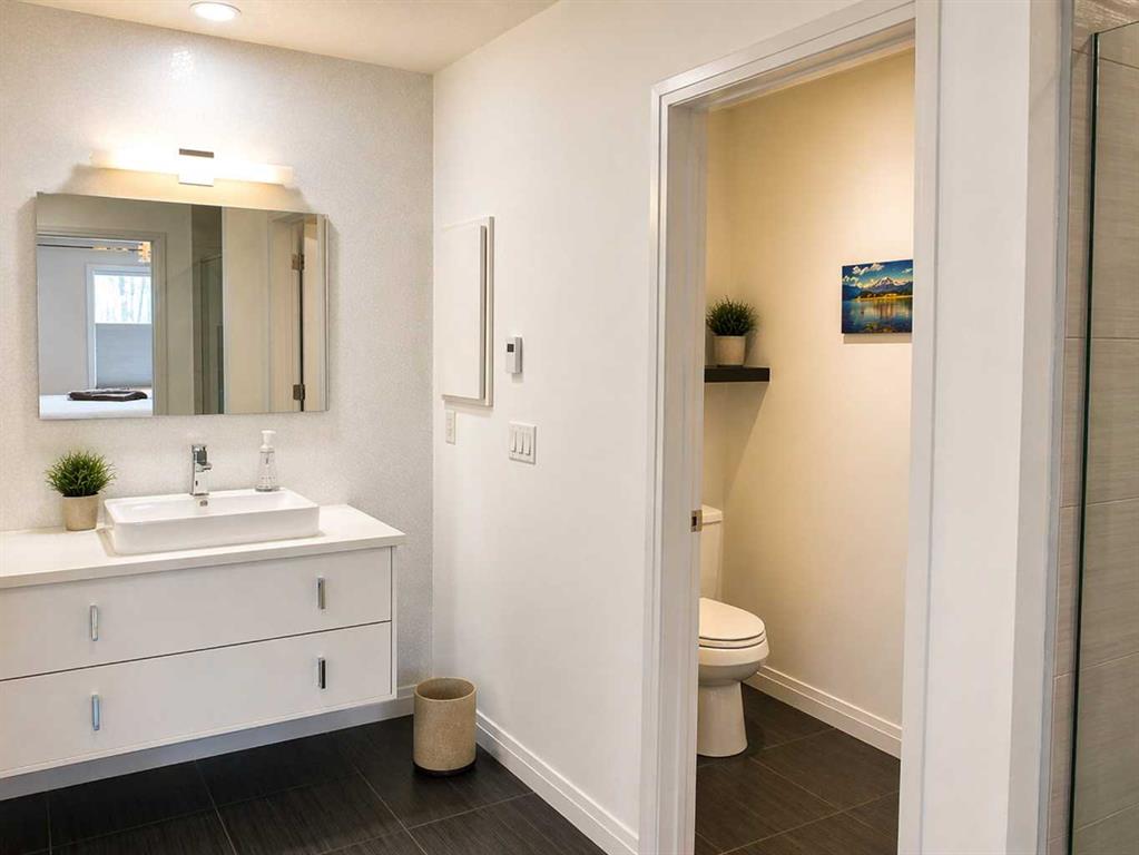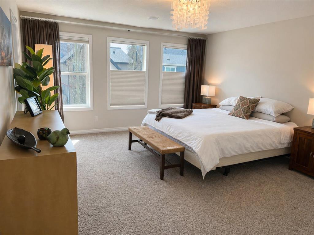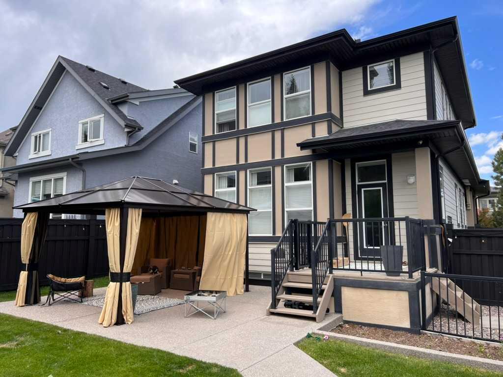 Experience the pinnacle of lakeside living in this stunning former show home by Jayman Built, perfectly positioned on a corner lot just moments away from protected wetlands and two schools. This property features a separate side entry leading to a one-bedroom illegal suite, offering both convenience and versatility. Step inside to discover the hallmark of a former show home, complete with impressive 9' knockdown ceilings, Hunter Douglas blinds, central air conditioning, and built-in speakers. The unique layout is designed to impress potential homeowners, with even the garage boasting a significant ceiling height that allows for a lift, making it a standout feature in the neighborhood. The main floor presents a spacious, open-concept design starting with a beautifully appointed kitchen. Highlights include extended-height cabinets, soft-close mechanisms, a built-in oven, chimney hood fan, French door refrigerator, waterfall granite island, walk-in pantry, mosaic tiled backsplash, gas stove top, and a side BBQ deck. The central dining area flows seamlessly into the back lifestyle room, where a striking gas fireplace with floor-to-ceiling accent tile serves as the focal point. From here, you can access a generous private yard through the garden door, complete with a lower concrete patio, a deck, front and back irrigation systems, a dog run, and a side gate for tranquil evening strolls along the pathways and wetlands. On the upper level, you’ll find a convenient laundry room and a mid-ship bonus room featuring built-in speakers and stylish wallpaper. This floor also includes two spacious children's rooms, each with access to a private 4-piece bath, while the expansive primary bedroom at the back captures breathtaking views. This luxurious suite can easily accommodate a king-size bed and additional furniture. It also features a private balcony, built-in speakers, a walk-in closet, and a 5-piece spa-inspired en-suite, complete with heated floors, dual storage vanities, a standalone tub, a full-size shower, and a water closet. For the discerning buyer, this home offers a self-contained illegal suite on the lower level, complete with its own outdoor space. With 9' ceilings, an eat-in kitchen mirroring the upper-level design—featuring quartz counters, a waterfall island, cooktop, stove, dishwasher, over-the-range microwave, soft-close cabinetry, and ample prep space—this suite is both functional and stylish. Additionally, it includes a 3-piece bath, a cozy living area, a bedroom, and a full-size laundry pair within a walk-in closet. This exceptional property combines luxurious living with practical features, making it a perfect choice for any homebuyer. Spend your summer at the lake, call to view today!