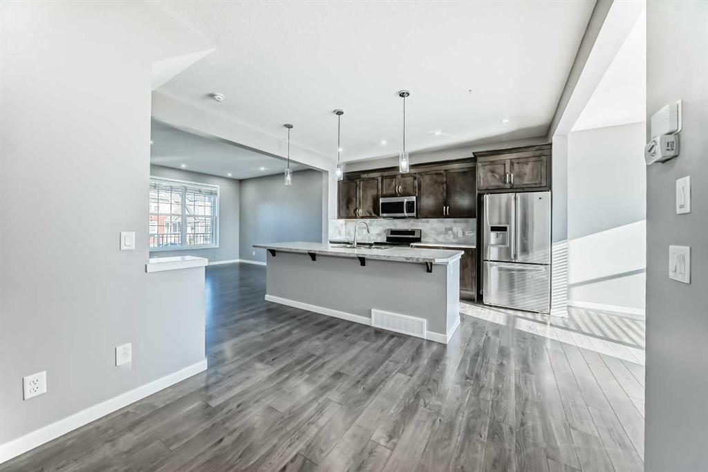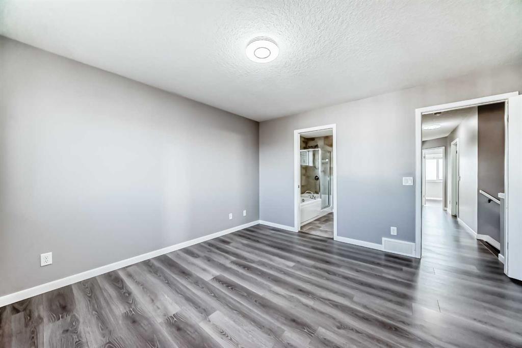 Welcome to this beautiful family home in the heart of Auburn Bay! Beautifully developed living space — plus an additionalin the undeveloped basement ready for your personal touch — this freshly painted, open-concept home offers comfort, functionality, and style. At the front, a sunny 19.5-foot porch invites you to enjoy your morning coffee or unwind in the evening. Step inside through the decorative glass door with a transom window that fills the entryway with natural light while maintaining privacy. The spacious living room features a large window and low-maintenance laminate flooring that flows seamlessly through to the kitchen and dining area. The modern kitchen is equipped with stainless steel appliances, plenty of cabinetry, and a massive island perfect for meal prep or casual dining. Under-cabinet and track lighting brighten the workspace, while a pantry provides added storage. Just across from the kitchen is a convenient office or study area — perfect for helping the kids with homework or setting up your own home library. The adjacent dining area enjoys views of the backyard through a large window, and a two-piece powder room is thoughtfully located near the back door for convenience. Upstairs, the primary bedroom is a true retreat with a private five-piece ensuite featuring a soaker tub, stand-up shower, and double vanity, along with a spacious walk-in closet. Two additional bedrooms and an upper-level laundry room make this floor ideal for family living. The lower level, complete with a large egress window, offers the potential to add a fourth bedroom or create a custom-designed living space. Outside, the backyard is ready for entertaining with a freshly painted two-tier deck — perfect for summer barbecues and family gatherings. There’s also ample space for a future double garage accessible from the paved alley. With its family-friendly layout, abundant natural light, and room to grow, this freshly painted Auburn Bay home offers the perfect blend of comfort, functionality, and modern living.