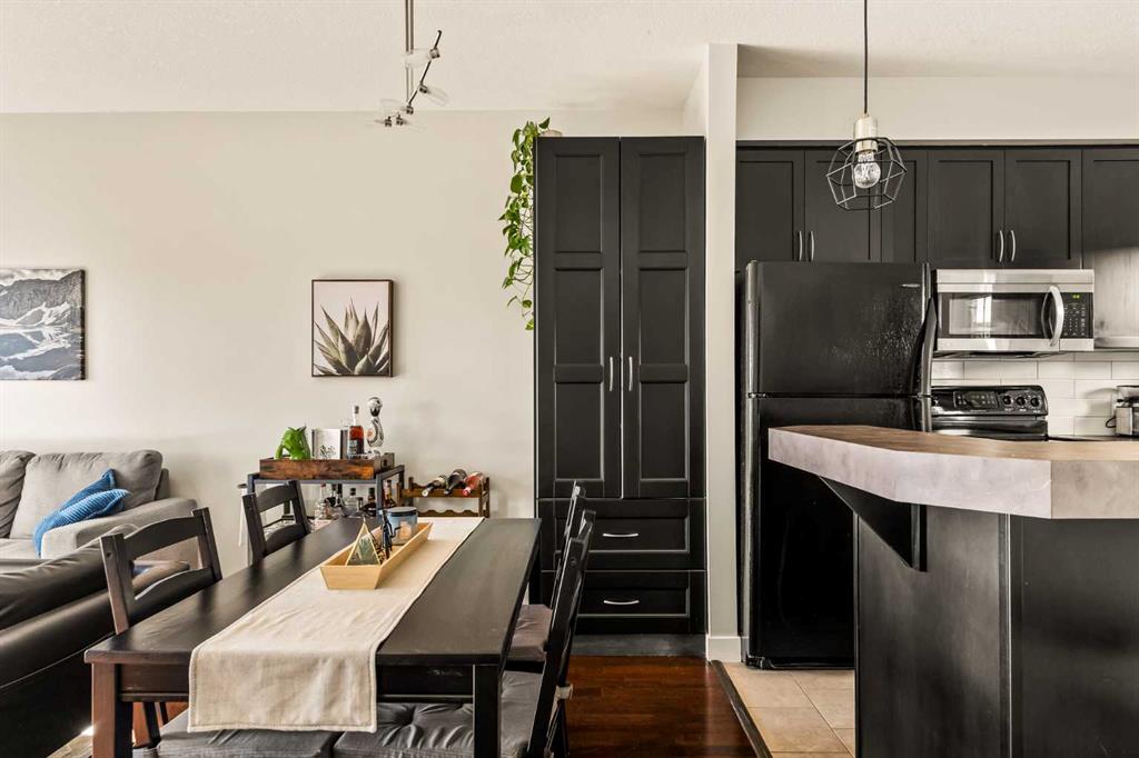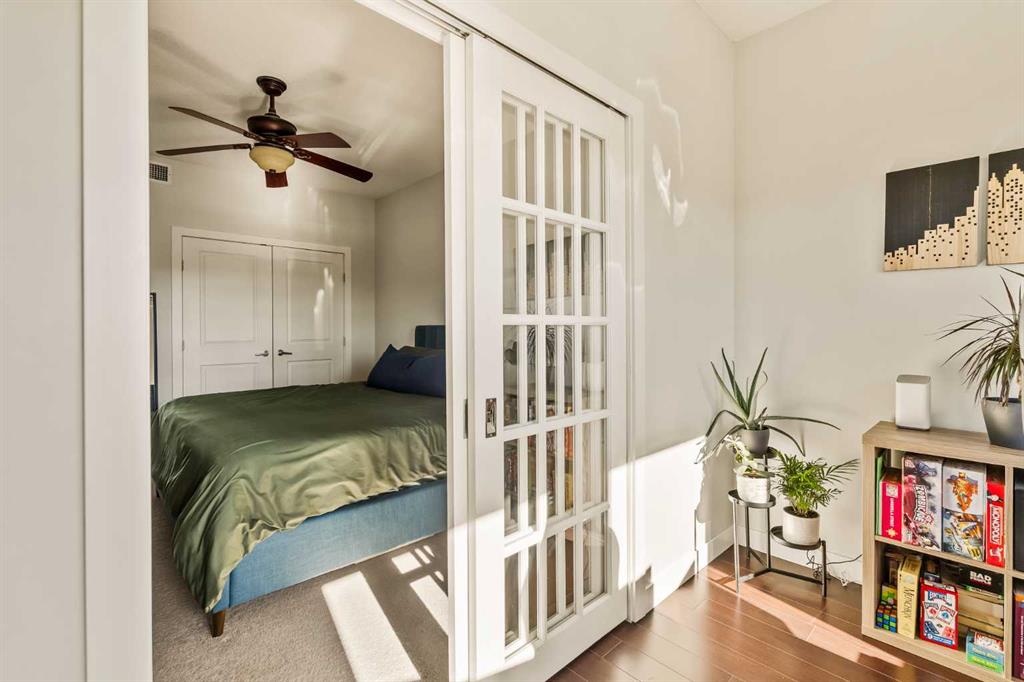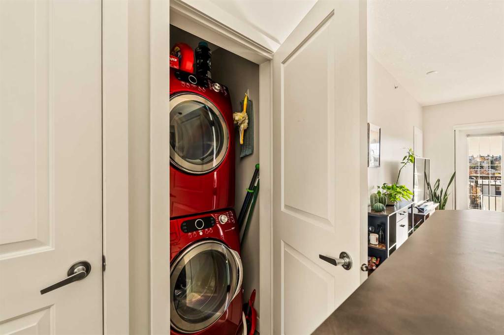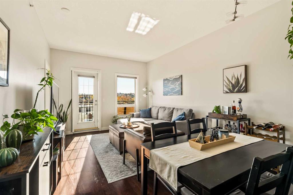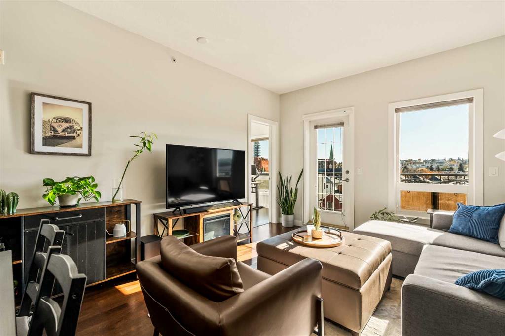 Top floor 1 bedroom plus den condo with bright south exposure and beautiful views in a pet-friendly building! Perfectly situated just a quick 4-minute walk to the Sunalta LRT Station and only minutes to trendy 17th Avenue, downtown, and the river pathways. A sunlit breezeway overlooking the courtyard leads you to your door, where you’ll be welcomed by an abundance of natural light and impressive 9’ ceilings. The well-designed kitchen features a centre island with raised eating bar, stainless steel stove and microwave, and a convenient wall cabinet for extra pantry storage. Adjacent to the kitchen, the dining area offers plenty of space to host family and friends for dinner. The open-concept living room is bathed in sunshine from the south-facing windows and flows effortlessly to the large balcony, creating a seamless indoor/outdoor lifestyle. Enjoy your morning coffee or evening barbeques while soaking in the beautiful views from this fantastic outdoor space. The primary bedroom is a peaceful retreat, complete with a cooling ceiling fan and ample room for a king-sized bed. A versatile den—accessible from both the bedroom and living room—makes an ideal bright office or study area. The stylish 4-piece bathroom features a modern vessel sink and an additional wall cabinet for bonus storage. Enjoy the convenience of in-suite laundry with full-sized washer and dryer, plus titled underground parking to keep your vehicle safe from the elements while you explore this vibrant community. Outdoor enthusiasts and commuters alike will love being steps from the LRT station and river pathways, making it easy to balance city life with outdoor enjoyment. An exceptional top-floor condo in a well-managed, pet-friendly complex—offering unbeatable value and location in the heart of the inner city!