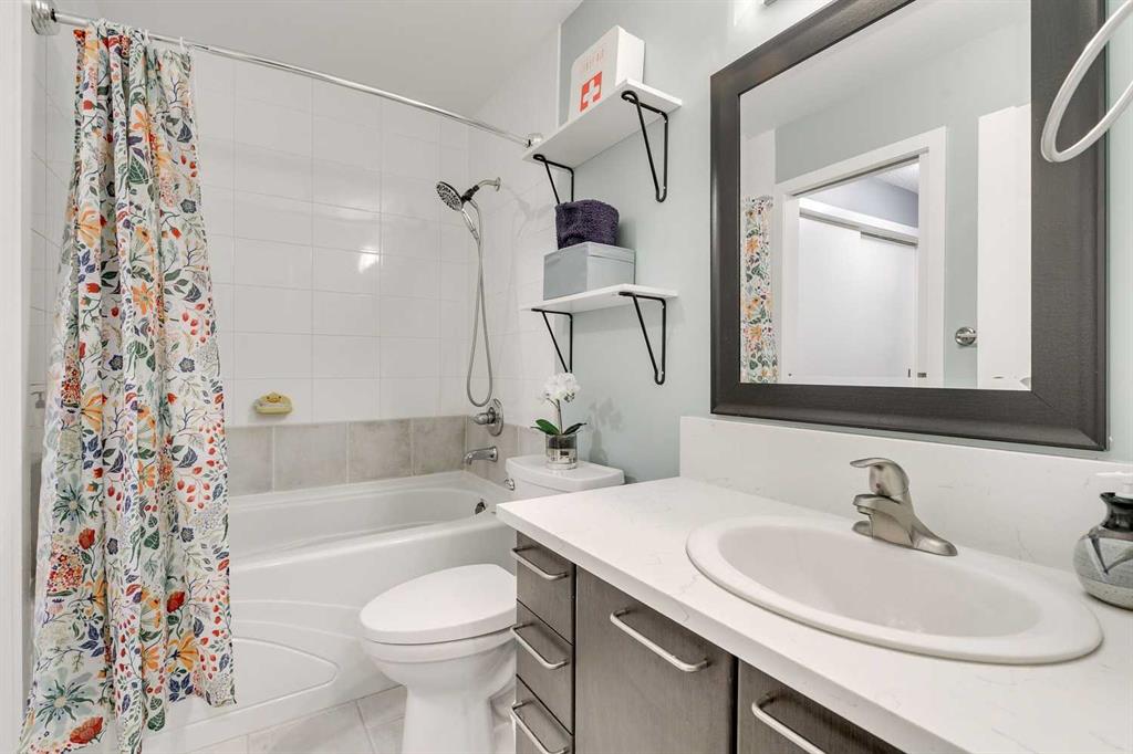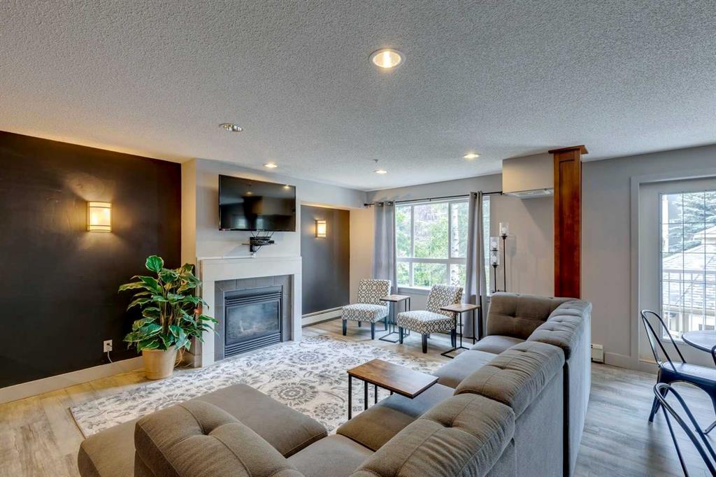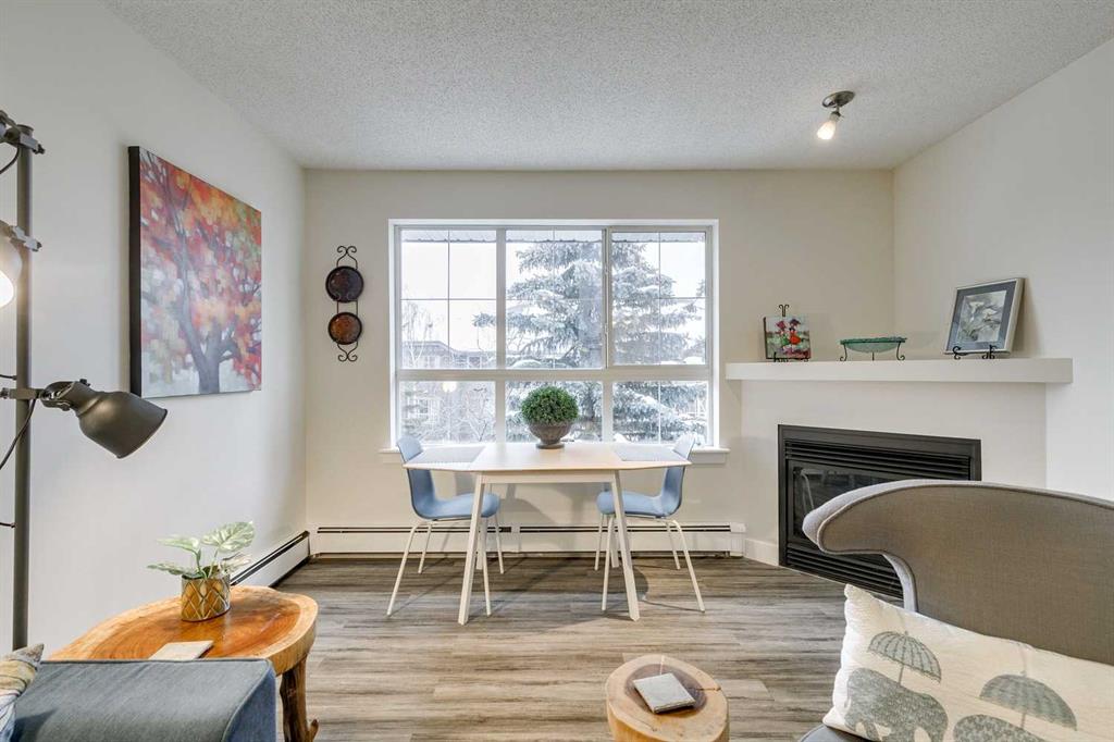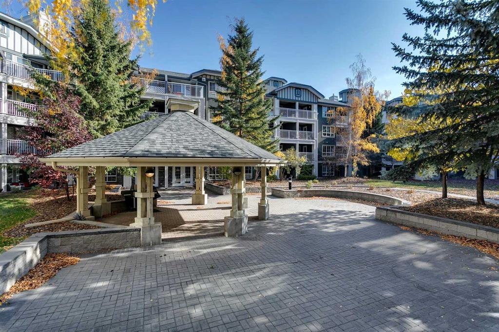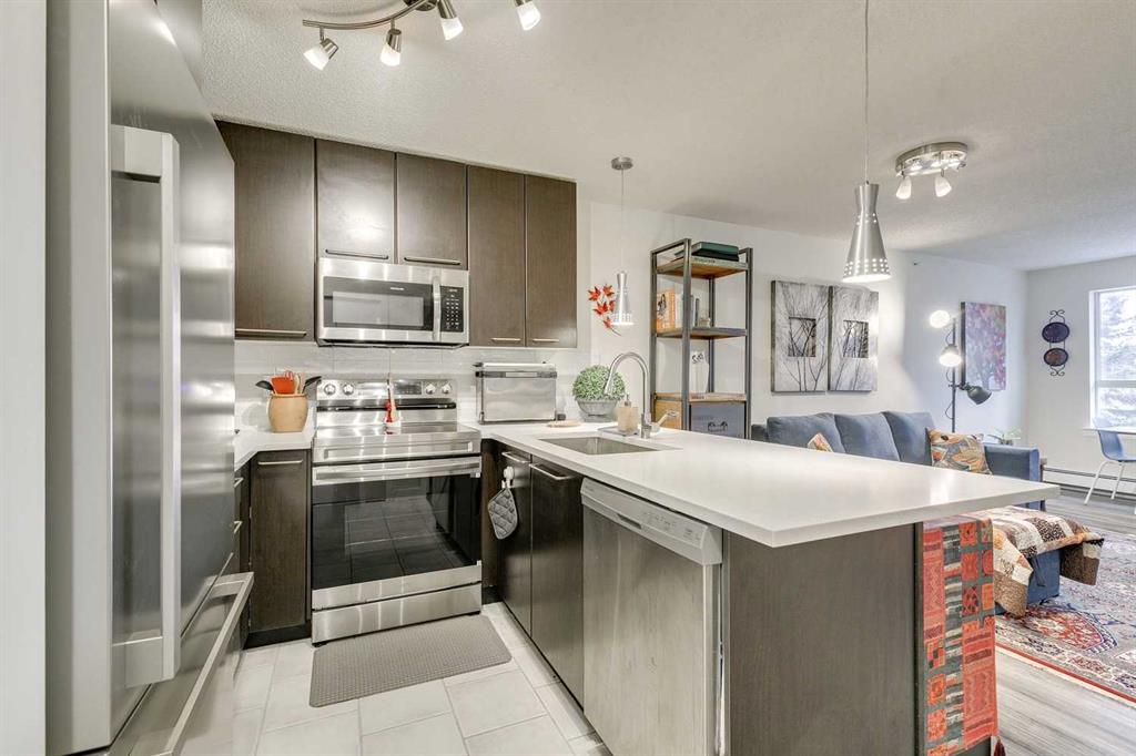 Tranquil top floor unit facing mature trees will help all your dreams come true in this 1-bedroom residence, ideally positioned in the heart of Lincoln Park, just steps from Mount Royal University & amenities. Whether you’re a discerning student, faculty member, or strategic investor, this sanctuary offers an unmatched lifestyle & opportunity. Thoughtfully updated, the home features a super functional kitchen with new fridge, stove, washer & dryer. Culinary enthusiasts will appreciate the gourmet kitchen, boasting cabinetry to the ceiling, and an impressive 8-foot quartz breakfast bar. Step outside onto the private 10' x 8' covered patio, an idyllic setting for your morning coffee or evening grilling with convenient gas BBQ hookup. Open-concept layout is both functional and inviting, enhanced by a dedicated den/office that truly has enough space to use for function. A charming corner gas fireplace anchors the living space, complemented by luxury vinyl plank flooring for a contemporary finish. The bedroom is a serene retreat, complete with plush carpeting, a ceiling fan, a generous double walk-in closet, and access to the beautifully updated 4-piece cheater ensuite with new tower shelf, curved shower rod, and a quartz vanity with elevated fixtures. Titled underground parking stall accompanies the unit—an invaluable feature in this sought-after building. You can also offer your guests underground visitor parking for their convenience. Residents of this impeccably maintained, pet-friendly building enjoy premium amenities, including a fully equipped fitness centre, a party room, and two guest suites for company so they can visit in comfort. Additional perks include secure storage locker, multiple bike storage rooms, and TELUS PureFibre connectivity for seamless, high-speed internet throughout. More than just a home, this exceptional property offers a refined, turnkey lifestyle in one of Calgary’s most desirable southwest communities.