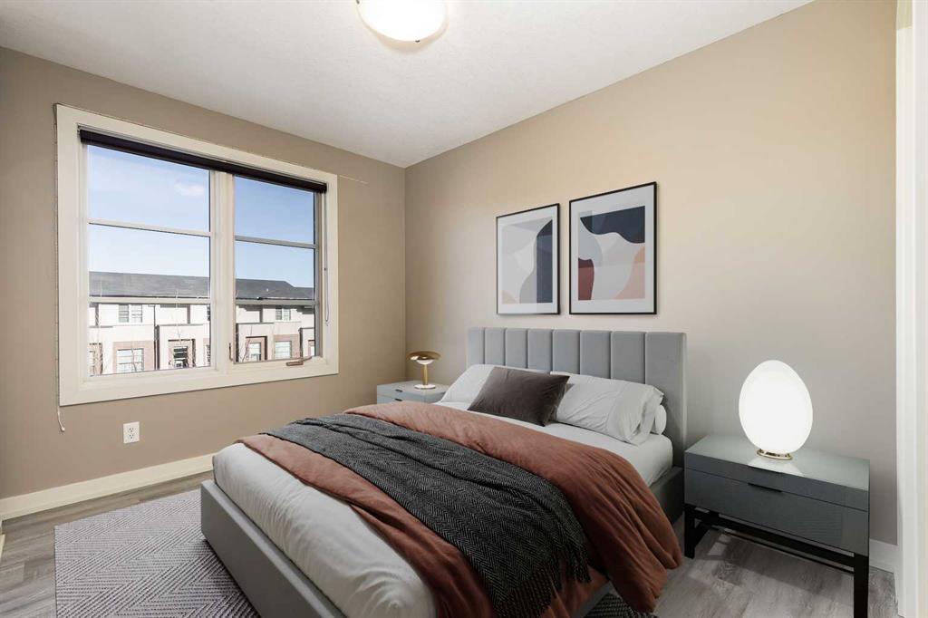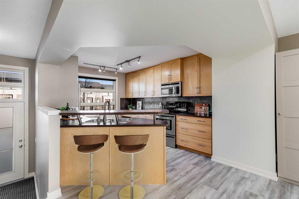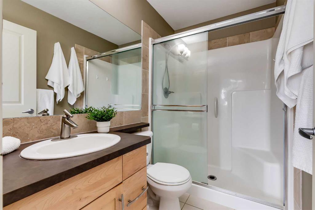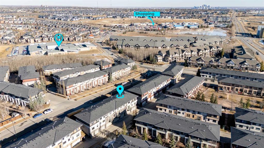 Located in the sought-after community of Aspen Hills, this well-maintained two-storey townhouse offers over 1,400 sq ft of developed living space with a functional layout and thoughtful details throughout. Three bedrooms, two and a half bathrooms, and a double attached garage provide a practical setup suited to both families and professionals. The main level is finished with durable luxury vinyl plank flooring and designed for everyday living, featuring an open-concept kitchen, dining, and living area that feels bright and welcoming thanks to large windows and a desirable south-facing exposure. The kitchen is equipped with stainless steel appliances, generous cupboard and counter space, and an eating bar ideal for casual meals. The dining area flows naturally into the living room, where patio doors open onto an unobstructed, south-facing balcony that brings in abundant natural light and offers a comfortable outdoor extension of the living space. In addition to the upper balcony, the home features a private front patio at the main entrance, complete with a BBQ gas line and space for a bistro table, perfect for morning coffee or evening use. A convenient two-piece powder room completes the main floor. Upstairs, the primary bedroom serves as a comfortable retreat, also benefiting from sunny south exposure, and includes a walk-in closet and a private three-piece ensuite with an oversized shower. Two additional bedrooms share a four-piece bathroom, offering flexibility for guests, children, or a home office. The lower level includes laundry, additional storage, and direct access to the double attached garage. Street parking is available directly in front of the home, providing a rare detached-home feel for a townhouse and added convenience for visitors. Pets are permitted with board approval. Set in a prime west Calgary location, this home is within a ten-minute walk to Aspen Landing, with shops, restaurants, and everyday services close at hand. The area is well served by schools including Guardian Angel School, Calgary Academy, Rundle College, Ernest Manning, and Ambrose University, along with nearby amenities such as the West Side Rec Centre and WinSport. Parks, playgrounds, and pathway systems are nearby, while easy access to 17th Avenue, Stoney Trail, and the 69th Street LRT station makes commuting straightforward, with downtown Calgary reachable in approximately 20 minutes. Proximity to major routes also allows for quick access to the mountains. Take advantage of your opportunity to see this incredible property in person, book your showing today! Be sure to check out the floor plans and 3D tour for a closer look before your visit.