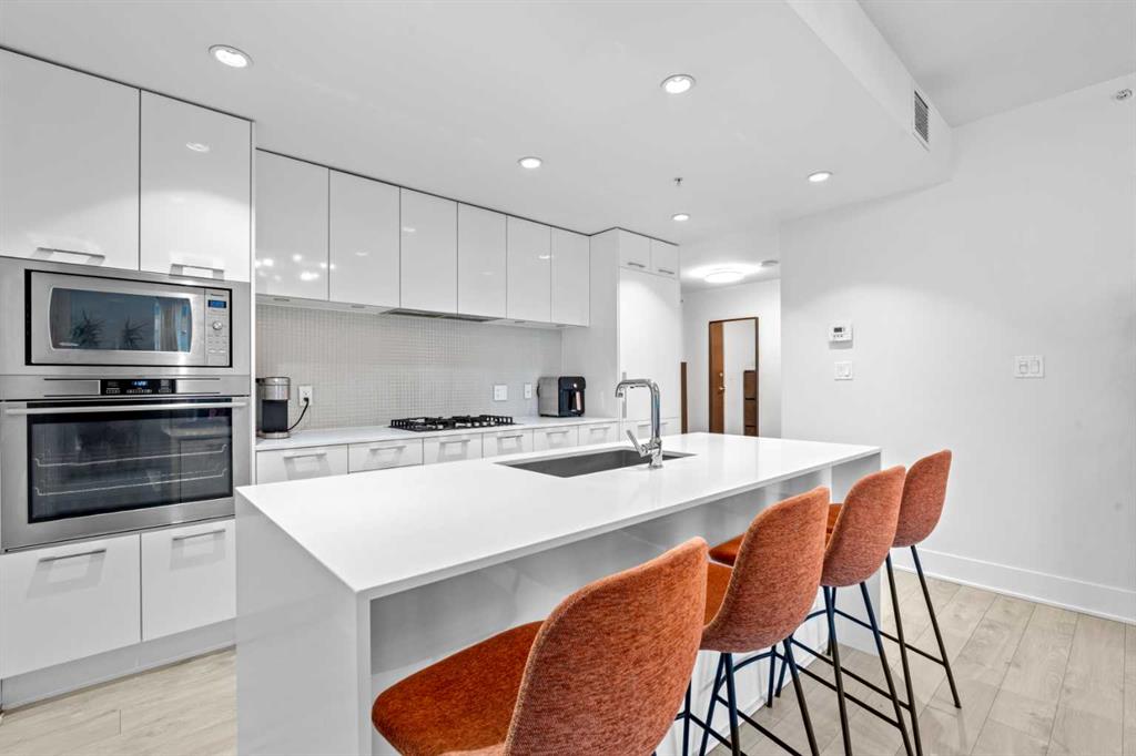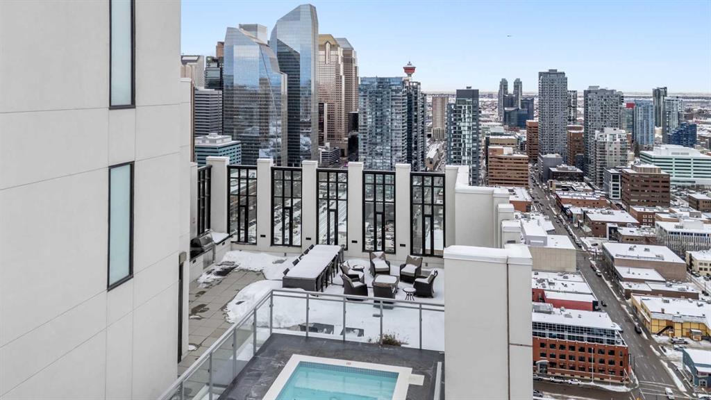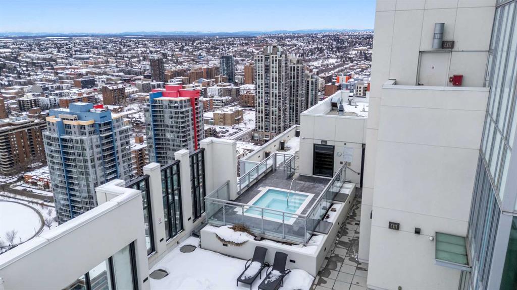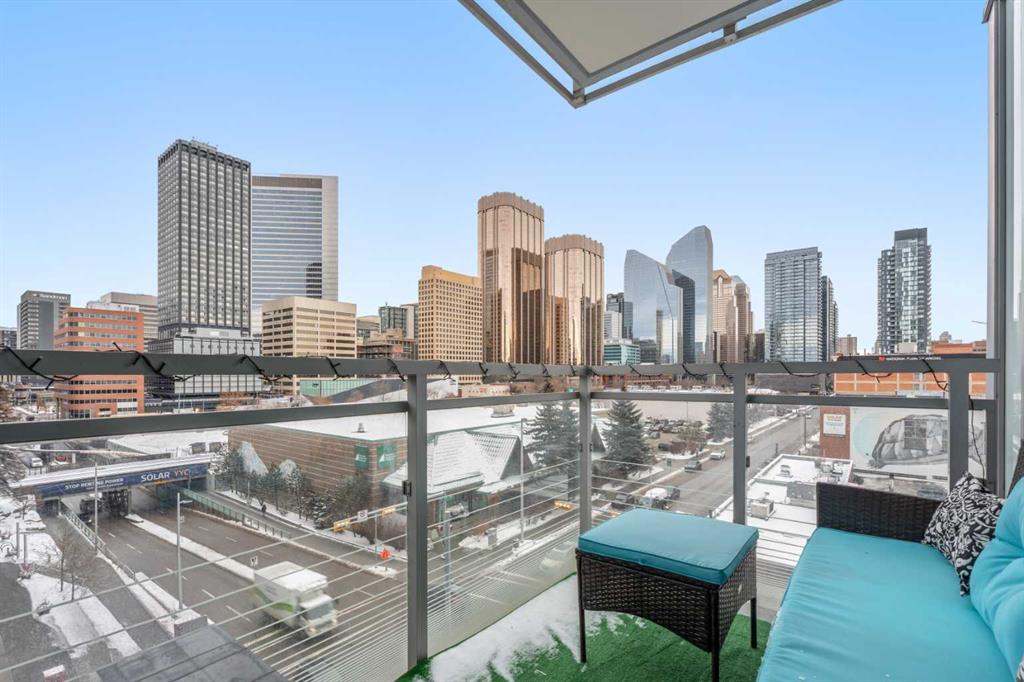 Welcome to Residence 506 at the iconic Mark on 10th, where elevated urban living meets resort-style sophistication in the heart of Calgary’s Beltline. This rare, nearly 900sqft corner residence features 2 bedrooms, 2 bathrooms, and a full den, offering a modern split-bedroom layout wrapped in floor-to-ceiling glass that floods the home with natural light from two exposures. Designed for both comfort and privacy, the bedrooms sit on opposite sides of the suite. The central living space features bright city views and direct access to a private balcony overlooking the downtown skyline. The upscale kitchen blends functionality with modern design, showcasing integrated built-in appliances, a gas cooktop, pantry-style cabinetry, and a generous island perfect for entertaining. A bright, glass-enclosed den serves as an ideal workspace, surrounded by skyline views for an inspiring work-from-home environment. Additional luxuries include one titled heated underground parking stall, an assigned storage locker, and access to some of the most impressive amenities in the city. Mark on 10th offers a full-time concierge, a tranquil third-floor garden terrace, a state-of-the-art fitness centre, cedar sauna and steam room, a guest suite, and a stunning two-storey rooftop lounge with entertainment areas, workstations, pool table, and a breathtaking rooftop hot tub with panoramic views extending to the Rocky Mountains. Set in one of Calgary’s most walkable neighbourhoods, you are steps from the city’s best dining, cafés, shops, and conveniences including Cactus Club, Safeway, Goodlife Fitness, CO-OP Midtown, 17th Avenue retail district, the Downtown West–Kerby LRT station, the +15 network, and Shaw Millennium Park. This is the ultimate Beltline address for those seeking luxury, convenience, and an amenity-rich lifestyle in a landmark building.
