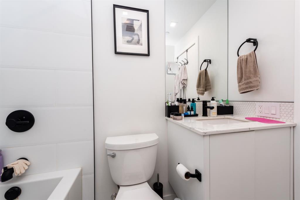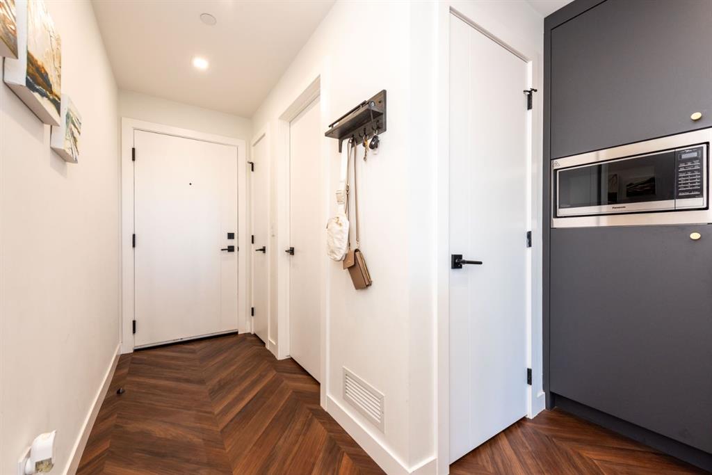 Experience elevated living in this Truman-built, concrete construction condo in sought-after West Springs. This 1-bedroom residence offers peace and quiet with superior soundproofing, allowing you to fully enjoy the spacious 547 sq ft open-concept design. Floor-to-ceiling glass in the living room, 9’ ceilings, and LED pot lighting create a bright, modern atmosphere. The chef-inspired kitchen features quartz countertops, a gas cooktop, wall oven, and custom soft-close cabinetry. Retreat to the bedroom with its expansive walk-in closet, and step out onto your private balcony with sweeping views. With central air conditioning, high-end finishes, and a location just minutes from shopping, dining, and transit, this home blends comfort, style, and convenience. Perfect for professionals, downsizers, or investors seeking long-term value.