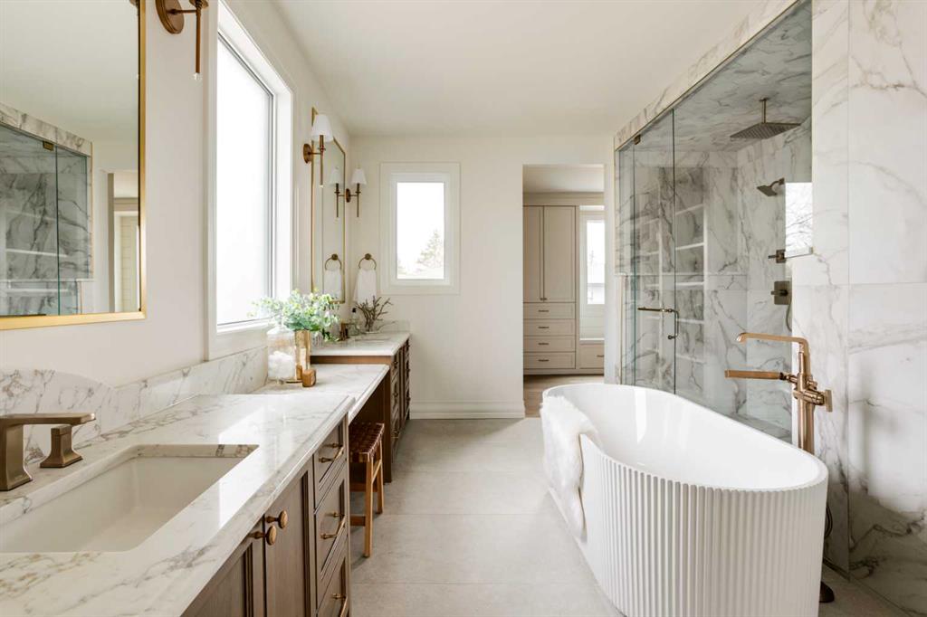 Cedar Rock Homes presents a brand new luxury family residence tucked away on a quiet cul-de-sac in the highly sought-after community of Lakeview. This exceptional property offers a prime location, rated 10/10, with exquisite features and finishings, and will be ready for occupancy in early 2026. The home spans 3,426 sq. ft. above grade with a total of 4,939 sq. ft. of developed living space, featuring 4 bedrooms upstairs, 1 bedroom down, and 5 bathrooms in total. The sunny west-facing backyard includes a rear-attached triple garage connected to the home through a breezeway and spacious mudroom. Interior designed by Lori Sellmer, the interior boasts custom site-built cabinetry with maple dovetail drawers throughout. The main floor showcases a dining/flex room, private office, large pantry, dining area, living room with a gas fireplace, and sliding doors that open to a central courtyard complete with an exterior gas fireplace. The chef’s kitchen is equipped with a premium Miele appliance package, butler’s pantry with tall freezer, oversized island, and custom hood fan. Upstairs, the primary retreat impresses with a vaulted barrel ceiling accented by a white oak backwall panel, an oversized curbless steam shower, a freestanding tub, and heated floor. The lower level, with 10 ft ceilings, offers a spacious rec room with wet bar, gym, fifth bedroom, storage, and full bathroom. A detailed list of features, & specifications.