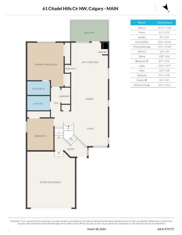 | Eat in Kitchen | 13`0" x 6`11" | Main |