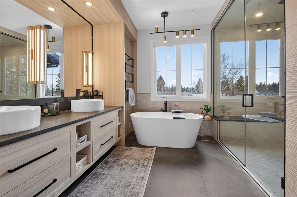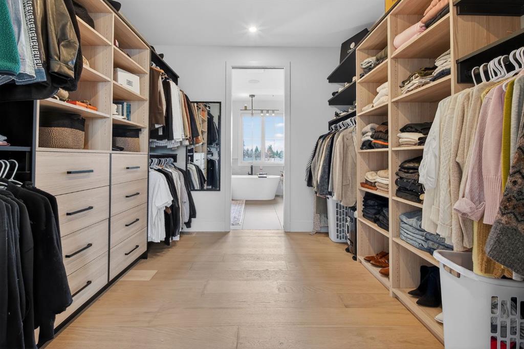 This exceptional luxury home offers a rare opportunity to own a residence in the highly sought-after community of Lakeview. Every detail has been thoughtfully curated—from the impressive grand foyer to the elevated finishes carried throughout more than 5,000 sq. ft. of developed living space. The main level is designed with both everyday living and entertaining in mind, featuring an open-concept layout that creates seamless flow between the principal rooms. Rich hardwood floors, flat-painted and detailed tray and vaulted ceilings, glass and metal doors, and built-in speakers with eight audio zones all contribute to the home’s refined, modern feel. The spacious living room connects effortlessly to the formal dining area and a beautifully appointed chef’s kitchen, creating an ideal setting for everything from intimate family evenings to large-scale entertaining. At the heart of the home, the kitchen is a true showpiece, complete with a premium JennAir appliance package, custom cabinetry, a large 10-foot island with storage, reverse osmosis water filtration, and a built-in wine display. A generously sized butler’s pantry adds even more functional storage and prep space, making the home as practical as it is elegant. Upstairs, the primary suite is a private retreat, highlighted by vaulted ceilings, a coffee station, and its own balcony. The spa-inspired ensuite is designed for relaxation, featuring an oversized steam shower and a deep soaker tub. Two additional upstairs bedrooms each include their own ensuite bathrooms, offering both comfort and privacy for family or guests. The fully finished basement expands the home’s versatility with an impressive collection of lifestyle spaces. Highlights include a striking wet bar with island seating, a large media and flex room, a dedicated gym, two additional bedrooms, a custom shower, and an extra washer and dryer set—perfect for guests, extended family, or multi-functional living. This home also embraces modern convenience through integrated smart home technology, allowing you to control lighting, temperature, security, and music directly from your smartphone. Comfort, efficiency, and long-term performance are central to the design, with features such as two high-efficiency furnaces, two air conditioning units, in-floor heating, extensive closed-cell spray foam insulation throughout the entire home including the basement, upgraded one-touch dimmer switches, solid core doors, and a built-in security system with cameras. The oversized heated double garage offers ample room for vehicles and additional storage, and is complete with an electric vehicle charging station. Set on a quiet street near North Glenmore Park, this location offers an outstanding balance of tranquility and convenience. Surrounded by the natural beauty of the Glenmore Reservoir and Lakeview Golf Course, the home is also just a short commute to downtown Calgary, with easy access to the mountains, excellent schools, parks, shopping, the Lakeview off-leash area,