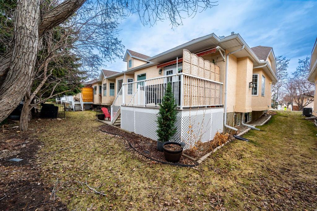 Welcome to this immaculate and beautifully maintained bungalow-style villa in the sought-after community of Coach Hill, offering the perfect blend of comfort, space, and easy living. The main floor features a bright, open-concept design with a spacious kitchen, living room with ireplace, and dining area that flow seamlessly together creating an inviting space for both everyday living and entertaining. Large windows fill the home with natural light, enhancing the warm and welcoming feel throughout. The generously sized primary bedroom offers a peaceful retreat, complete with a full ensuite and a large walk in closet. You’ll also appreciate the convenience of main floor laundry with a sink, along with a cozy breakfast nook, perfect for enjoying your morning coffee. The fully finished basement expands your living space with a large recreation room, two large additional bedrooms, and a full bathroom ideal for guests, hobbies, or family visits. Two fireplaces, one in the living room and one in the basement add comfort and charm to both levels of the home. Step outside to your deck overlooking a beautifully landscaped yard with mature trees and gardens, offering a quiet and relaxing outdoor space to enjoy throughout the seasons. This well-kept villa provides a spacious yet manageable lifestyle in a peaceful, established community, perfect for those looking to simplify without sacrificing comfort.