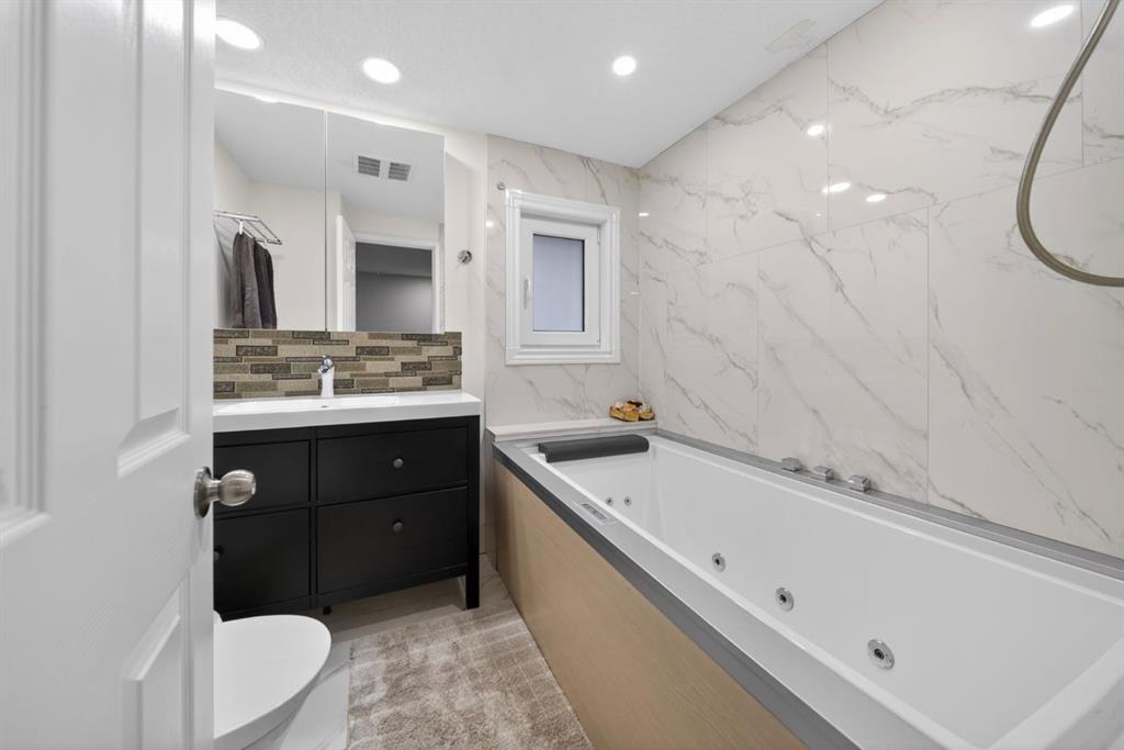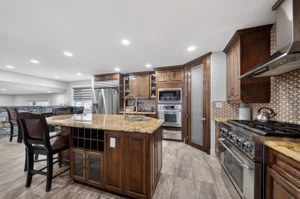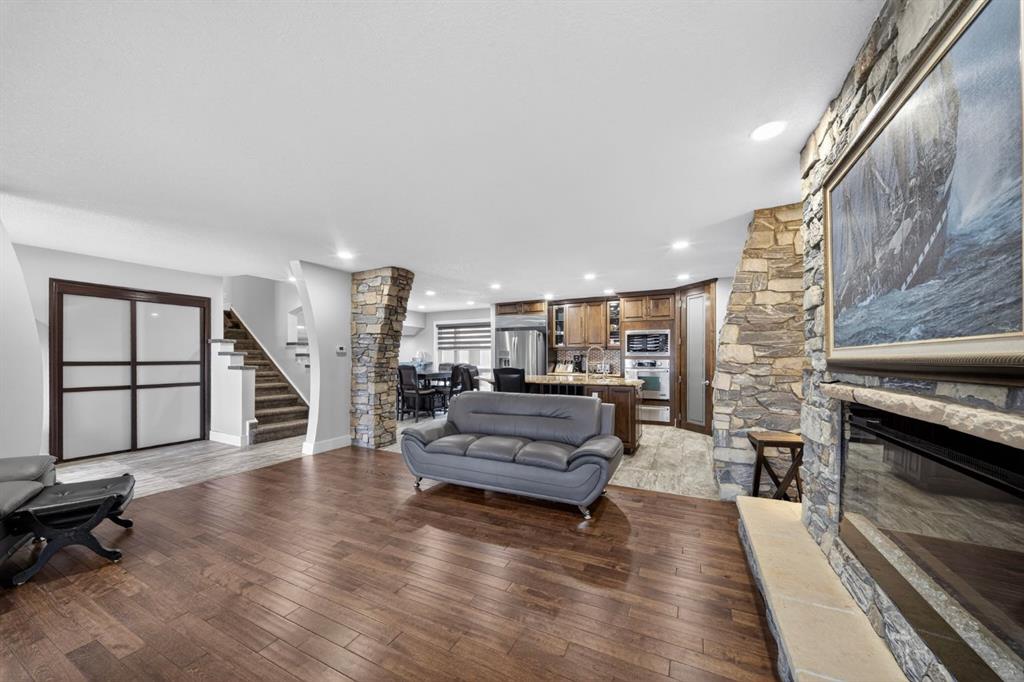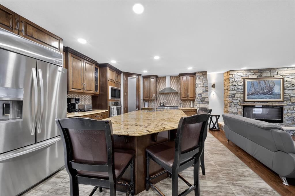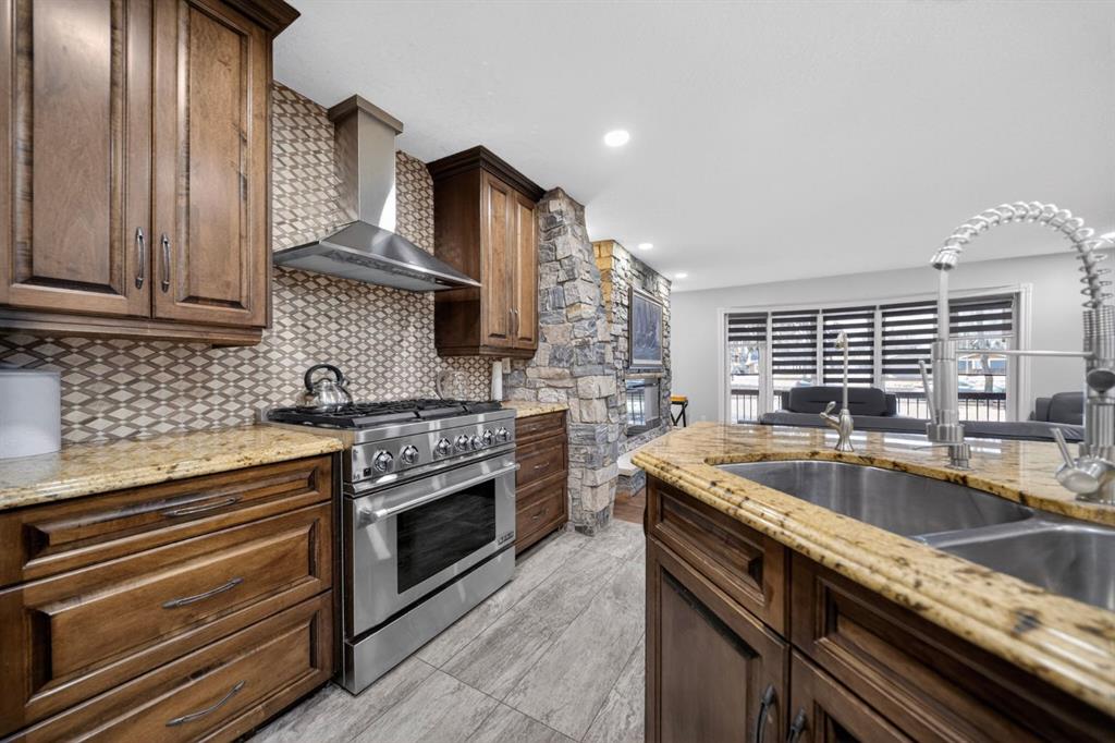 ** OPEN HOUSE SAT JAN 31 & SUN FEB 1, 12-5PM ** Welcome to this stunning 2-storey split home in the heart of Lake Bonavista, offering over 2,800 sq ft of beautifully finished living space on a prime corner lot with an oversized garage, RV parking, and ample additional parking. Thoughtfully redesigned, this home delivers an exceptional open-concept layout ideal for both everyday living and entertaining. The impressive chef’s kitchen is the centerpiece, featuring a massive granite island, abundant cabinetry and counter space, extensive stonework, and steel appliances. Main-floor laundry, with an additional washer/dryer rough-in, adds convenience and flexibility. A warm and inviting family room with electric fireplace at the front of the home. Additionally, a second living space with another fireplace that opens out the sliding doors to the backyard. The primary retreat is a true sanctuary with a custom walk-in closet with automatic LED lighting, remote-controlled window coverings, and a spa-inspired ensuite highlighted by an infinity-style jetted tub. Two additional bedrooms and a full bathroom complete the upstairs. The fully developed basement offers a spacious recreation and games area, plus a second kitchen/wet bar complete with stove, hood fan, double stainless steel sink, and space for a dishwasher, perfect for entertaining or extended family living. Extensive upgrades include sound deadening triple-pane windows, two high-efficiency furnaces, two central A/C units, newer hot water tank and water softener, upgraded plumbing, electrical panel and wiring, spray foam insulation throughout the home and garage, and 220-volt wiring in the garage. Additional exterior insulation beneath the stucco ensures exceptional energy efficiency. Enjoy outdoor living with a covered patio, greenhouse, and storage shed, all within a beautifully landscaped yard. A separate side entrance offers excellent future suite potential (subject to city approvals). Located close to lake access, schools, parks, golf, shopping, and transit, this exceptional home delivers the ultimate Lake Bonavista lifestyle.