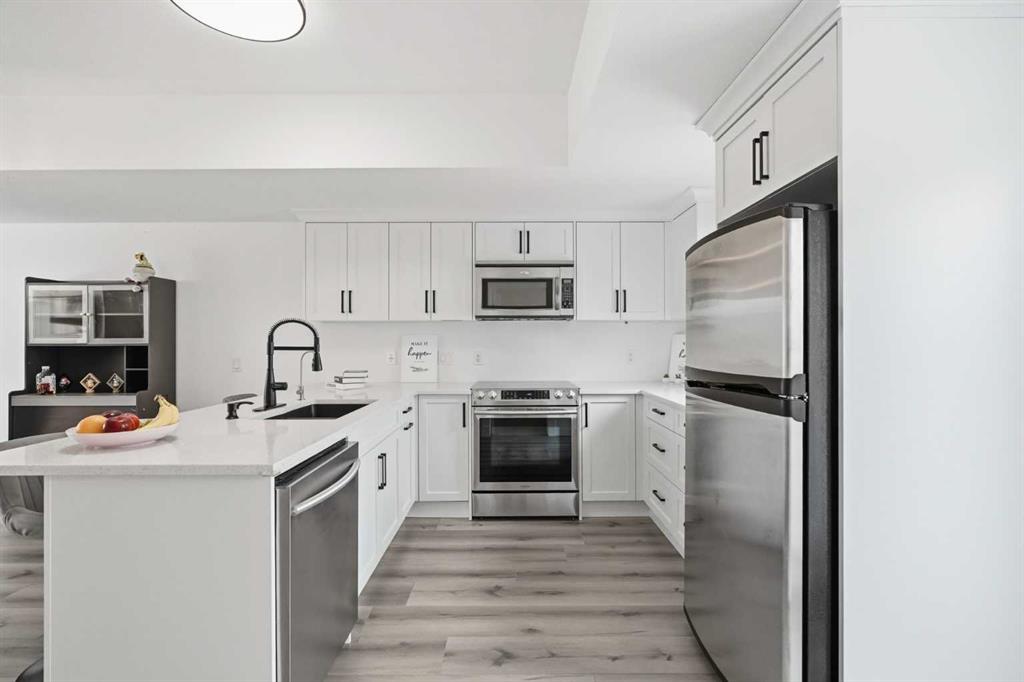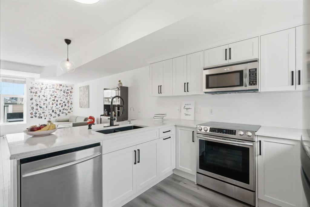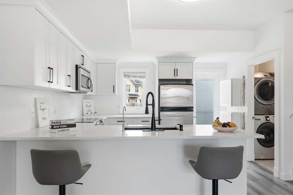 WELCOME TO WEST SPRINGS! This is the one you’ve been waiting for. Unobstructed, breathtaking WEST-FACING MOUNTAIN VIEWS in one of Calgary’s most elite and highly sought-after neighborhoods! Step inside this fully transformed 1,151 sqft masterpiece! From the moment you walk in, you are greeted by soaring 9-foot ceilings that span across EVERY single level, making the entire space feel incredibly expansive and flooded with natural evening light. The house has been meticulously upgraded with brand-new, luxury vinyl flooring (2024) flowing seamlessly throughout, complemented by a stunning, newly redesigned staircase (2024). The kitchen is an absolute showstopper. Completely overhauled in 2024 with brand-new countertops and custom cabinetry featuring gorgeous, modern white ash wood finishes. It’s fully equipped with a brand-new sink featuring a built-in water filter (2024) and striking, modernized light fixtures (2023). This is where you entertain. This is where you close the deal on your lifestyle. Upstairs is a total game-changer. You’ll find two massively oversized bedrooms that completely dwarf typical townhouse layouts. Even better? Both the primary and secondary bedrooms both has ensuite bathroom making it the ultimate setup for roommates, a massive home office, or a luxury guest suite, both boasting vanity upgrades completed in 2024. We’re talking fully turn-key, zero-stress living. The heavy lifting has already been done for you: • Brand-new window blinds and covers (2025) • New Ecobee Thermostat (2025) • New water softener (2024) • New Garage Slat Wall Panel (2025) Properties with this level of pristine renovation, at this price point, with clear mountain views in West Springs DO NOT LAST. It is ready for your buyers to move in and start living the dream.