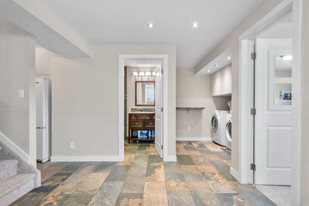 Welcome to this beautifully maintained 4-level split in the sought-after community of Hidden Valley, offering space, functionality, and thoughtful updates throughout. Ideally located on a quiet street, this property is just minutes from parks and playgrounds and within walking distance to both elementary and junior high schools. From the moment you arrive, you’ll appreciate the charming curb appeal and welcoming presence. Inside, a spacious front entry with durable slate tile flooring sets the tone, leading into the bright and airy main living space highlighted by vaulted ceilings and rich hardwood flooring. The main floor offers incredible versatility, with a large bay window flooding the front dining area with natural light, perfect as a formal dining space or secondary living room. Adjacent to the kitchen, a cozy seating area provides the option for a dining setup, depending on your lifestyle. The kitchen is both functional and inviting, featuring white cabinetry, ample cupboard and counter space, a corner pantry, and stainless steel appliances, ideal for everyday living and entertaining alike. The lower level boasts a generous family room with direct access to the backyard, creating the perfect space for entertaining, relaxing, or spending time with family. Upstairs, you’ll find three well-sized bedrooms with newer carpet throughout. The primary retreat offers a spacious layout, complete with a walk-in closet and a 3-piece ensuite. The secondary bedrooms are thoughtfully styled with feature walls, including modern wainscotting and designer wallpaper touches. The basement level adds even more flexibility with a fourth bedroom, a 3-piece bathroom, laundry area, and additional flex space, perfect for a home gym, storage, or hobby area. This level also includes an additional fridge, and access to extensive crawl space storage. Significant updates include a hail-resistant roof, new siding, a newer furnace and hot water tank (2015), central air conditioning, updated carpet, modern baseboards, a new front door, and more. Step outside to enjoy the spacious backyard, complete with a large deck, fresh grass, and a rear parking pad with alley access. This well-cared-for home in a family friendly community is a fantastic opportunity that checks all the boxes.