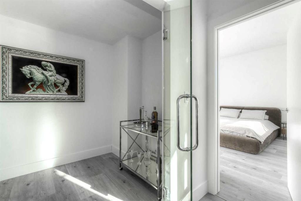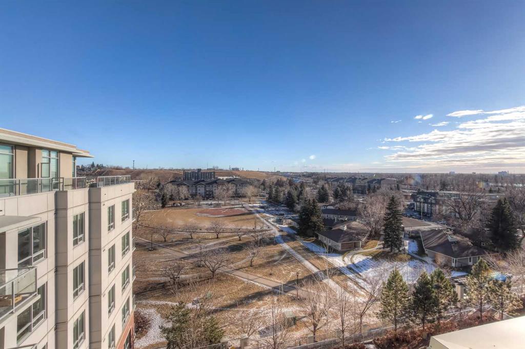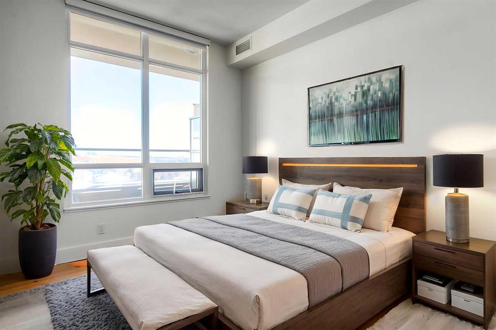 From the moment you walk in, this luxury penthouse in Bridgeland Crossings II will take your breath away, showcasing unobstructed east-facing views of Tom Campbell Hill. One of the largest homes in the complex, this top-floor concrete residence features two bedrooms, three bathrooms, and a den has undergone an extensive, high-end renovation with premium finishes and attention to every detail. The thoughtfully designed open-concept floor plan is ideal for modern living and entertaining, enhanced by soaring 10 feet ceilings, expansive windows, luxury laminate flooring, air conditioning, and solar-powered electronic blinds throughout. Natural light fills the living and dining areas, seamlessly connecting to the oversized balcony—an outdoor retreat complete with a gas line for barbecuing and the perfect spot to enjoy morning coffee or evening sunsets. At the heart of the home is a chef-inspired kitchen featuring custom cabinetry, quartz countertops, and a book matched waterfall Calacatta Suprema brushed quartz island. The premium appliance package includes top-of-the-line Bosch Benchmark Series appliances with an integrated panel-front refrigerator and dishwasher, a built-in microwave drawer, gas cooktop, and an LG 5.2 cu. ft. Black Stainless Steel WashTower. This intelligently designed layout offers two private bedroom suites positioned on opposite sides of the condo, each functional as a primary bedroom with its own ensuite. The main primary suite features a spacious walk-in closet with custom organizers and a luxurious four-piece ensuite appointed with premium satin brass Baril faucets and a Baril shower kit with a 10mm shower glass door. The second bedroom also enjoys its own ensuite bathroom, providing exceptional privacy and comfort. A third full bathroom is conveniently located for guests. Additionally, the den with glass doors provides a flexible space for a home office, study, or possible wine room. Both walk-in closets have been fully upgraded with custom storage solutions for optimal organization. This exceptional penthouse also includes two titled, side-by-side parking stalls (situated best in the complex) and a storage locker. Residents of Bridgeland Crossings II enjoy outstanding amenities, including two fully equipped fitness centers, a yoga studio, sports lounge/movie room, community gardens, an outdoor patio lounge with barbecues, dog wash station, guest suite, and bike storage. Located in one of Calgary’s most vibrant and sought-after communities, this home is steps from parks, pathways, trendy shops, cafés, and restaurants. Enjoy easy access to the Bow River Pathway System, Bridgeland C-Train Station, Murdoch Park, Calgary Zoo, Telus Spark, and the natural beauty of Tom Campbell Hill. This is more than a home—it’s a lifestyle. Don’t miss the opportunity to own this beautifully renovated, high-end penthouse and experience the very best of Bridgeland living.