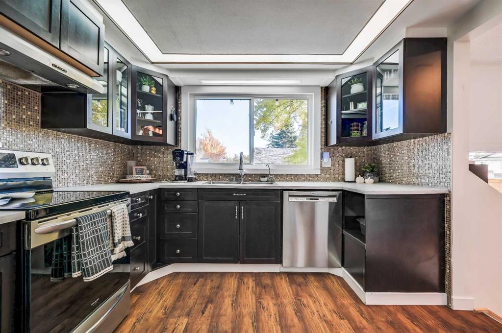 Welcome to this modern bungalow on an OVERSIZED PRIVATE BACKYARD/CORNER LOT on a tree lined street in Queensland - close to Schools, Shopping, Public Transit, Playgrounds and Parks. This home has been well cared for over the years, including a new roof (2013), attic & wall insulation (2016), windows/ siding/ doors (2016), garage door & opener (2013), hot water tank (2025), fridge (2019), stove (2021), and dishwasher (2021). The spacious 1200 sq ft main level features an updated kitchen with countertops/cupboards, tile work and newer stainless steel appliances, that is next to the sunny living room with upgraded flooring. The large master bedroom retreat has its own half bathroom while the other two bedrooms are a generous size and conveniently located next to the main floor full bathroom that has also been updated. The large sunny backyard is completed with a new fence, and has potential for RV parking, a double detached insulated garage and a massive (11'6"x7'3") insulated storage shed. This home has prime location near both Haultain Memorial School and Wilma Hansen school, dog parks, green space, and steps to pathways and river views.