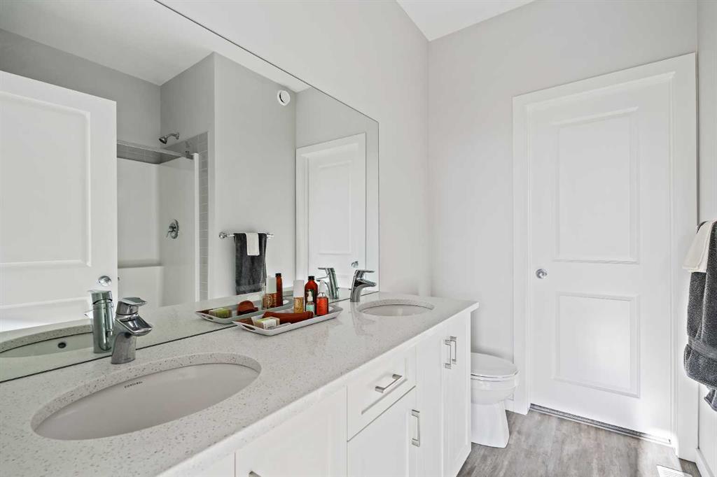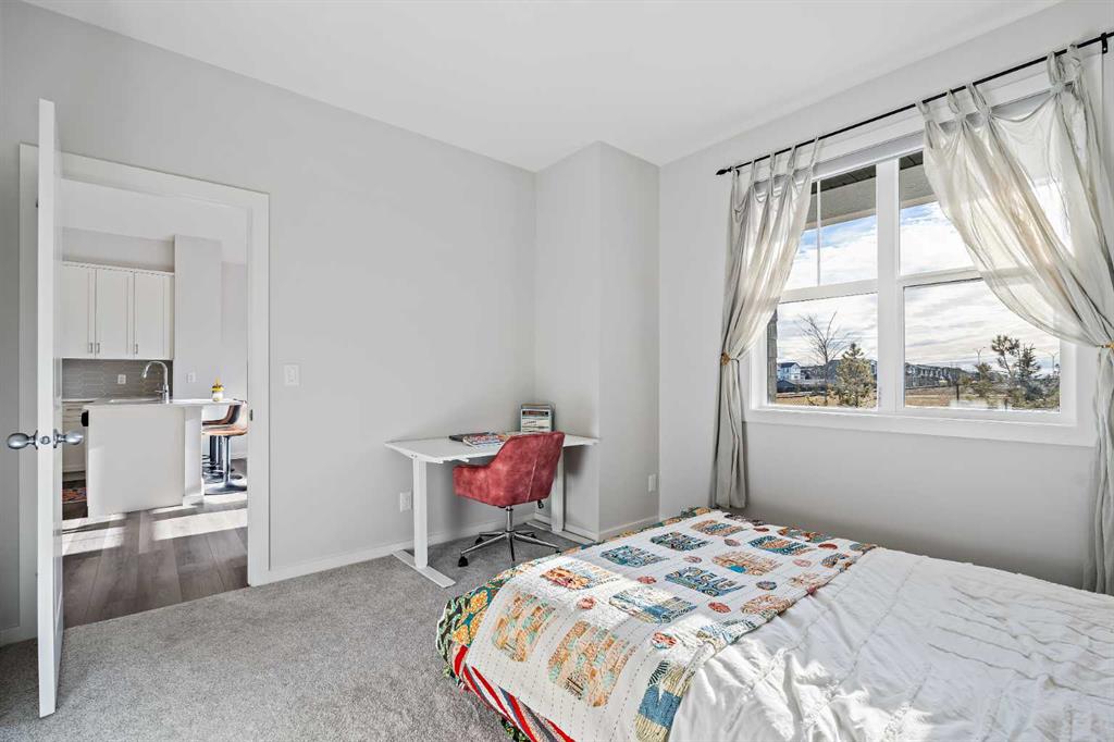 An exceptional opportunity to own a one-of-a-kind, maintenance-free townhouse overlooking green space in the vibrant community of Livingston. Offering nearly 1,000 sq. ft. of single-level living, this meticulously maintained home blends comfort, functionality, and timeless design. The grand main living area features resilient luxury vinyl plank flooring and a soaring vaulted ceiling spanning the living room and kitchen, creating a bright and airy atmosphere enhanced by large windows and South-facing exposure that flood the space with natural light. The living room is positioned at the front of the home, where expansive windows overlook the peaceful green space, providing a serene and private setting. The spacious kitchen showcases timeless white shaker cabinetry, stainless steel appliances, quartz countertops, a central peninsula island with a breakfast bar, a corner walk-in pantry, and abundant storage. There is ample room for a flexible dining area, making the space ideal for both everyday living and entertaining. Overlooking the living room, the kitchen layout is perfect for hosting or for those with young children. Completing the main level is a rear mudroom with direct access to the attached garage, a convenient 2-piece powder room, and a dedicated laundry room. The spacious primary bedroom is also located at the front of the home, offering additional green space views. It features a generous 4-piece ensuite with dual sinks, a walk-in shower, and a walk-in closet with upgraded shelving. The lower level awaits future development, offering excellent potential for a large recreation room, additional bedroom, bathroom, and storage space. An insulated attached garage completes the home, keeping your vehicle secure and clean year-round. This home is ideally situated with nearby shopping, restaurants, and cafes all within walking distance or a short drive.. Daily commuting is made easy with nearby public transit stops and quick access to Stoney Trail. Don’t miss this opportunity to own a fantastic, low-maintenance property in one of Calgary’s most desirable communities - Livingston.