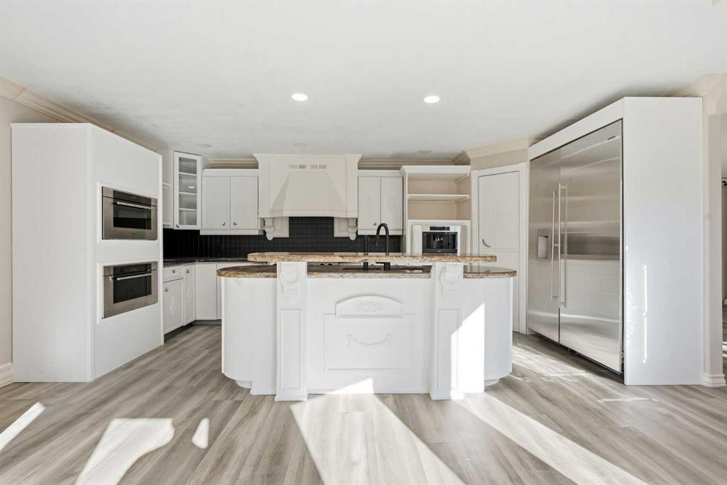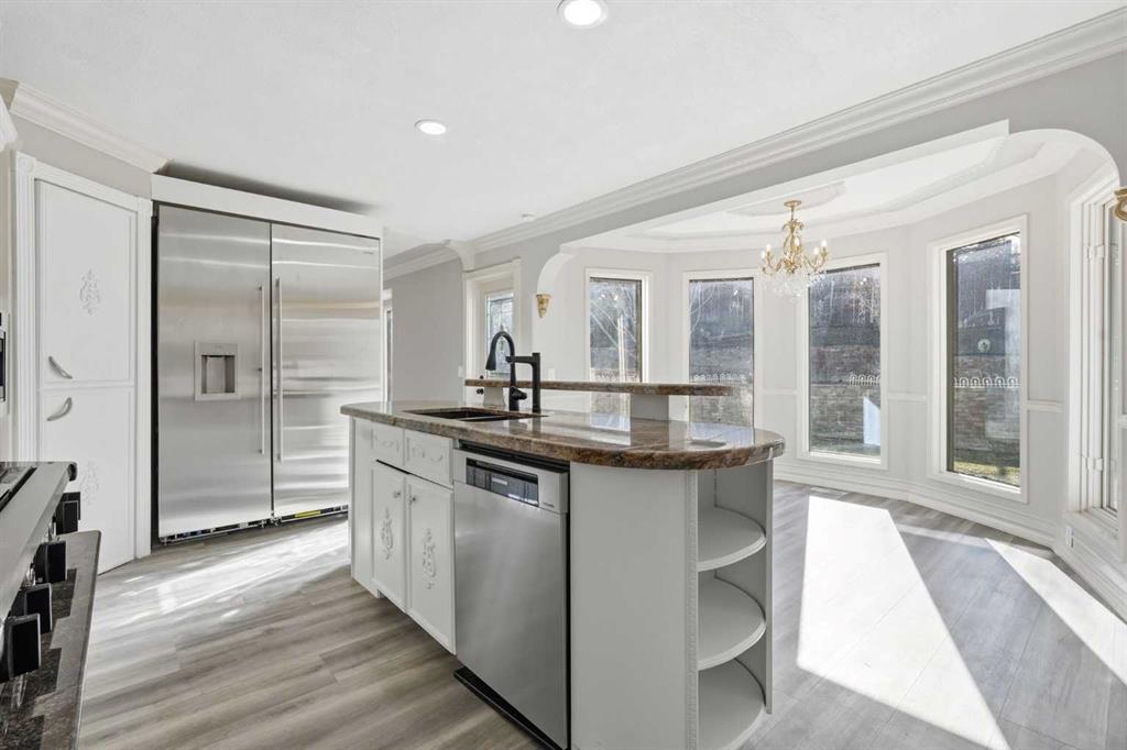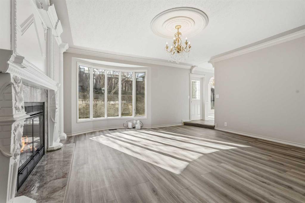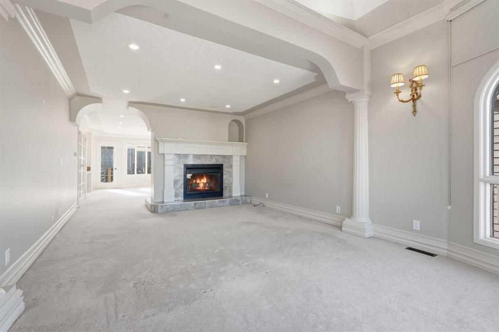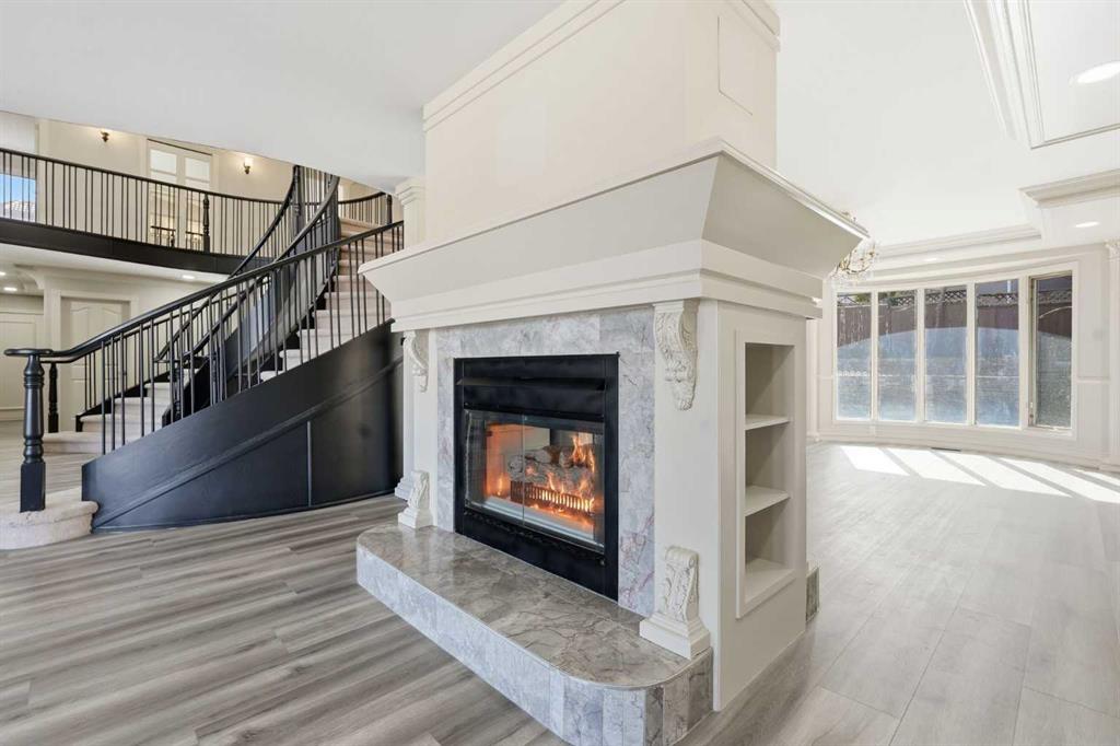 OPEN HOUSE SATURDAY, APRIL 25TH FROM 1-4 PM & SUNDAY, APRIL 26TH FROM 1-3 PM. Situated on a 69’x115’ lot in the established community of Patterson, this expansive 3 bedroom home offers nearly 5,800 sq ft of refined living space. Inside, the grand double staircase immediately commands attention, its sweeping curves, elegant black railings, and open to above design creating a dramatic first impression. The main floor features an abundance of well appointed living spaces. The formal living and dining rooms are anchored by an ornate double sided fireplace, while two large bay windows bathe the rooms in natural light. The kitchen is tastefully finished with white millwork cabinetry, granite countertops, new top of the line stainless steel appliances, and a striking black backsplash. A bay window breakfast nook and gold chandelier add warmth and elegance. Just off the kitchen, a spacious family room with a decorative feature fireplace provides an inviting place to gather. A 2 piece powder room and laundry room with new high-end washer and dryer, sink and storage complete the main level. Upstairs, a generous bonus room and three large bedrooms await, each offering walk in closets and private ensuite baths. The impressive primary retreat, complete with a private balcony, lives like a true oasis. Its expansive layout is anchored by a double sided fireplace that gracefully separates the space into two distinct, inviting spaces. The luxurious 5 piece ensuite includes dual sinks, an oversized jetted tub, a separate shower, and direct access to the walk in closet. The fully developed basement adds exceptional living space, highlighted by a theatre room with a starlight ceiling, full acoustical treatments, an automatic drop down acoustically transparent screen, and a state of the art 4K projector. Additionally, there is a comfortable family room plus a massive recreation area—ideal for a pool table with plenty of room for additional seating. The level also includes two well appointed 3 piece bathrooms, one featuring an oversized jetted tub. Other notable features include central air conditioning, a new humidifier and all Poly B has been removed from this residence. Outside, the large backyard with an upper deck and patio offers an excellent setting for outdoor entertaining, and parking is effortless with a triple attached garage. This impressive home is ideally located near scenic Edworthy Park, schools, shopping, public transit, and provides easy access to Bow and Sarcee Trails.