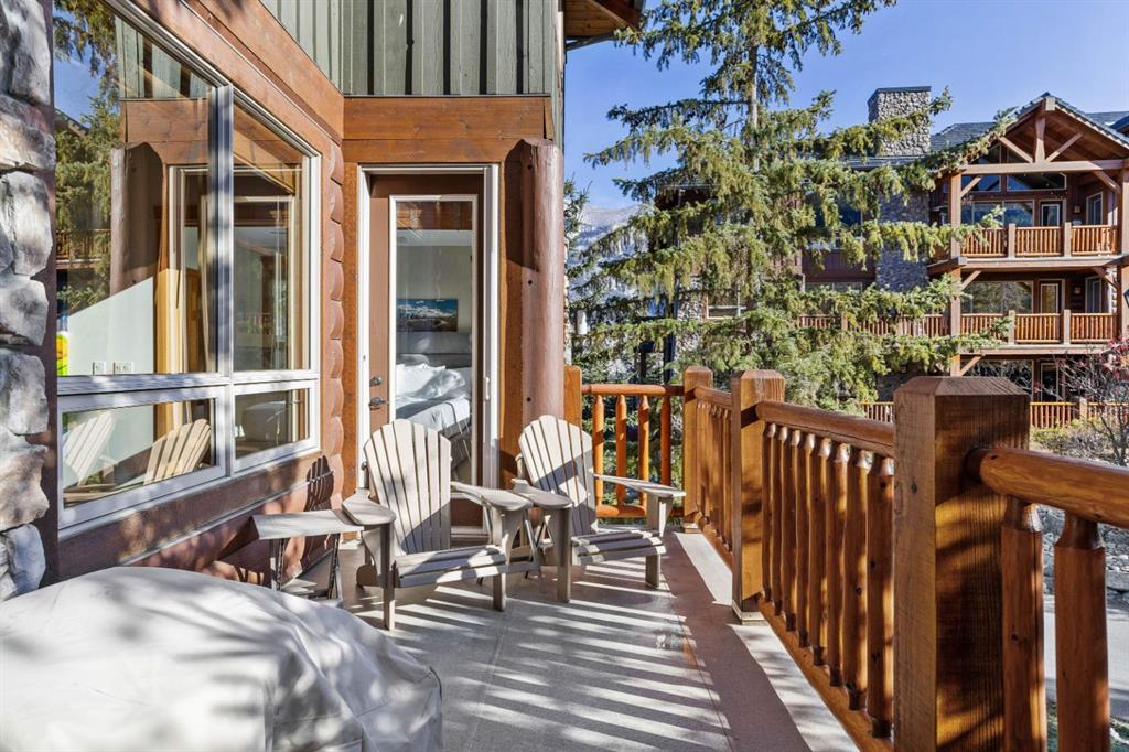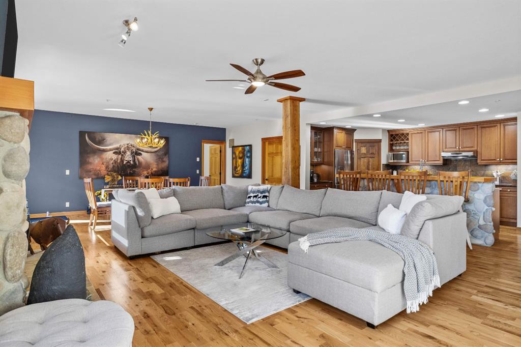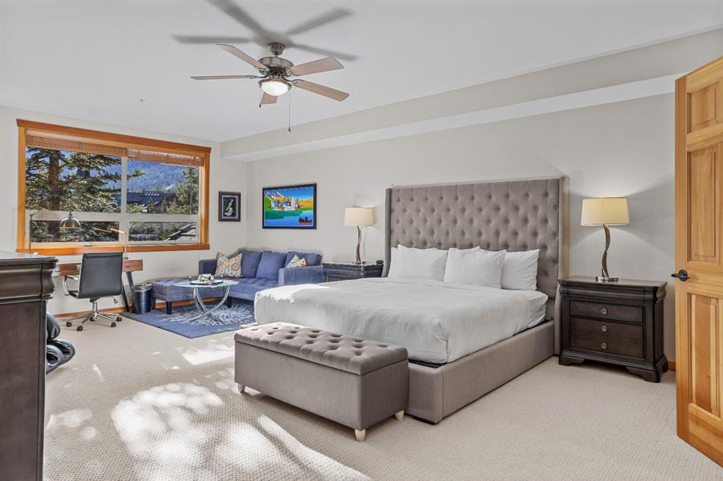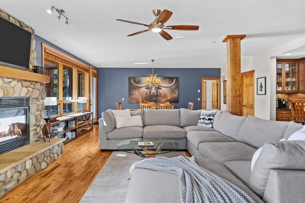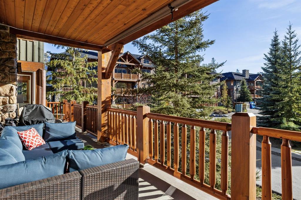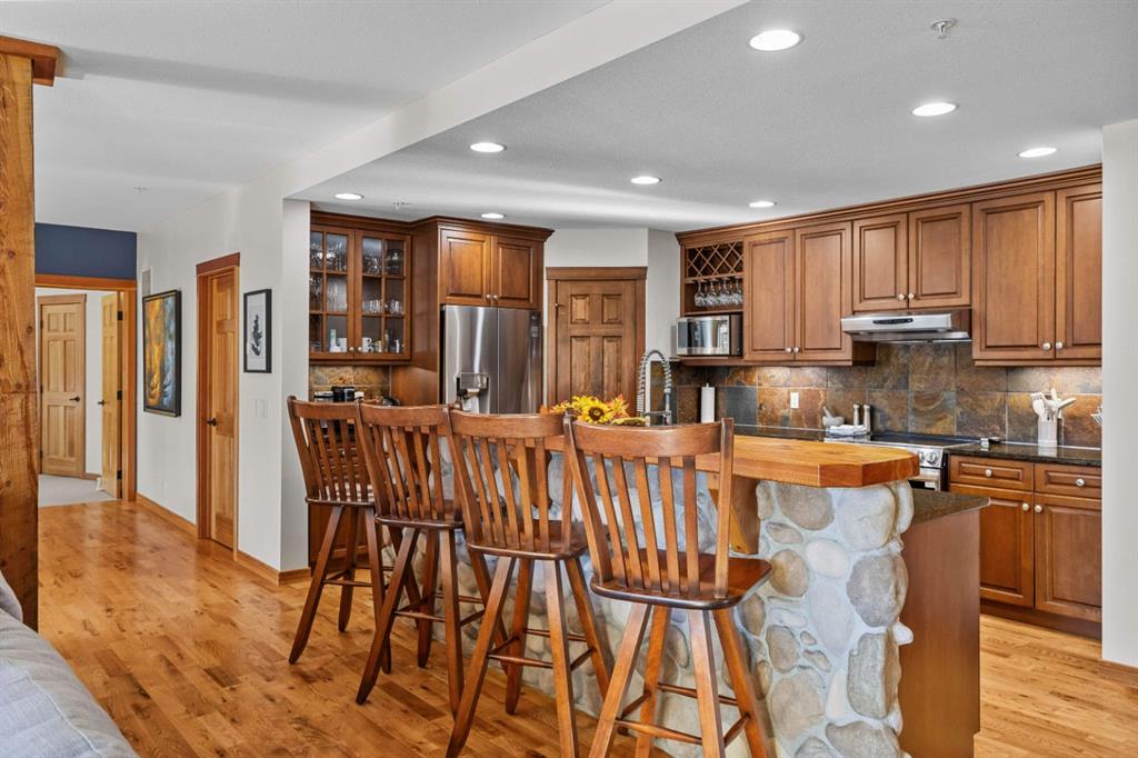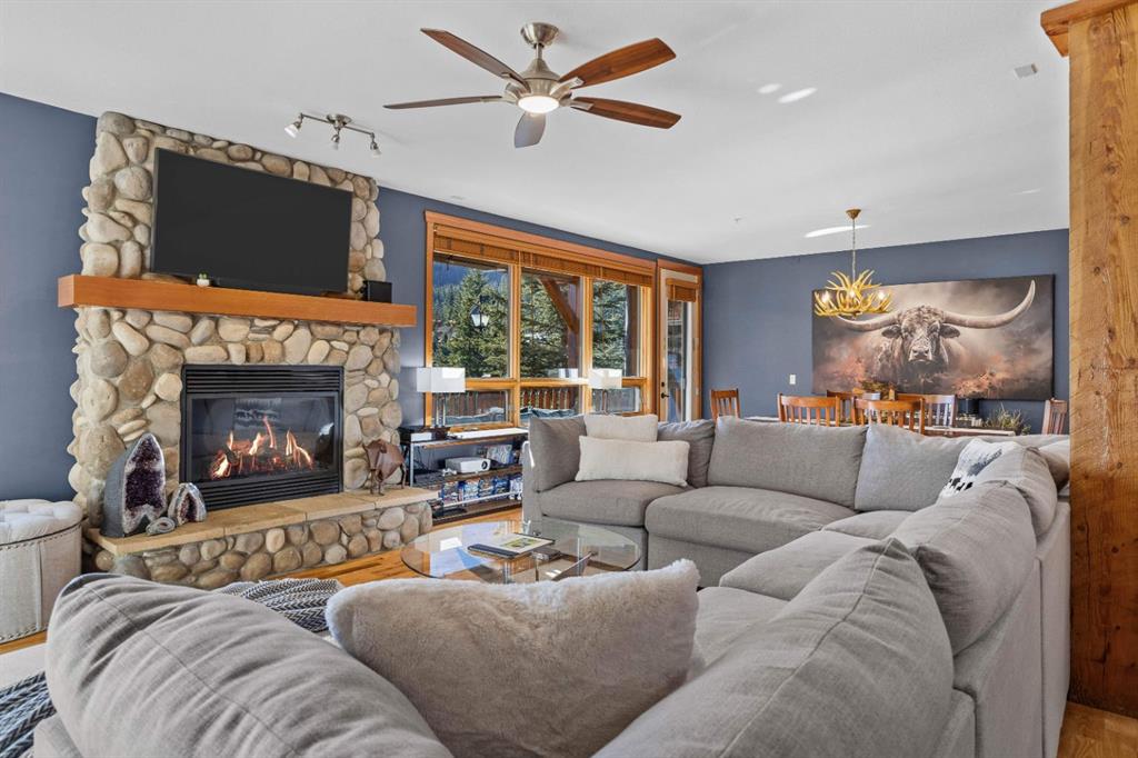 Experience the very best of mountain living at this stunning 3-bedroom, 3-bathroom, single level condo in Trailside Lodges. Spanning over 2000SF, this property offers breathtaking, Southeast-facing mountain views, an abundance of natural light, and a seamless blend of comfort and style. You feel the warmth and spaciousness here from the moment you step inside this beautiful open-concept living area, with floor-to-ceiling stone fireplace and beautiful hardwood flooring. The gourmet kitchen features high-end finishes, generous counter space, and lots of cupboards, ideal for culinary enthusiasts. The primary suite is a fabulous private retreat with space for a lounge area, direct deck access, and a large ensuite with a corner jetted tub, double vanity, spacious shower, water closet and walk-in closet. A second master suite also boasts direct deck access, a walk-in closet, and another elegant ensuite with double vanities. The third bedroom, tucked away for privacy, enjoys its own unique mountain views with a third full bathroom nearby. An oversized laundry room with additional flex space add to the home’s thoughtful design and offer tons of storage room. Enjoy outdoor living year-round on the impressive 35' x 9' partially covered deck with a roll-down sunshade, providing a comfortable space to take in the incredible mountain vistas. A number of recent upgrades have been completed, including new appliances, new kitchen sink/faucet, new toilets, & a murphy bed. Ownership at Trailside Lodges includes access to one of the best-outfitted clubhouses in Canmore, with hands down, the best outdoor hot tub with unbelievable panoramic views, an indoor resistance pool, a well-equipped fitness center, billiards & games loft, and a theatre room. Additional conveniences include a heated underground parking stall, storage for all your seasonal gear, and ample guest parking. This home is move-in ready and offers the perfect lock-and-leave lifestyle without compromising space or luxury.
