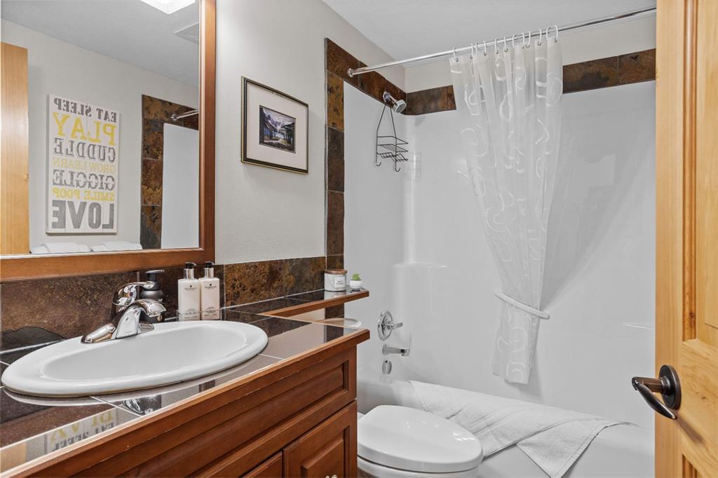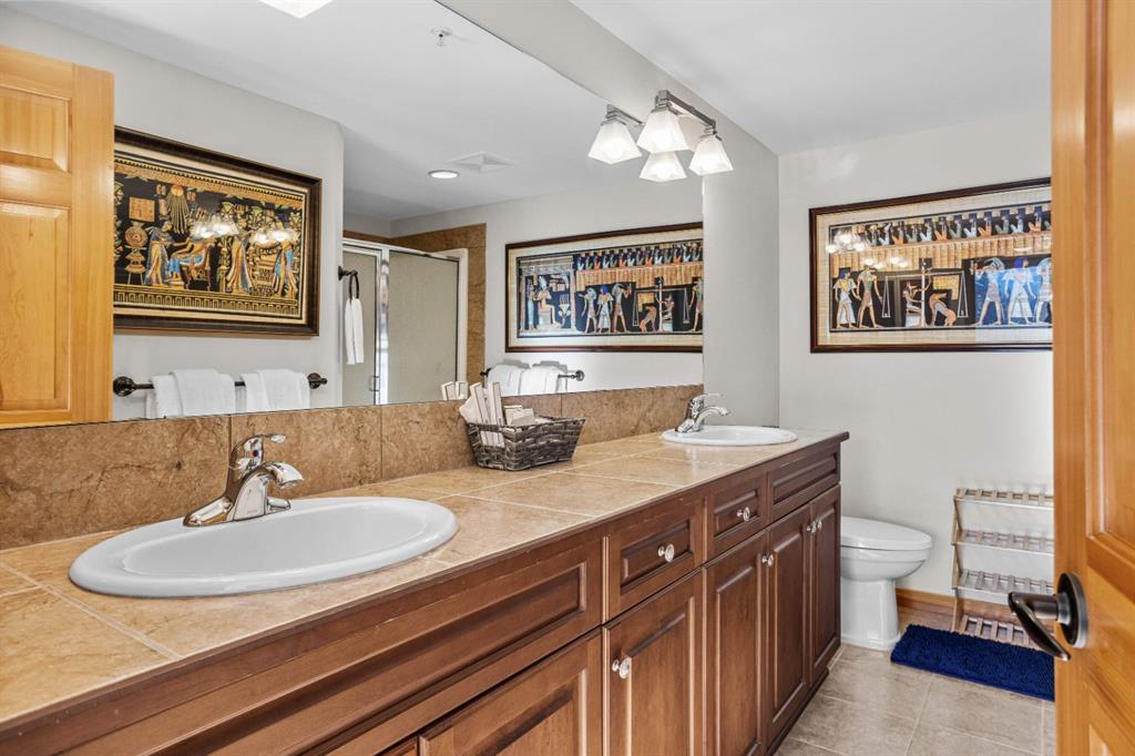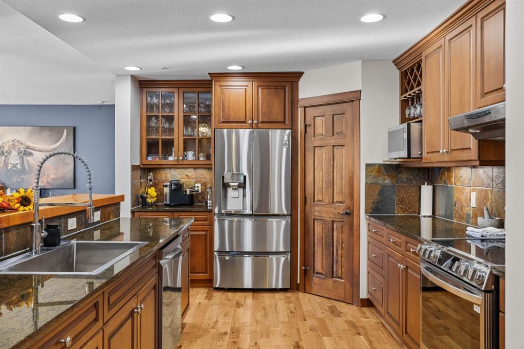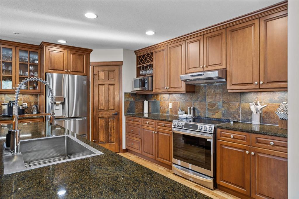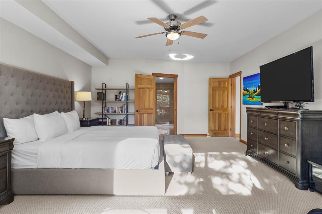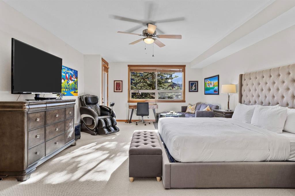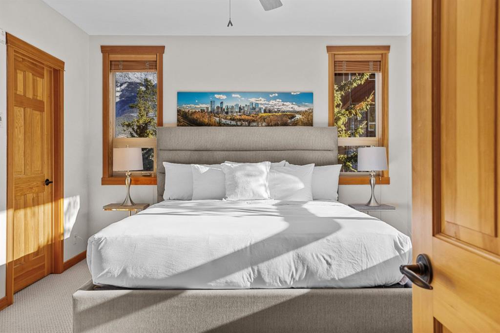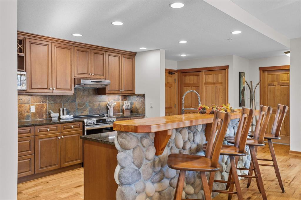 Experience the very best of mountain living at this stunning 3-bedroom, 3-bathroom, single level condo in Trailside Lodges. Spanning over 2000SF, this property offers breathtaking, Southeast-facing mountain views, an abundance of natural light, and a seamless blend of comfort and style. You feel the warmth and spaciousness here from the moment you step inside this beautiful open-concept living area, with floor-to-ceiling stone fireplace and beautiful hardwood flooring. The gourmet kitchen features high-end finishes, generous counter space, and lots of cupboards, ideal for culinary enthusiasts. The primary suite is a fabulous private retreat with space for a lounge area, direct deck access, and a large ensuite with a corner jetted tub, double vanity, spacious shower, water closet and walk-in closet. A second master suite also boasts direct deck access, a walk-in closet, and another elegant ensuite with double vanities. The third bedroom, tucked away for privacy, enjoys its own unique mountain views with a third full bathroom nearby. An oversized laundry room with additional flex space add to the home’s thoughtful design and offer tons of storage room. Enjoy outdoor living year-round on the impressive 35' x 9' partially covered deck with a roll-down sunshade, providing a comfortable space to take in the incredible mountain vistas. A number of recent upgrades have been completed, including new appliances, new kitchen sink/faucet, new toilets, & a murphy bed. Ownership at Trailside Lodges includes access to one of the best-outfitted clubhouses in Canmore, with hands down, the best outdoor hot tub with unbelievable panoramic views, an indoor resistance pool, a well-equipped fitness center, billiards & games loft, and a theatre room. Additional conveniences include a heated underground parking stall, storage for all your seasonal gear, and ample guest parking. This home is move-in ready and offers the perfect lock-and-leave lifestyle without compromising space or luxury.