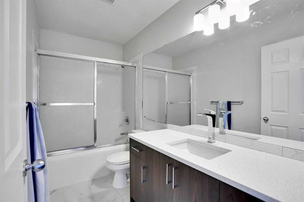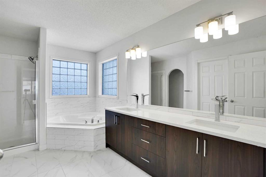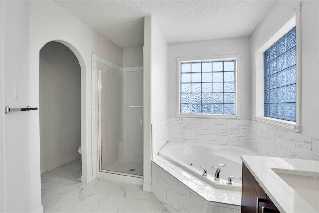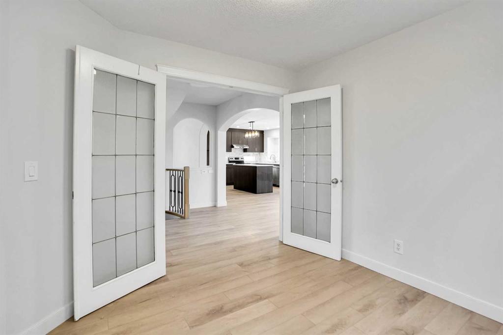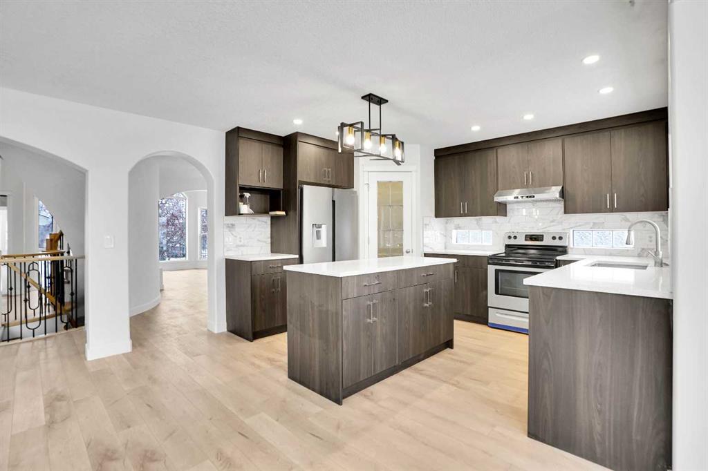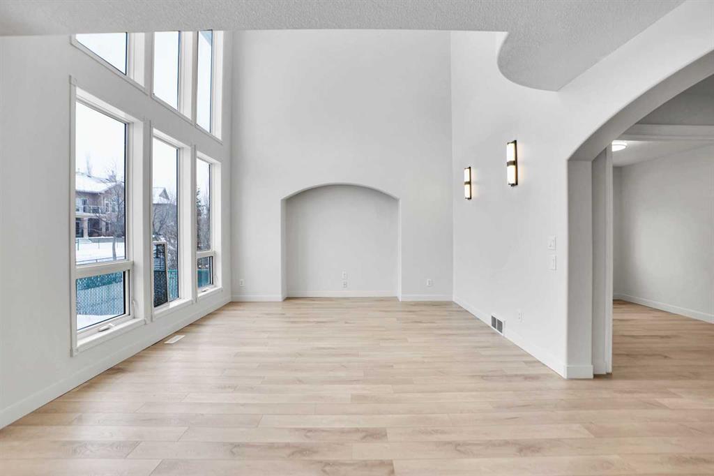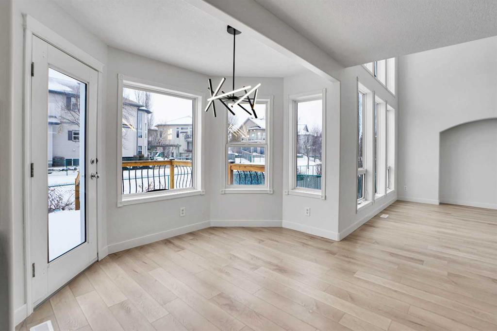 Life really is better by the lake — Welcome to The Cove in Chestermere! This beautifully renovated 2-storey home sits on a large corner lot backing onto pathways and green space, just a short walk to Chestermere Lake, The Cove Beach, parks, playgrounds, and off-leash areas. Set on a generous corner lot, this property gives your family the rare balance of privacy, convenience, and year-round recreation. Walk the kids to the beach, hit the pickleball courts, let the dog run at the off-leash park, or enjoy sunset strolls along the water… all just minutes from your front door. Inside, the house greets you with that WOW moment — soaring 17’ ceilings, the sweeping curved staircase, and oversized windows pouring natural light across brand-new flooring. It’s a true “wow” entrance that sets the tone for the rest of the home. The main floor features a spacious formal living/dining area, a bright kitchen with centre island and pantry, a cozy family room with 3-sided fireplace, and a private main-floor office with French doors. Ceiling to floor Windows in the Family Room provide ample light during the day and gives you an unobstructed view of the backyard. Step outside onto your own private deck for summer BBQs or just relaxation after a long work-week. This house has it all. Upstairs offers 3 bedrooms including a generous primary suite with 5-pc ensuite and walk-in closet. The open-to-below hallway adds light and airiness throughout. The second and third bedrooms are towards the front of the house, with spacious closets, new carpets and light fixtures. The 4 pc bathroom down the hallway is also a master piece and Brand NEW with it's cabinetry, lighting, faucets, counter tops and shower area. The unspoiled basement is ready for your future development with 3 windows and lots of potential. Enjoy a large backyard with deck, concrete patio, and plenty of room for kids, pets, and entertaining. This is an ideal family home in a sought-after lakeside community—minutes to schools, shopping, transit and other commercial amenities. Move-In ready and Quick possession available! Come book your showing today and fall in love with it.