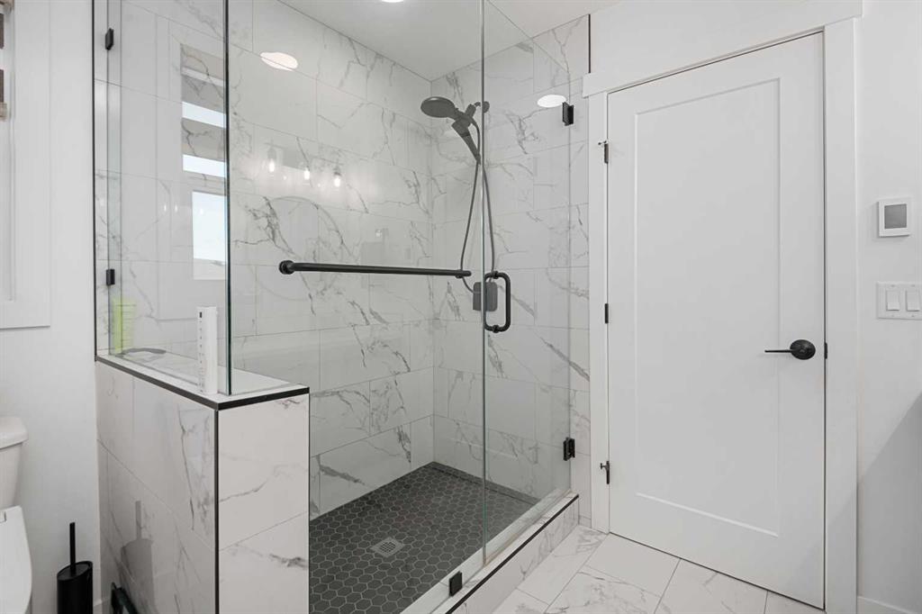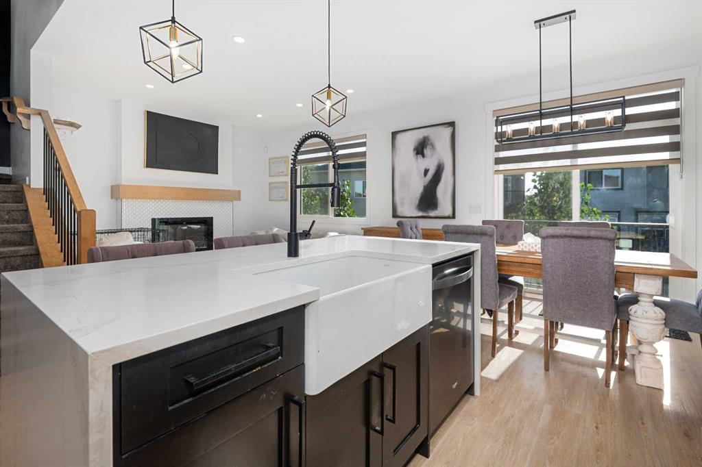 MASSIVE PIE LOT - PREMIUM CUSTOM UPGRADES - NEARLY NEW - PEACEFUL QUIET NEIGHBOURHOOD. Now available in one of Crossfield’s most established and peaceful neighborhoods, this exceptional custom home built in 2022 sits on a generous pie-shaped lot and blends high-end modern features with thoughtful family-friendly design. From the moment you enter, you'll notice the abundance of natural light and the expansive feel created by 9-foot ceilings and stylish vinyl plank flooring throughout the main floor. At the heart of the home is a stunning chef’s kitchen boasting waterfall quartz countertops on both sides of the island, a large sink, ample cabinetry, and upgraded Whirlpool appliances. The expansive pantry offers practical storage, while upgraded lighting and plumbing fixtures elevate the entire space with a sleek, contemporary finish. The adjoining living area features a built-in electric fireplace with a tasteful mantle, creating the perfect area for relaxing or entertaining. Nearby, the spacious front entry closet, convenient half bath, and access to a double attached garage. Upstairs, you’ll find three generously sized bedrooms and two full bathrooms, including a luxurious primary retreat with heated tile floors, dual sinks, a glass enclosed walk-in tiled shower and a large walk-in closet. A versatile flex room offers the perfect space for a home office, media room, or play area, while a dedicated laundry room offers even more convenience and versatility. The basement, with its three large above-grade windows and tall ceilings, is waiting for your final touch or it makes the perfect hassle free storage area. Outdoors, the fully fenced yard—finished with premium vinyl fencing is expertly landscaped and includes a dog run directly accessible from the deck, and wiring ready for a hot tub. Backing onto tranquil green space and scenic walking paths, this backyard offers privacy and a true connection to nature. Central air conditioning and an upgraded blinds package help keep you cool during the hot summer and add even more appeal. Close to shopping, restaurants, school and all amenities Crossfield has to offer and With this many upgrades, this beautiful move in ready home wont last long. Book your private viewing today!