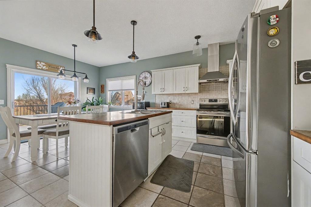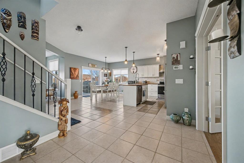 BEAUTIFUL, BRIGHT, and CHEERY home on a HUGE lot backing onto GREEN SPACE. The OPEN CONCEPT layout is perfect for living and entertaining. The gourmet kitchen features a walk-through pantry, STAINLESS STEEL appliances, plenty of cabinets, and a large ISLAND overlooking the dining area. Patio doors lead to your DECK, where you can sit back, relax, and enjoy the views. The living room is complete with a cozy FIREPLACE. There is also a FLEX room on the main level, perfect for a dining room, home office, or kids’ playroom. Tons of windows allow an abundance of sunshine and NATURAL light to flow throughout the home. Upstairs, you will find a spacious BONUS room and 3 bedrooms, including a large primary bedroom with a walk-in closet, a LAVISH ENSUITE, and MOUNTAIN VIEWS. The WALKOUT basement features IN-FLOOR HEATING and is professionally developed with a large family/rec room, a 4th bedroom, another bathroom, and plenty of storage. OVERSIZED DOUBLE attached GARAGE! EXCELLENT location close to parks, amenities, and more. Don’t miss out on this FANTASTIC home backing onto GREEN SPACE.