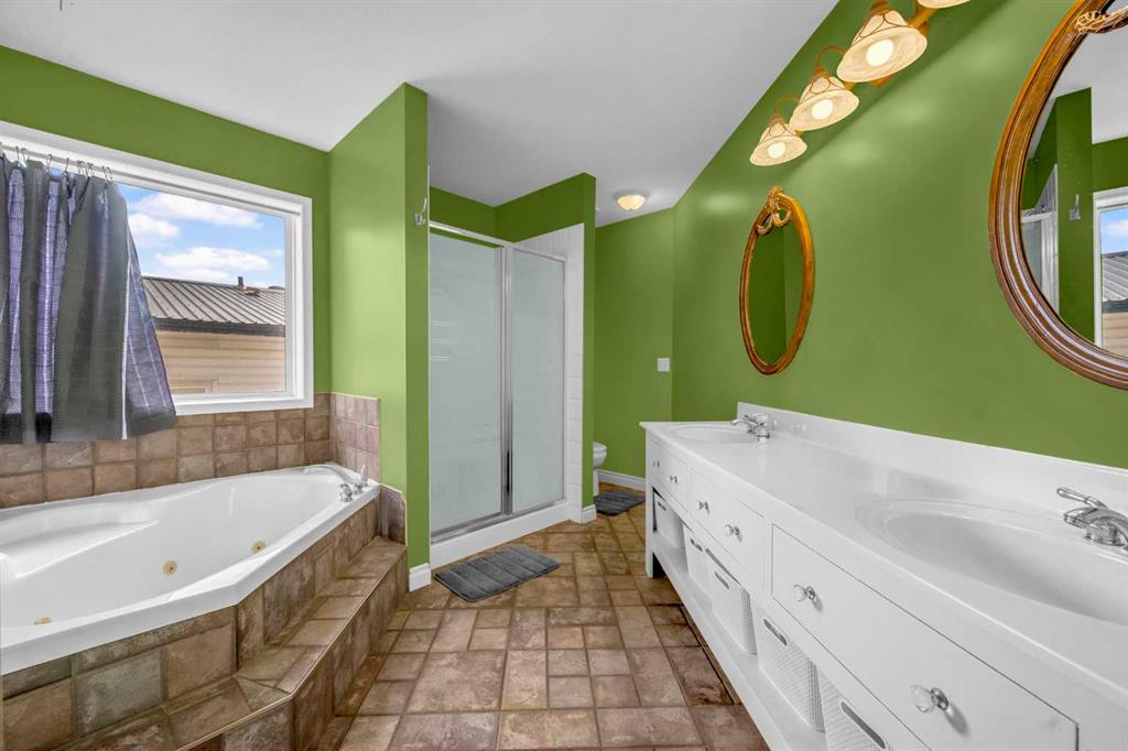 Trade the noise for nature, and the rush for room to breathe. Just 30 minutes from Calgary, this custom-built McKee Homes bungalow isn’t just a house, it’s a retreat from the ordinary. McKee doesn’t build custom homes anymore, making this one of the last of its kind. Set on an expansive corner lot nearly 9,000 sq. ft. in size, this property welcomes you with wraparound charm — from its cheerful covered veranda to its fragrant lavender-lined yard that fills the summer air with calm and color. Out here, you’ll hear songbirds before sirens, and your morning coffee comes with a view of open skies, not crowded parkades. Step inside and you’ll feel the craftsmanship that only comes from a custom build. Soaring cathedral ceilings give the main floor a sense of space you won’t find in today’s tighter floor plans. The home is warmed by central gas and also has dual fireplaces, a cozy counterpoint to Alberta’s winter’s chill. The living room flows naturally into the dining space that opens to a chef’s kitchen equipped with stainless steel appliances, a gas range, and corner pantry. Thoughtfully designed with generous counters and seamless flow to the dining area, for those who love to cook, connect, and create in comfort. The primary suite feels like a sanctuary, with a spacious walk-in closet and a luxurious 5-piece ensuite featuring a jetted tub, dual vanities, and a stand-up shower. Down the hall, another bedroom and full bath offer comfort for family or guests. Head downstairs to the fully finished basement, where in-floor heating keeps things toasty underfoot. Here, you’ll find a second fireplace anchoring a large rec room, perfect for movie nights or quiet evenings in. The basement also has two additional bedrooms, a full bath, and generous storage. Outside, there’s room for every passion: an oversized heated garage (27’x25’) with 220V power for tools and projects, two separate driveways with RV parking, and workshop shed. Whether you’re tinkering, gardening, or just enjoying the quiet, this property delivers space to do it all. Across the street, a park and playground add even more charm, while nearby paths invite evening walks or weekend ATV rides. And when you do need the city, Calgary is just a quick 30-minute drive, close enough for convenience, far enough to finally exhale. This is more than a move, it’s a mindset. More space. More peace. More value. More life. Come see what it feels like to finally have room to live.