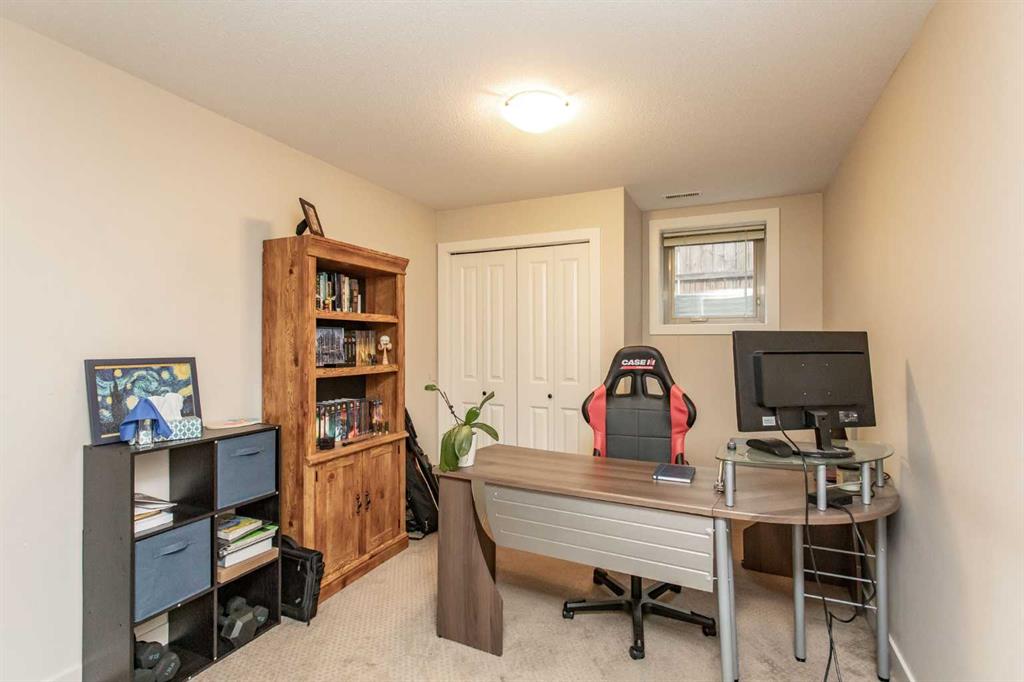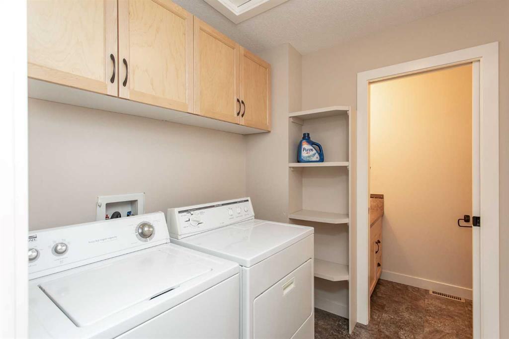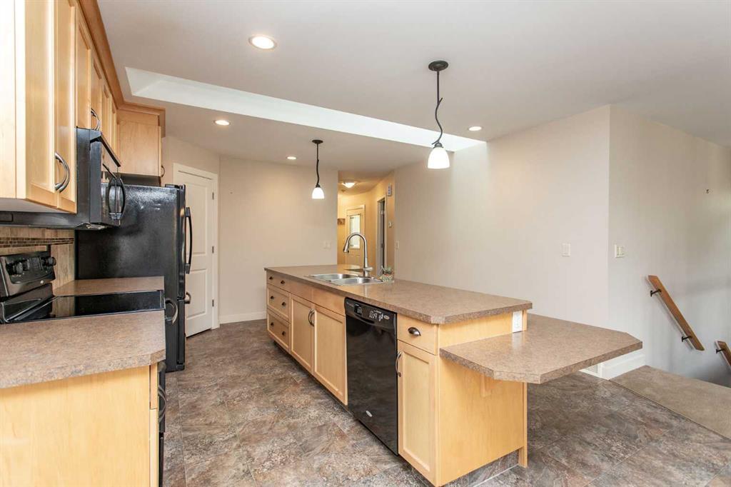 NO CONDO FEES! LOCATED IN THE HEART OF DOWNTOWN LACOMBE! CLOSE TO SHOPPING AND AMENITIES! OVER 2300 SQUARE FEET OF DEVELOPED LIVING SPACE!! This well-appointed duplex in downtown Lacombe exemplifies quality construction throughout. The residence features an open-concept layout that seamlessly connects the kitchen, dining, and living areas. The kitchen is equipped with maple cabinetry, oil-rubbed bronze hardware, a two-tier island with eating bar, corner pantry, and black appliances. The primary bedroom offers a four-piece ensuite and a walk-in closet, with main level laundry for added convenience. A second bedroom near the entrance provides flexibility as a potential home office. The fully finished basement includes a spacious family room with wet bar, an additional four-piece bathroom, storage/utility room, and two more bedrooms. This property accommodates various lifestyles, including those seeking to downsize, empty nesters, or growing families. The detached single garage measures 14x24, and the yard is fenced and landscaped with back alley access. Additional features include low E argon windows, a high-efficiency furnace, exterior foundation waterproofing (Tremco Watchdog), R20 exterior wall insulation, R40 attic insulation, pex plumbing, acrylic stucco, and 35-year shingles.. Immediate possession is available.