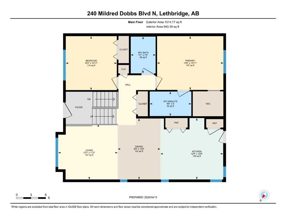 | 3pc Ensuite bath | 5`0" x 8`5" | Main |
