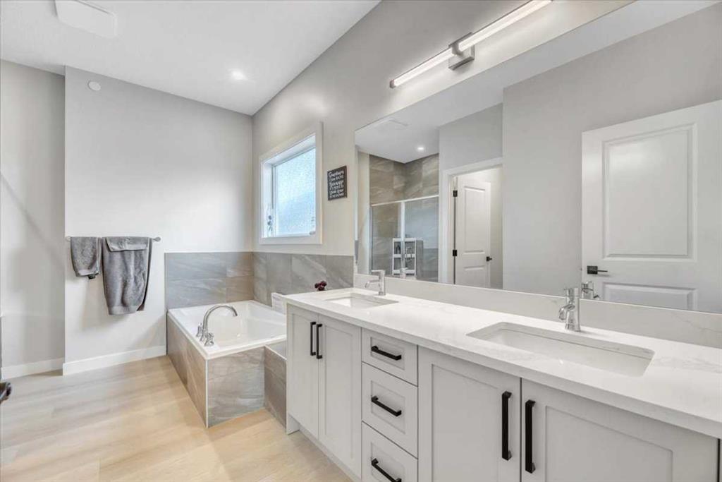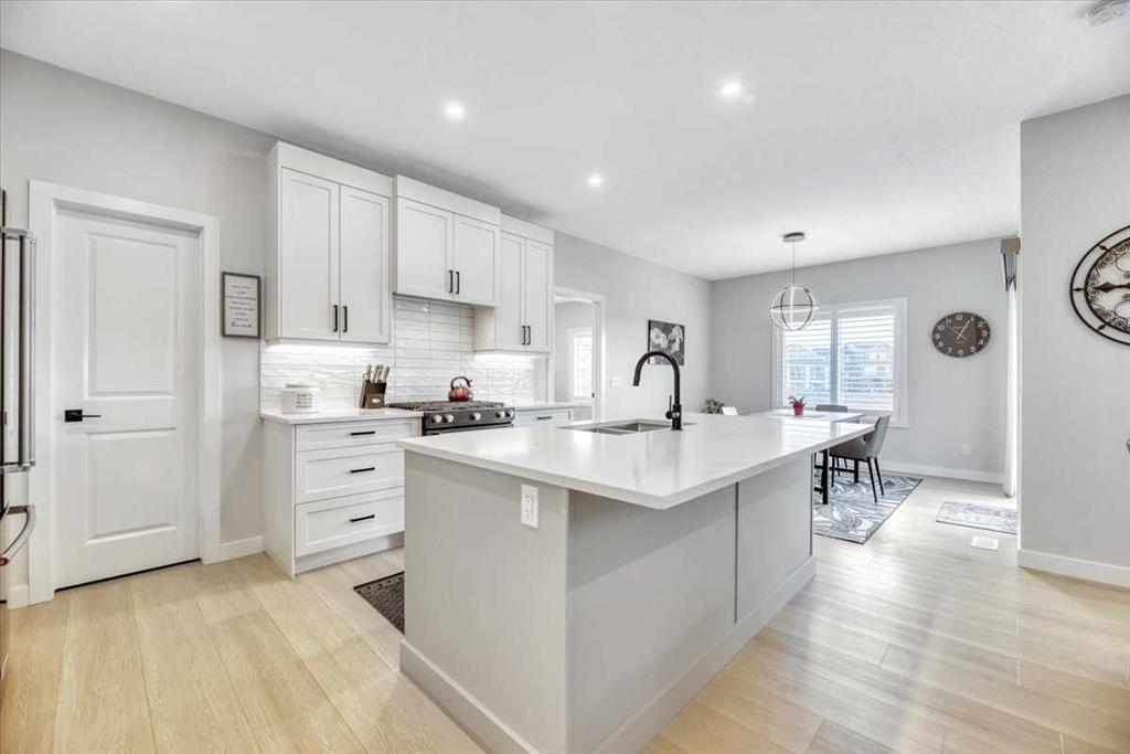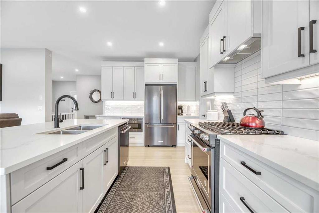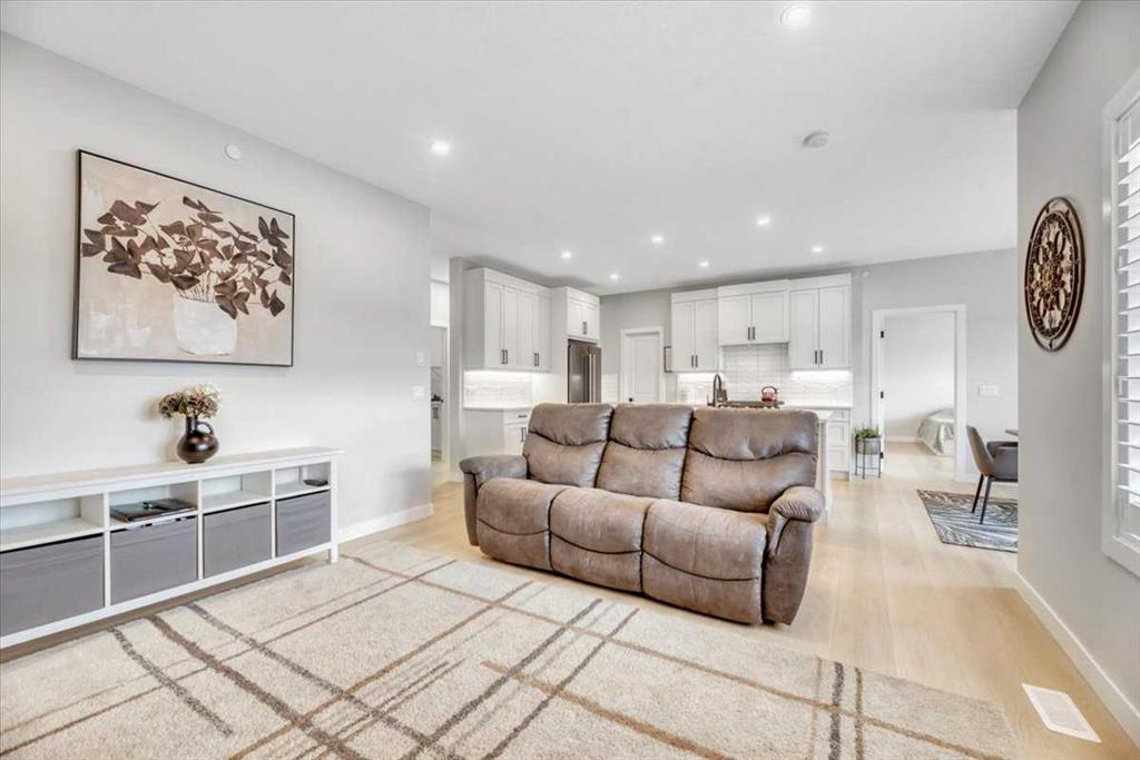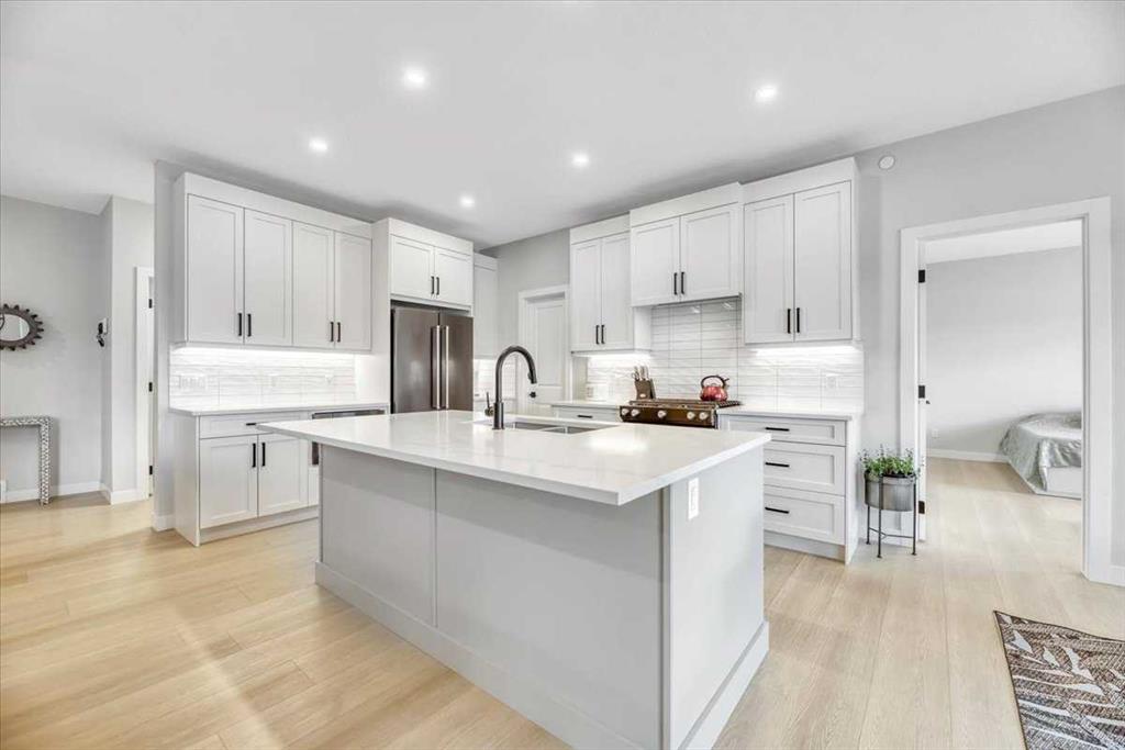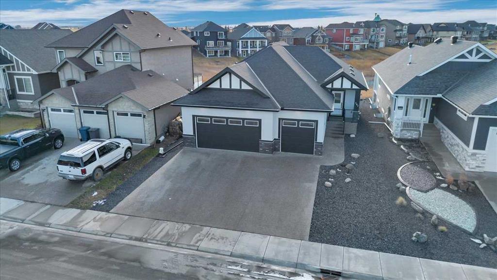 Welcome to The Lakes of Muirfield — Where Luxury Meets Lifestyle Step inside this executive bungalow offering over 2,500. sq. ft. . of total living space in a prestigious gated golf course community. Designed for those who appreciate elegance and comfort, this home blends contemporary finishes with timeless appeal. Main Floor Highlights. Owner’s Retreat: A spacious primary suite with walk-in closet, spa-inspired ensuite featuring a soaker tub, glass shower, and convenient main-floor laundry. South Exposure. Chef’s Kitchen: Quartz countertops, sleek cabinetry, Upgraded Appliances. Gas for the barbeque on the South Deck. Views of the Golf Course. Open Areas and Green Space. Open Concept Living. Custom Built Bungalow features 9’ ceilings. The expansive windows create a bright, airy atmosphere ideal for entertaining or relaxing. Outdoor Living at Best. Upper Deck & Lower Patio: Overlook the serene Muirfield Golf Course while enjoying breathtaking mountain and sunset views. Morning Coffee Moments: Start your day with tranquility and end it with unforgettable skies. Lower Level Finished Walk-Out Basement: A versatile space for family gatherings, a home theatre, or guest accommodations — all with direct access to the outdoors. Unfinished space will make a great work shop, hobby room, flex area. Triple Oversized Garage: Extra Room for vehicles, storage, and hobbies. Custom Touches and this property and it's yours. Ready to show for the Holidays With possession slated for 60 days you’ll be settled just in time to enjoy the New Year in this stunning home. Imagine the warmth of holiday gatherings surrounded by luxury and comfort. This is more than a home — it’s a lifestyle. From the chef’s kitchen to the mountain views, every detail has been thoughtfully designed to elevate your everyday living.