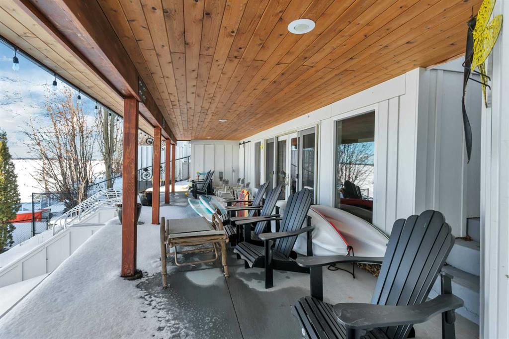Set behind a gated entrance and surrounded by mature trees, 87 Grand Avenue offers a rare blend of privacy, modern design, and true lakefront living, just minutes from Sylvan Lake. This walkout bungalow with a custom second-storey primary suite retreat was extensively updated in 2022, when the original cabin was completely renovated and a substantial addition was completed, creating a home that is both refined and highly functional. Inside, soaring vaulted wood ceilings with exposed beams and expansive windows flood the space with natural light while capturing stunning lake views. The kitchen features white cabinetry, Caesarstone quartz countertops, stainless steel appliances, and a central island, flowing seamlessly into both casual and formal dining areas. Two brand new gas fireplaces add warmth and atmosphere, while two new air conditioning units ensure comfort throughout the seasons. Upstairs, the primary suite offers a peaceful retreat with lake views, a custom walk-in closet, and a spa-inspired ensuite with a soaker tub and rain shower. The walkout basement opens to a fully landscaped yard and direct access to the lake, creating a seamless indoor-outdoor lifestyle. A standout feature of this property is the completely rebuilt shoreline and retaining wall, professionally completed by Lakeview Contracting. From the lake all the way up to the home, the entire structure has been redone, offering improved usability, enhanced access, and long-term structural integrity, a significant investment and a rare advantage for waterfront ownership. The lower level offers a flexible recreational space, ideal for kids, guests, or a dedicated hangout area after a full day on the lake. An oversized attached garage with extended ceiling height offers excellent storage, including room for a boat. A rare opportunity to own a fully upgraded waterfront property where privacy, quality renovations, and true lakefront functionality come together.