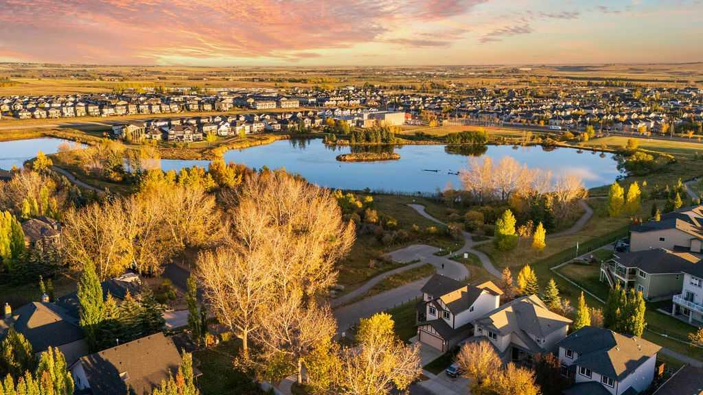 LOCATION, LUXURY, LIFESTYLE & VALUE! Don’t miss this exceptional end-lot property perfectly positioned beside a serene pond teeming with waterfowl and surrounded by picturesque natural beauty. Backing directly onto greenspace and scenic pathways, this home offers the kind of peaceful setting and daily views that simply can’t be beat. LOCATION, LOCATION, LOCATION! Step inside to nearly 2200 SQFT of thoughtfully designed living space featuring an ideal open-concept floorplan. The main level showcases solid maple hardwood floors, a bright and spacious office/den, and a sun-soaked living area that flows seamlessly into the dining space and kitchen, perfect for both entertaining and family living. This home has been beautifully refreshed with refinished maple hardwood floors, brand-new carpet, fresh paint throughout, and a complete electrical update, delivering modern comfort and total peace of mind. Additional major upgrades include a sump pump, water softener, and a tankless hot water system, ensuring efficiency and reliability year-round. The unfinished basement offers endless potential for future development and instant equity, making this one of the most valuable and opportunity-rich homes in the community. Upstairs, you’ll find three generous bedrooms, a bonus room, and a convenient laundry area. The primary suite is a true retreat! massive in size, with a 4-piece ensuite and breathtaking views overlooking the pond and greenspace. Step outside to your sunny south-facing raised deck, the ultimate spot for relaxation and enhanced outdoor living. Take in the tranquil sights and sounds of nature or enjoy evenings surrounded by unmatched natural beauty right from your own backyard. Located in Drake Landing, one of Okotoks’ most sought-after neighbourhoods, you’ll enjoy exceptional convenience and family-friendly amenities. Walk to top-rated schools, nearby parks, playgrounds, and off-leash areas, or explore the network of trails and pathways that connect the community. With easy access to shopping, restaurants, and major routes into Calgary, Drake Landing offers the perfect blend of small-town charm and everyday convenience, truly the best of both worlds!