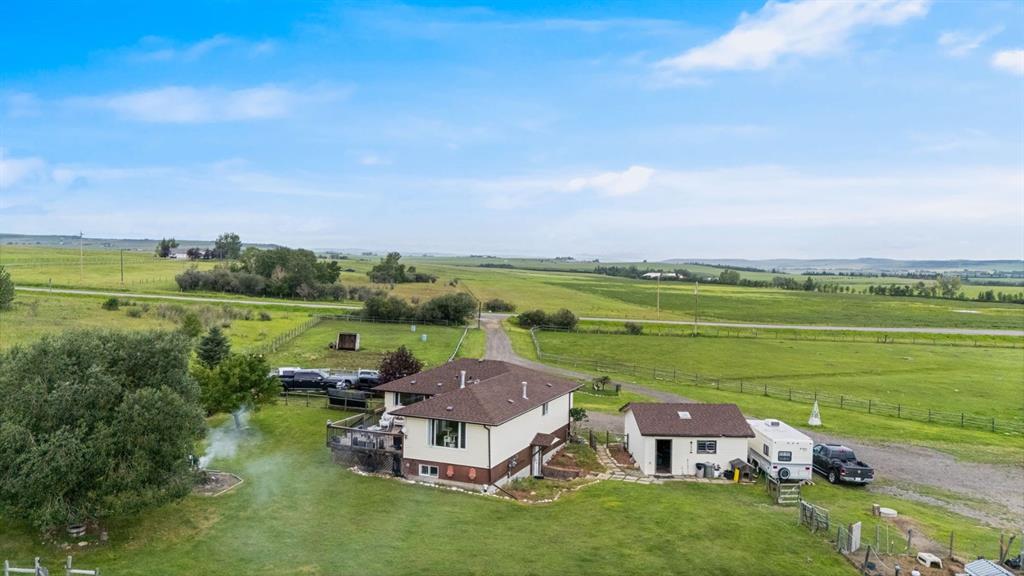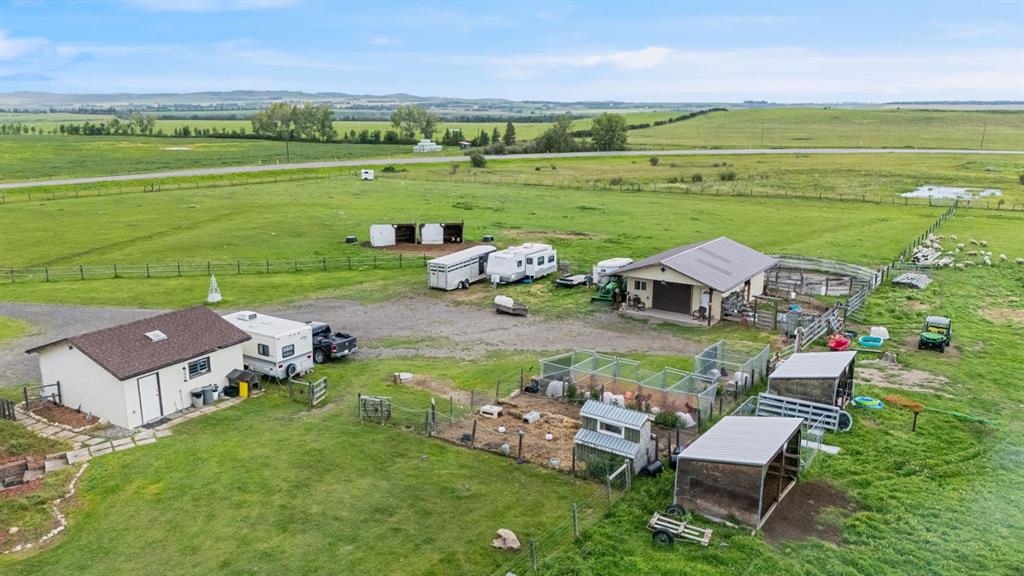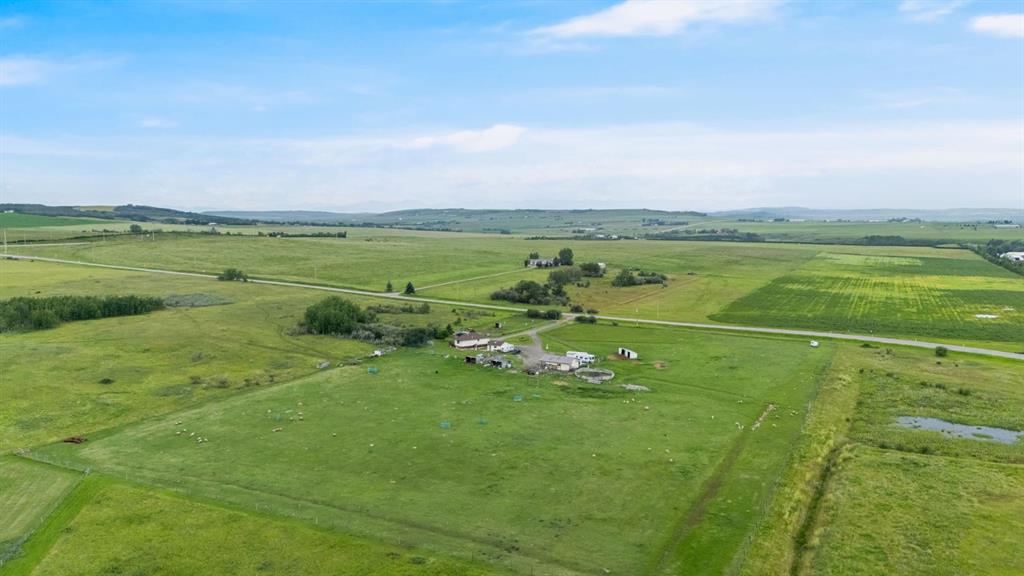 10-acre hobby farm located within the Town of Okotoks town limits, offering a rare combination of agricultural land and proximity to urban amenities. The property features Rocky Mountain views and is situated just minutes from the town centre. Zoned Agricultural Land Holdings (ALH), the parcel is suitable for a hobby farm or small-scale livestock operation and may appeal to buyers seeking long-term land holding potential in a desirable southern Alberta location. The property includes a single-family residence with 4 bedrooms and 3.5 bathrooms. The land consists of approximately 10 acres, including an estimated 8 acres of fenced grazing land. Services include a water well and a recently rebuilt septic field.